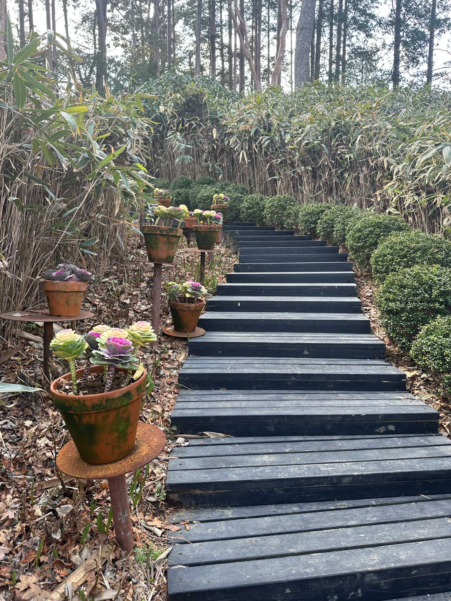 パビリオンに続く葉牡丹の階段