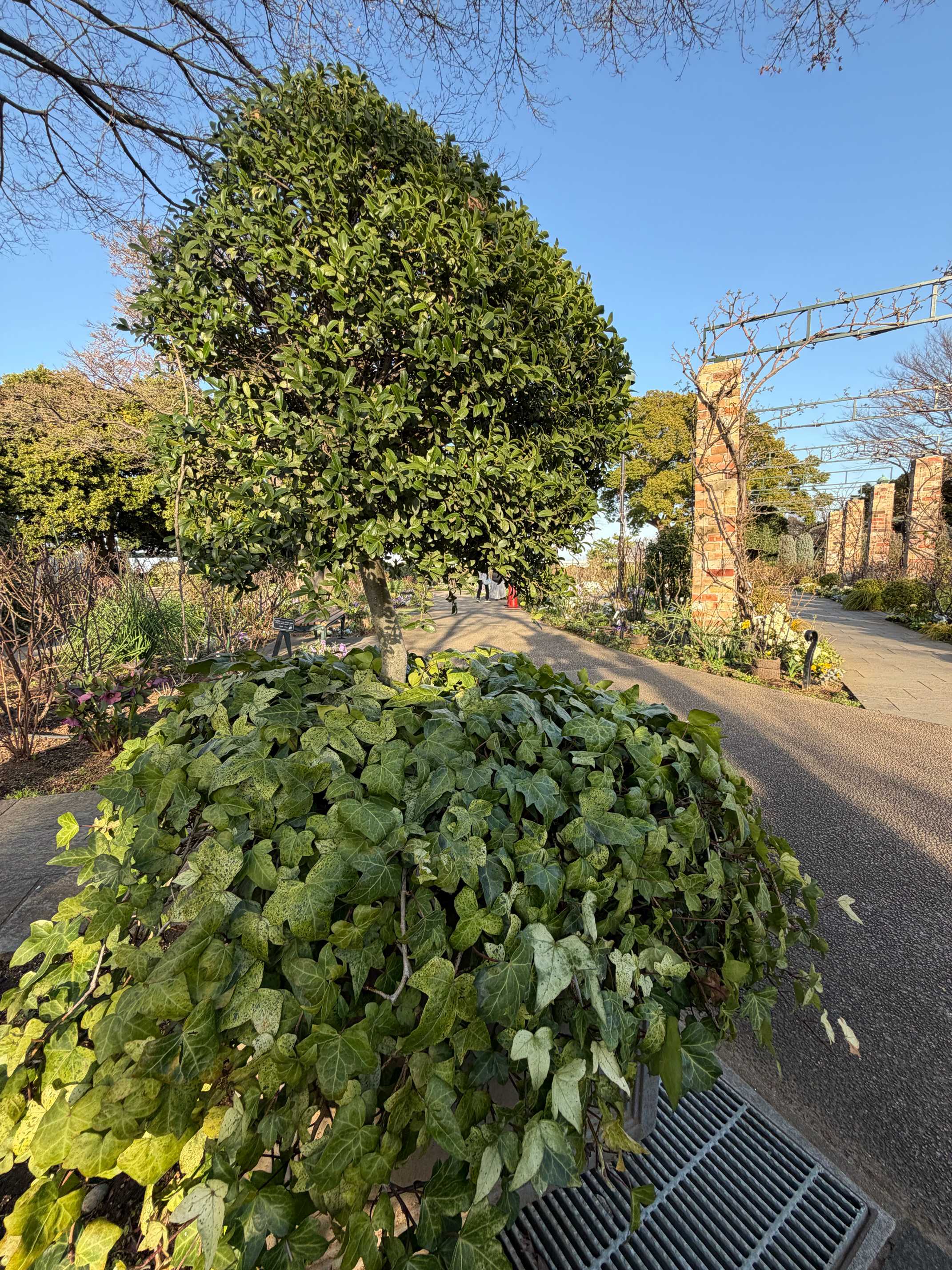 アイビーの植え込みから