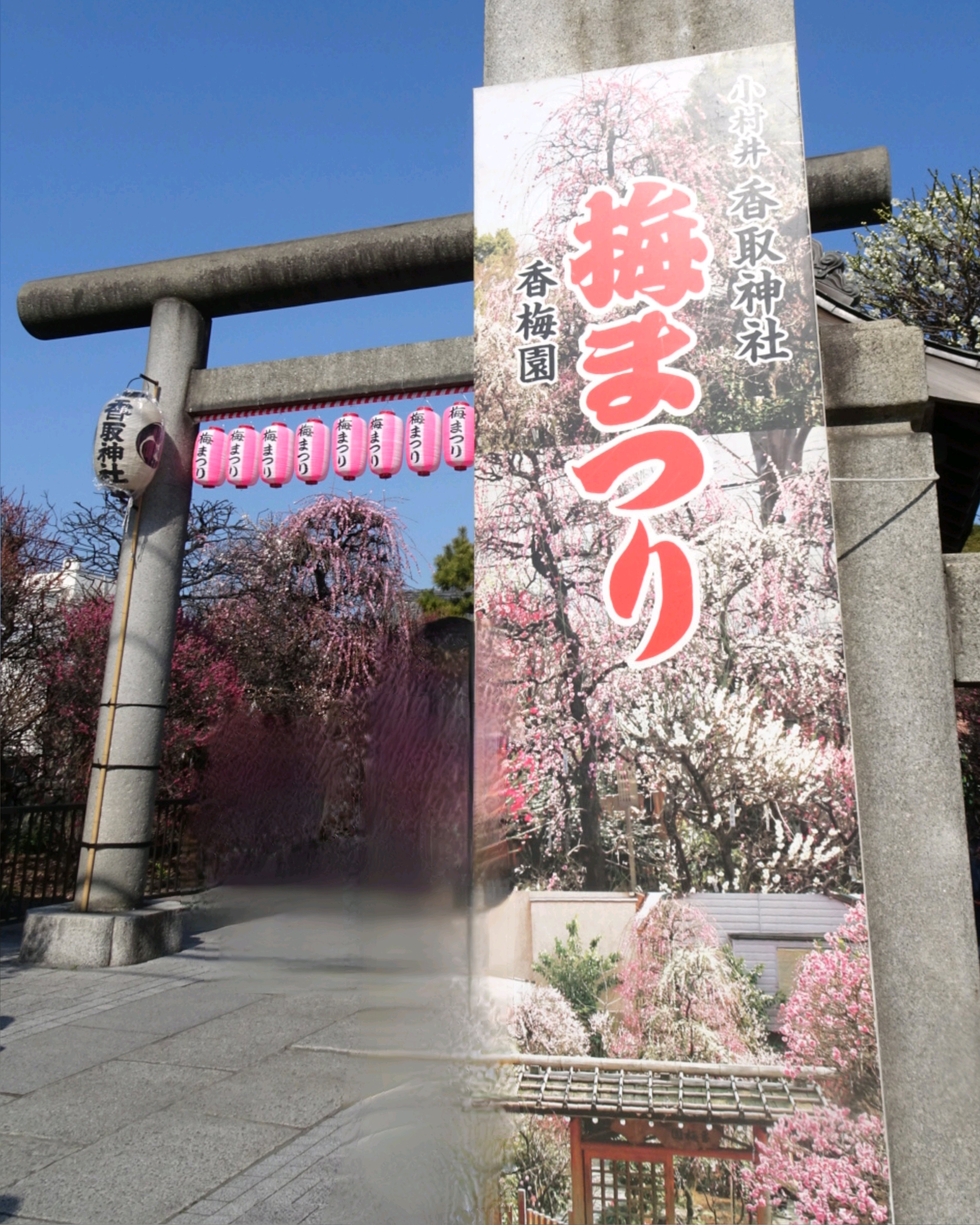 香取神社鳥居から見て左側に梅まつりのポスター