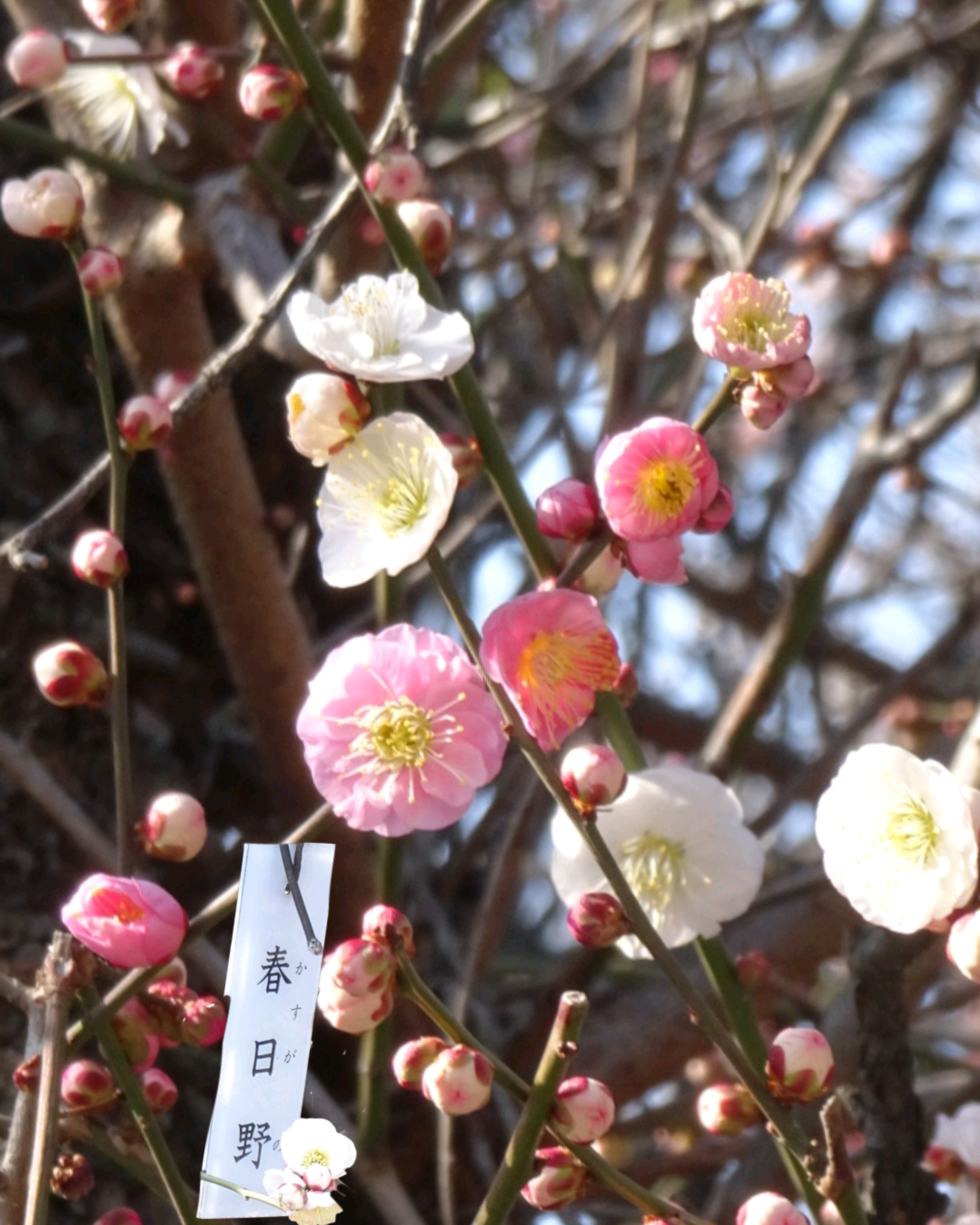 大木に小輪の紅梅がチラチラ…💗