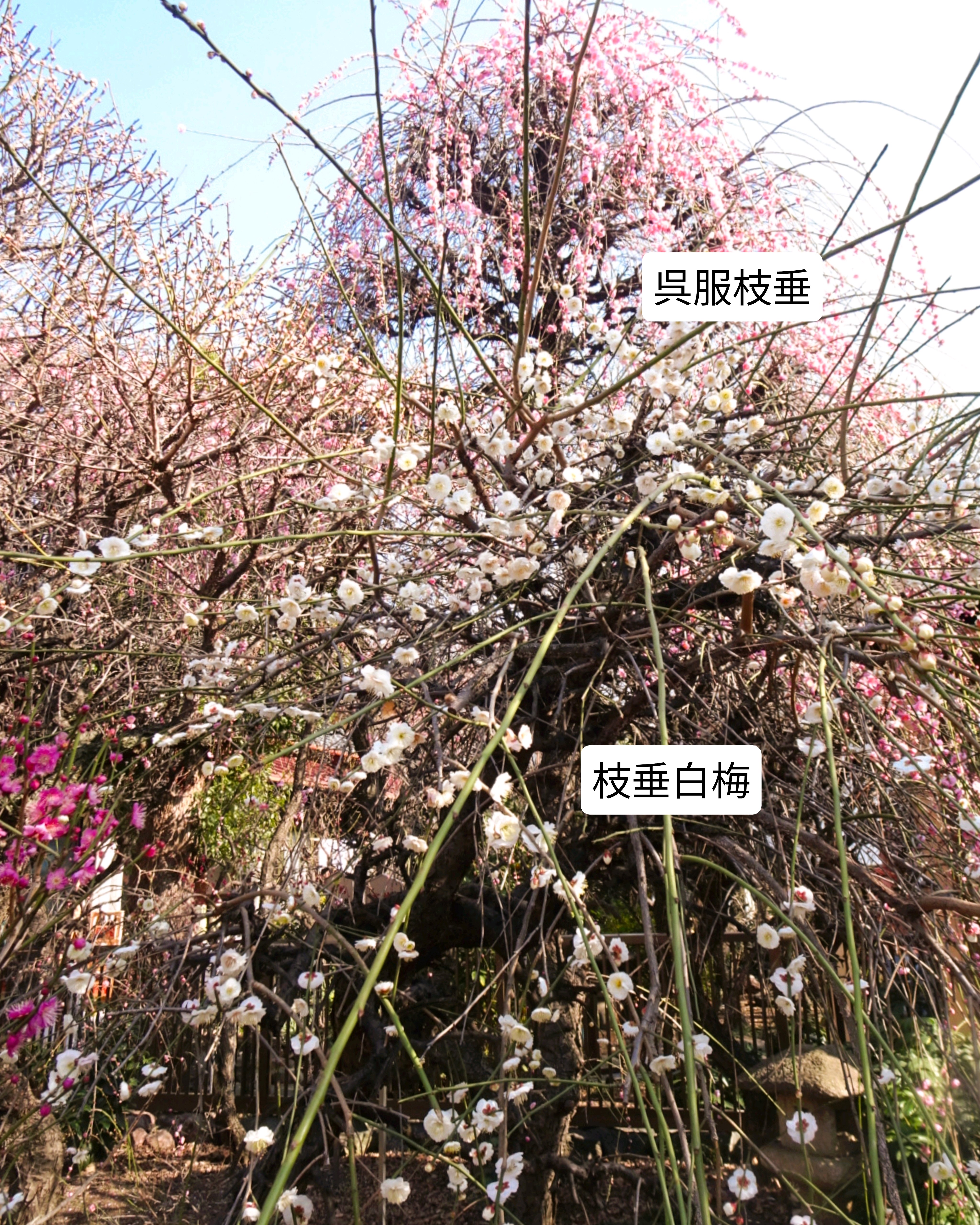 枝垂白梅は〈緑萼枝垂〉なのか〈青軸枝垂〉なのかわかりません