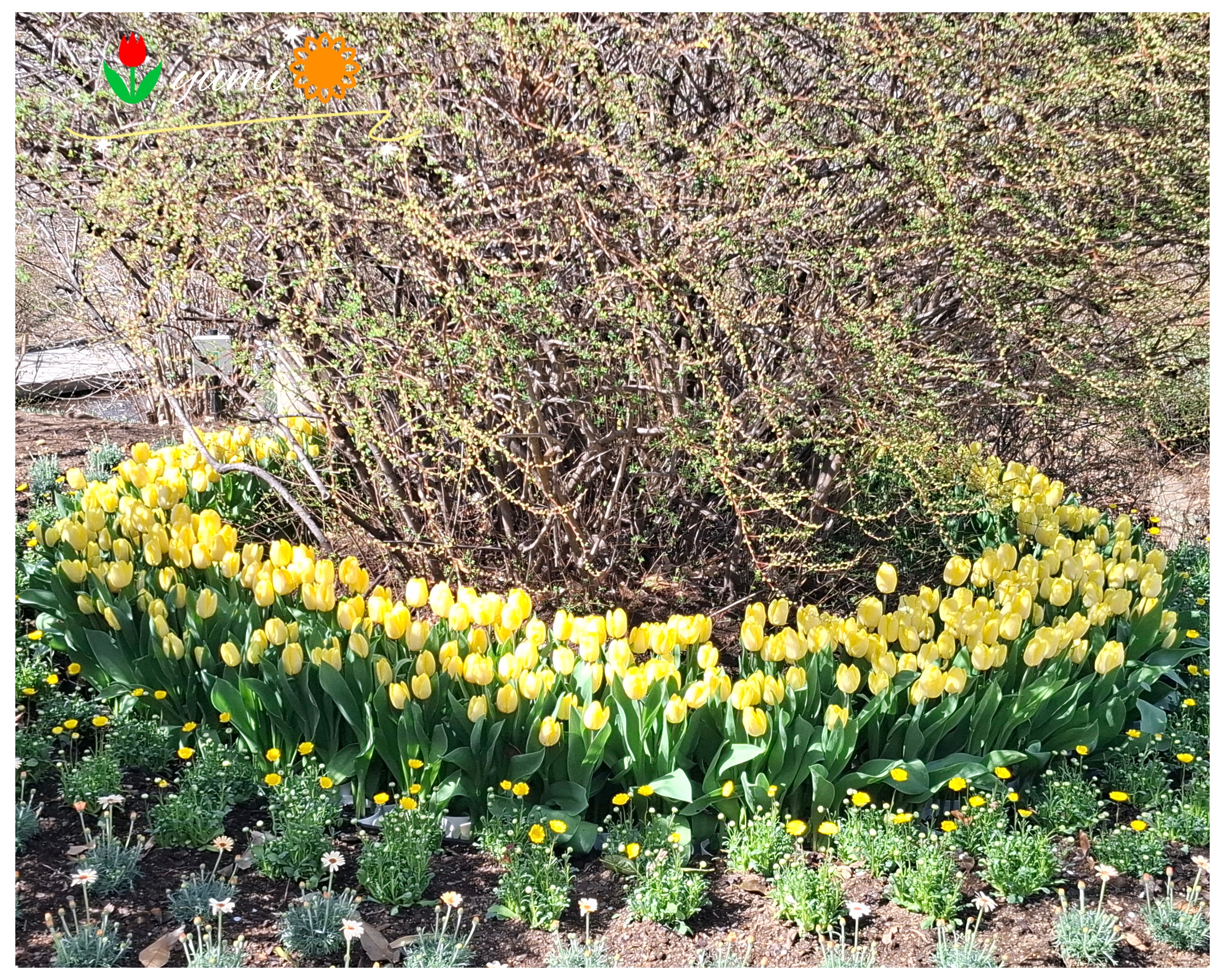沢山の色鮮やかなチューリップ🌷🌷🌷。球根植えるの大変だろうなぁと見ていたら、ポット植えを寄せてる😆。これ良いですね‼️花🌷終わった後の球根掘りだしもしなくいい。