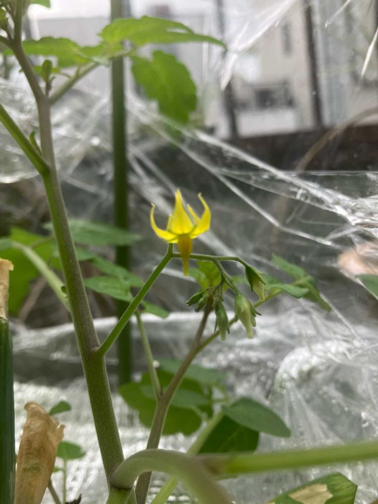 ついに咲きましたー1番花というのでしょうかマイクロトマト嬉しい✨どんどん実がつく予感💖