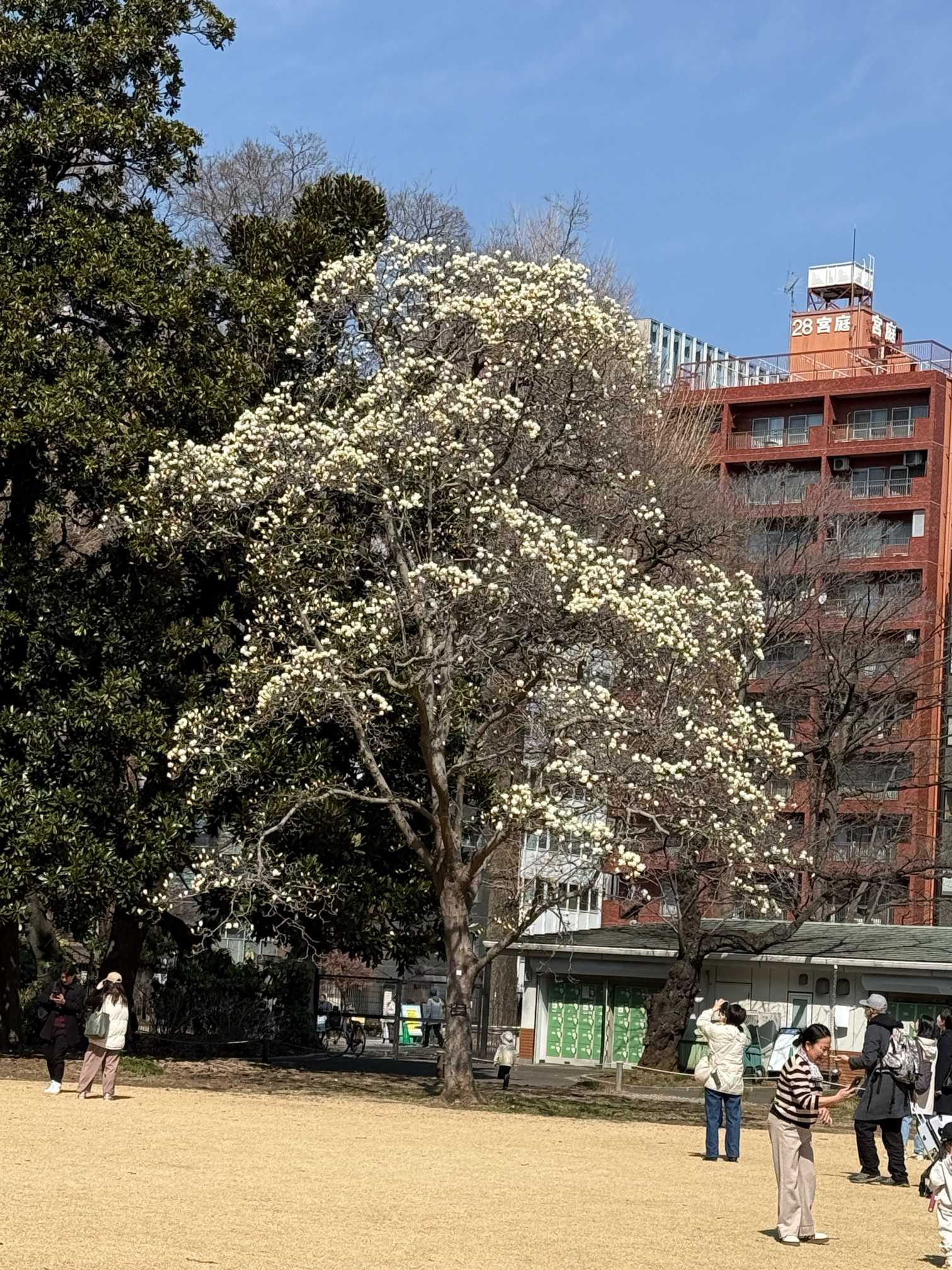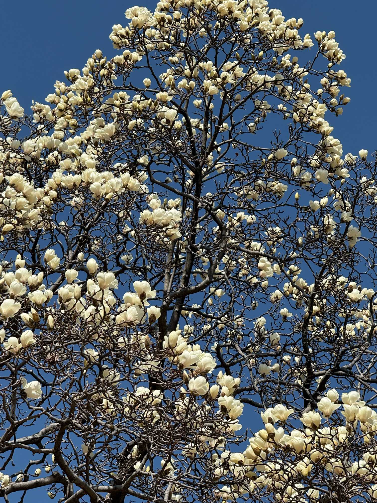 ハクモクレンのいちばん大きな木はまだ硬い蕾みでした