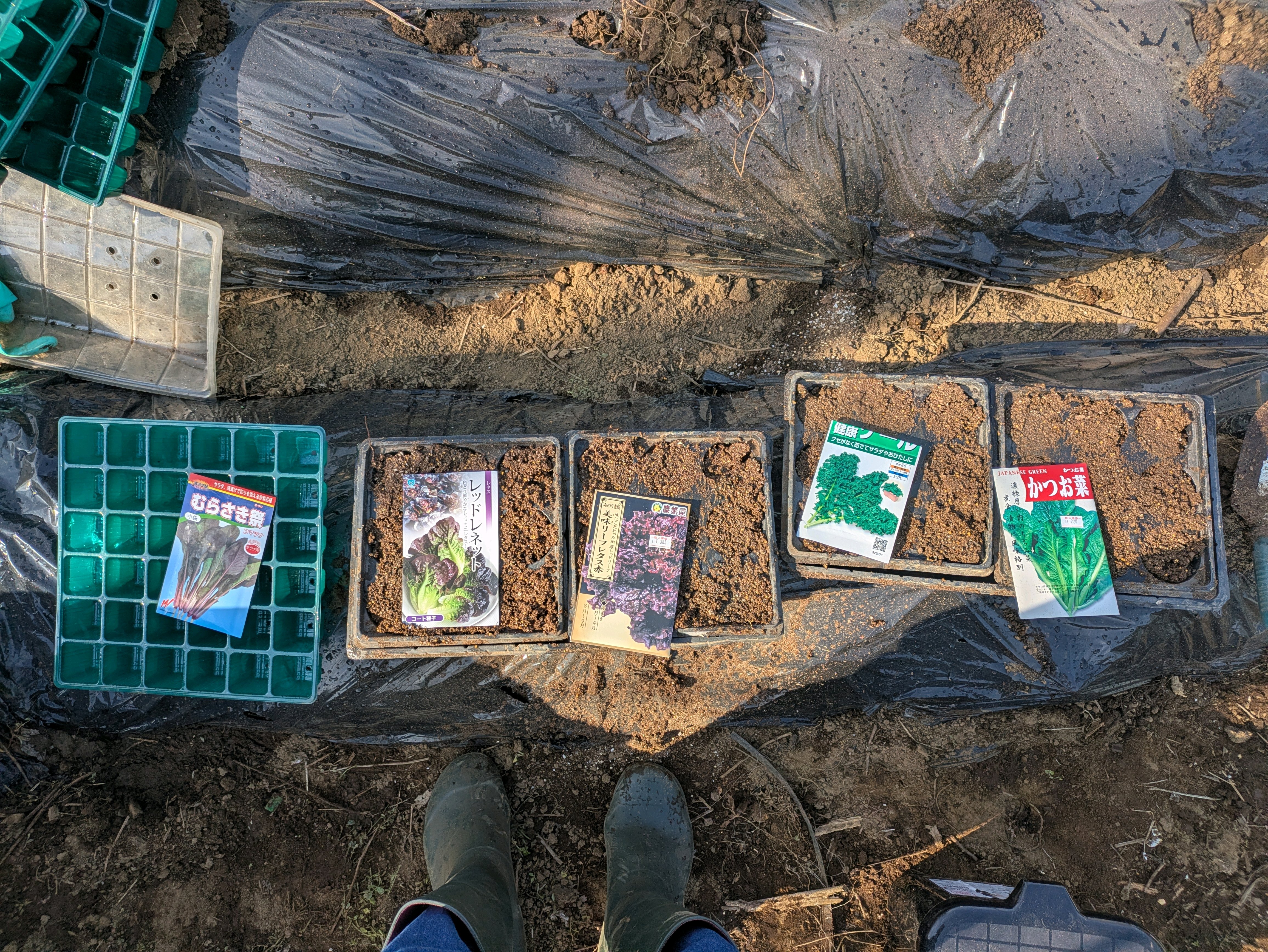 葉物野菜はひとまずセルトレーで育苗します。