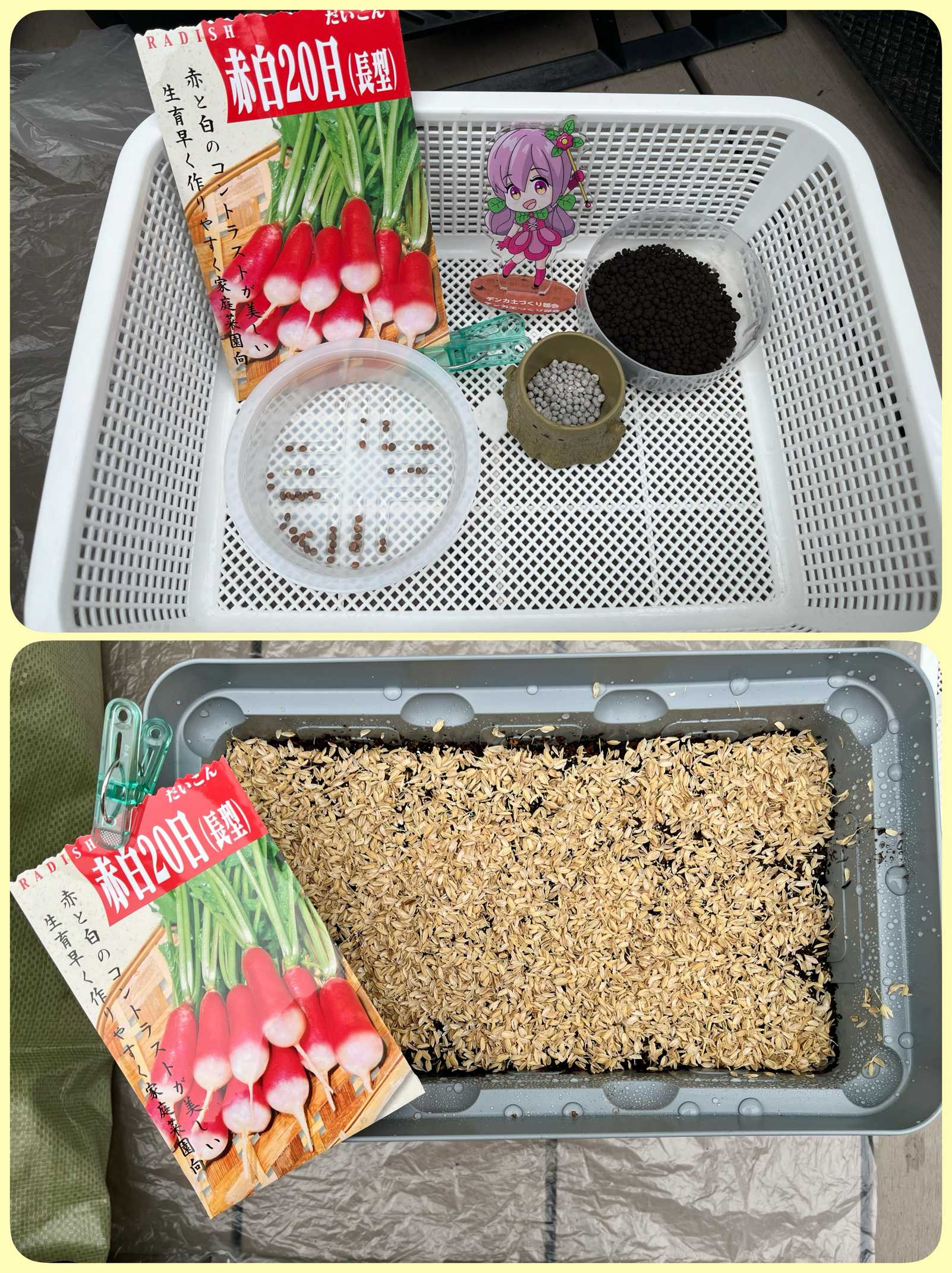 初参加の野菜遺産プロジェクトでいただいた種、🔴⚪️赤白20日大根(長型)の種まき