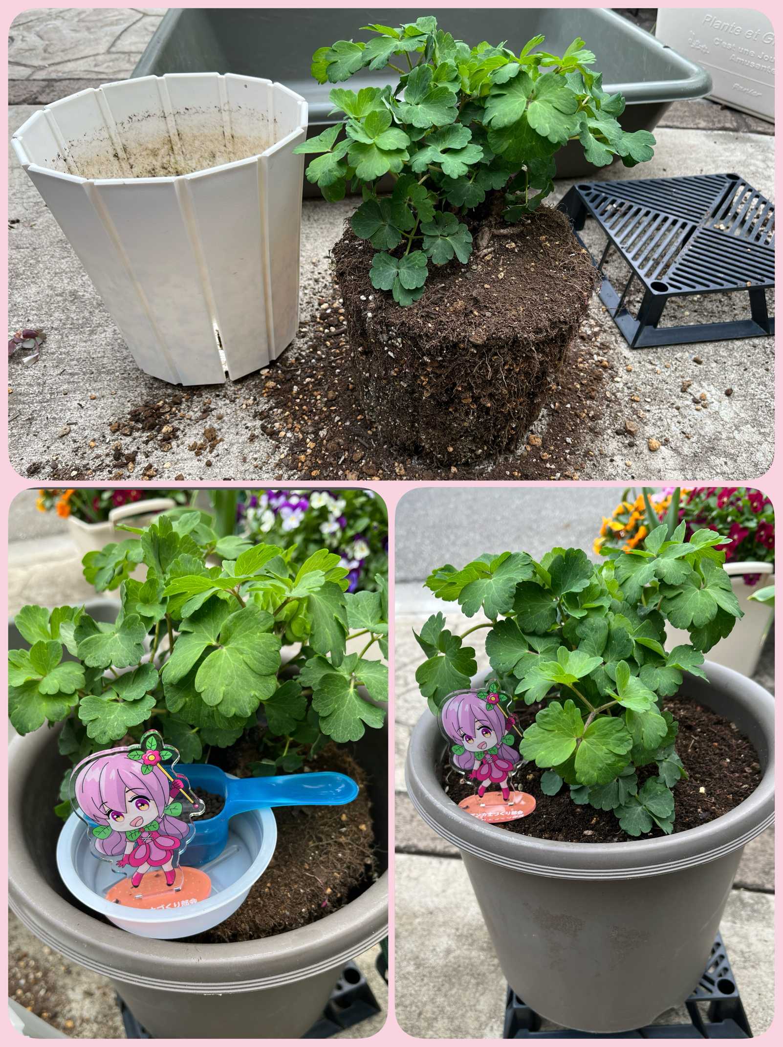 オダマキは直根性で根が傷つくと枯れてしまうため、根鉢を崩さずに植え替え