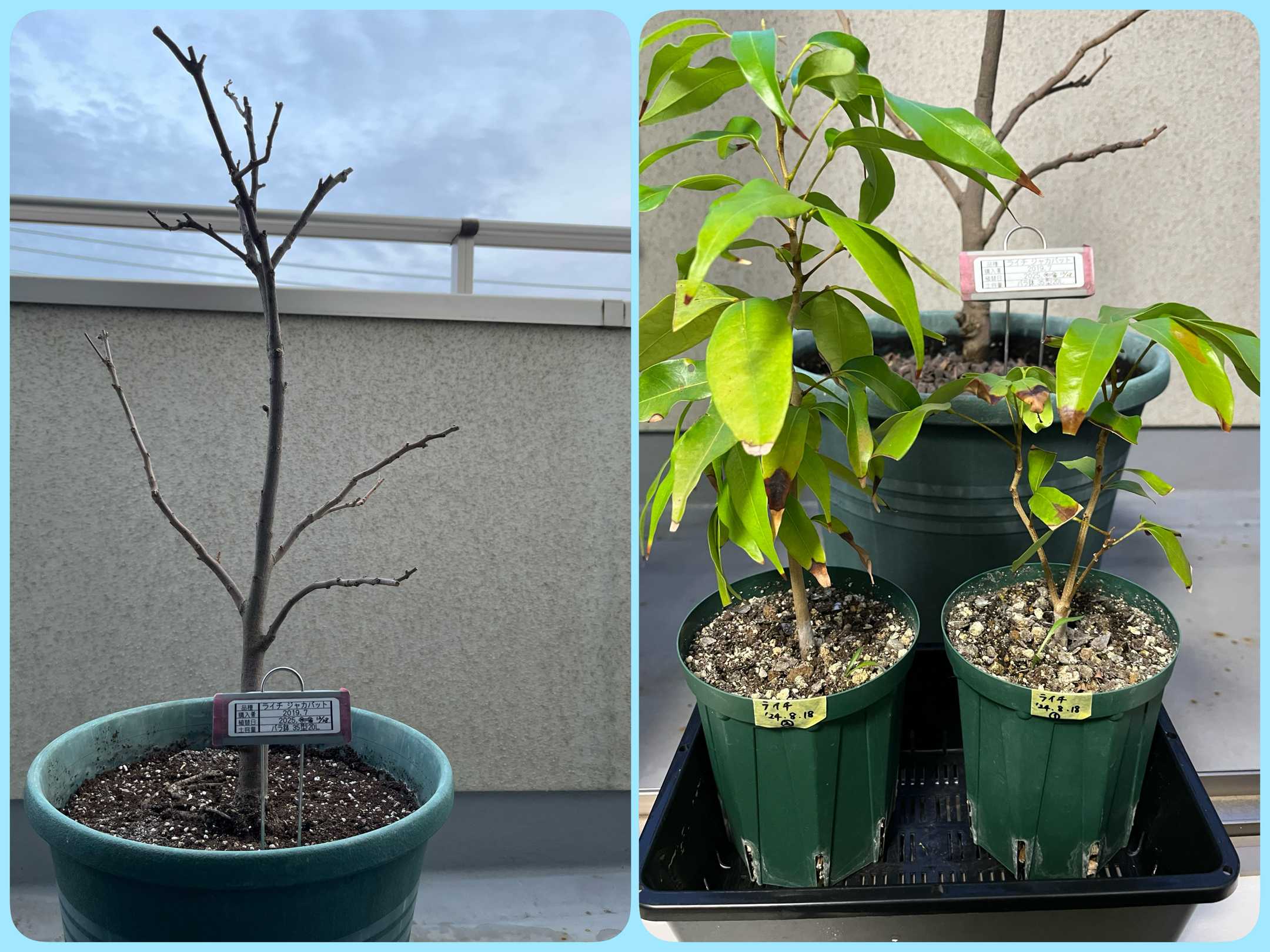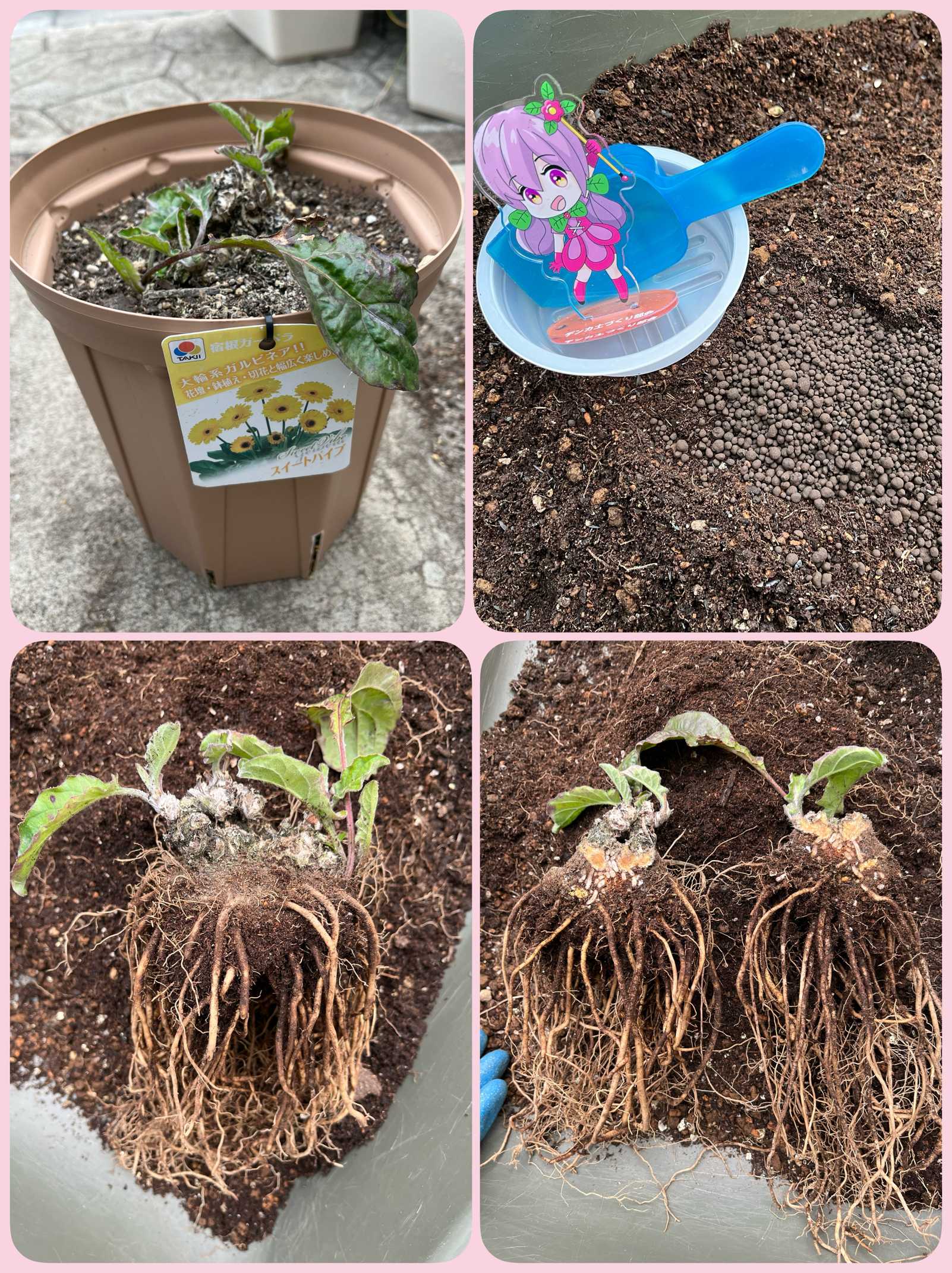 アヅミンを施用した2鉢(上)と施用していない2鉢(下)で違いを検証していきます🤗