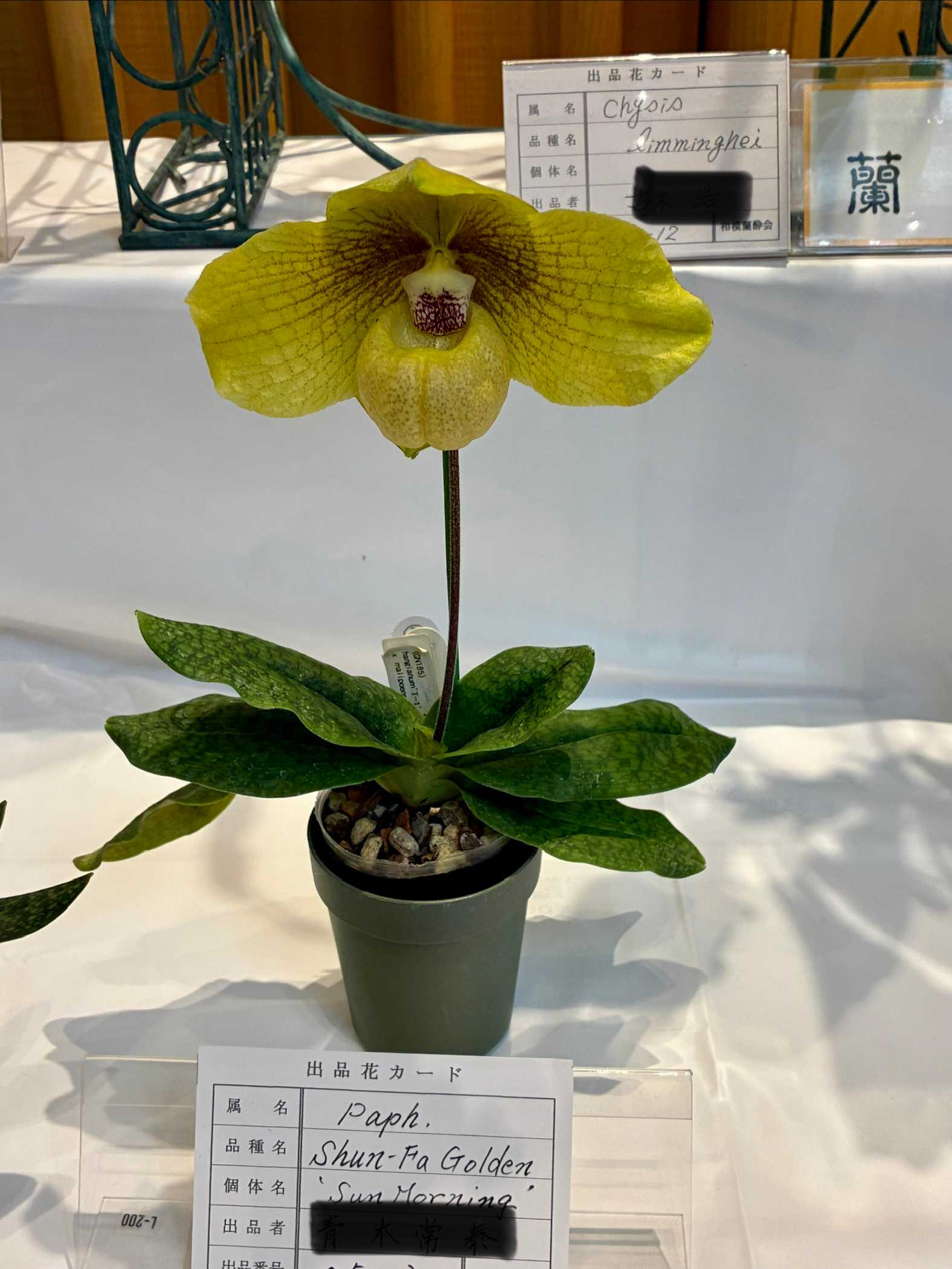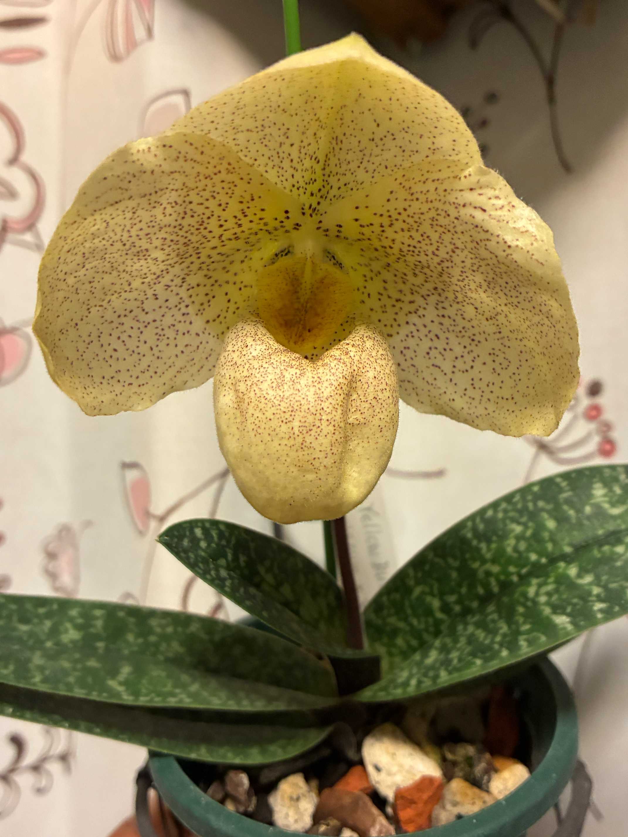 私が育ててる パフィオペディルム Yellow Butterfly 前に投稿したイエローバタフライとかなり個体差がありますね。