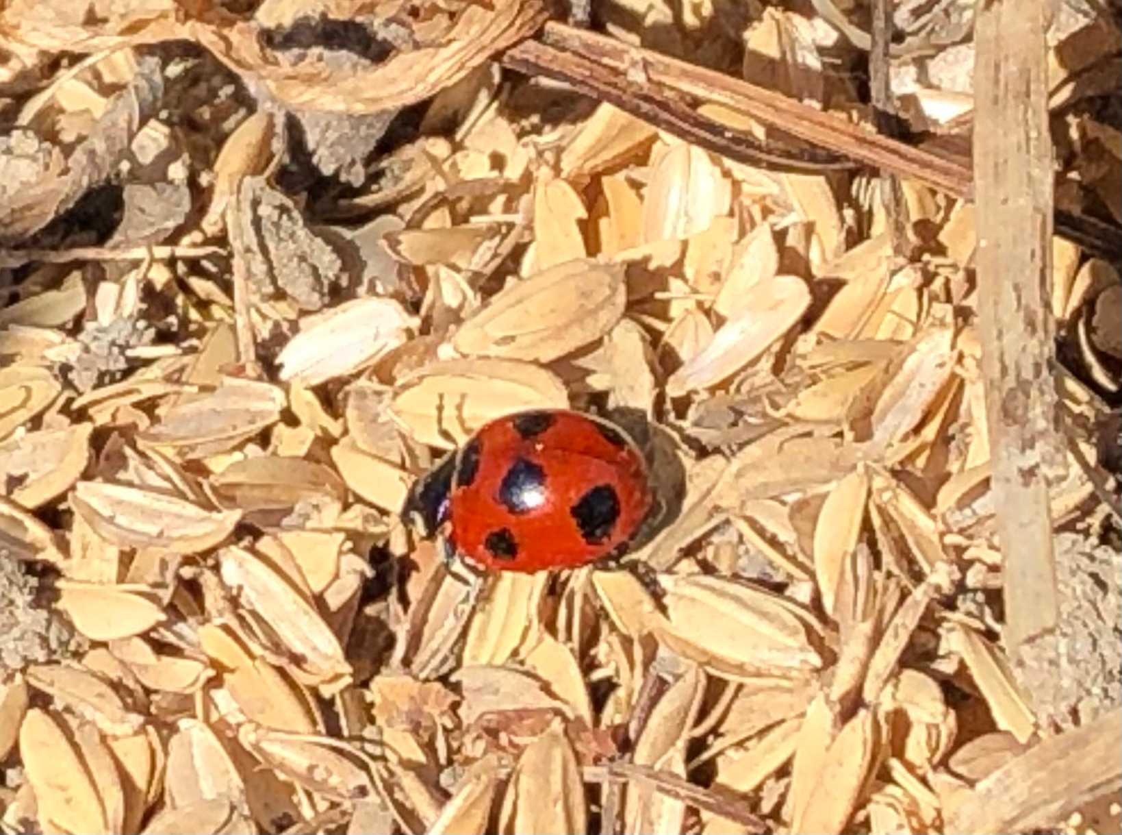 3月18日、頑張れナナホシテントウ、我が菜園の勇者!
