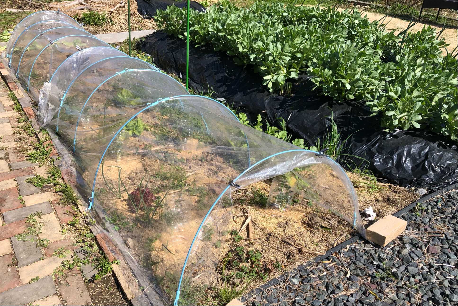 堆肥畝に枝豆🫛の種を蒔きました。ビニールで覆って温度を上げ3月中の発芽を期待しています。