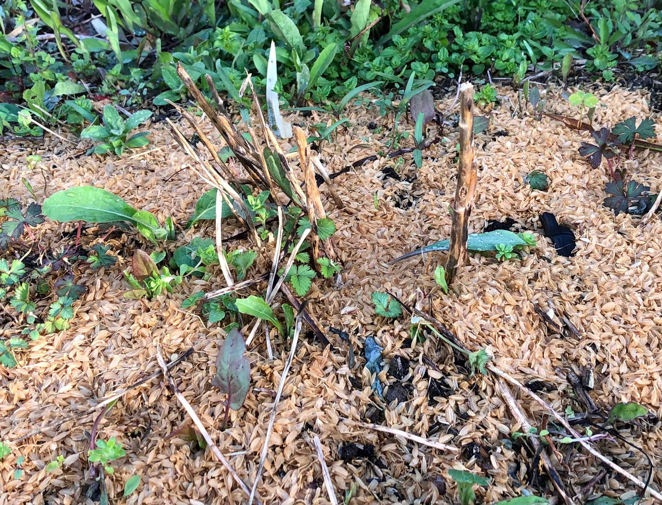 北側の花壇にはアスパラガスが植っています。アスパラガスは多年草で順調なら10年収穫できるといいます。去年は光合成を優先したので、今年は収穫できると良いな。