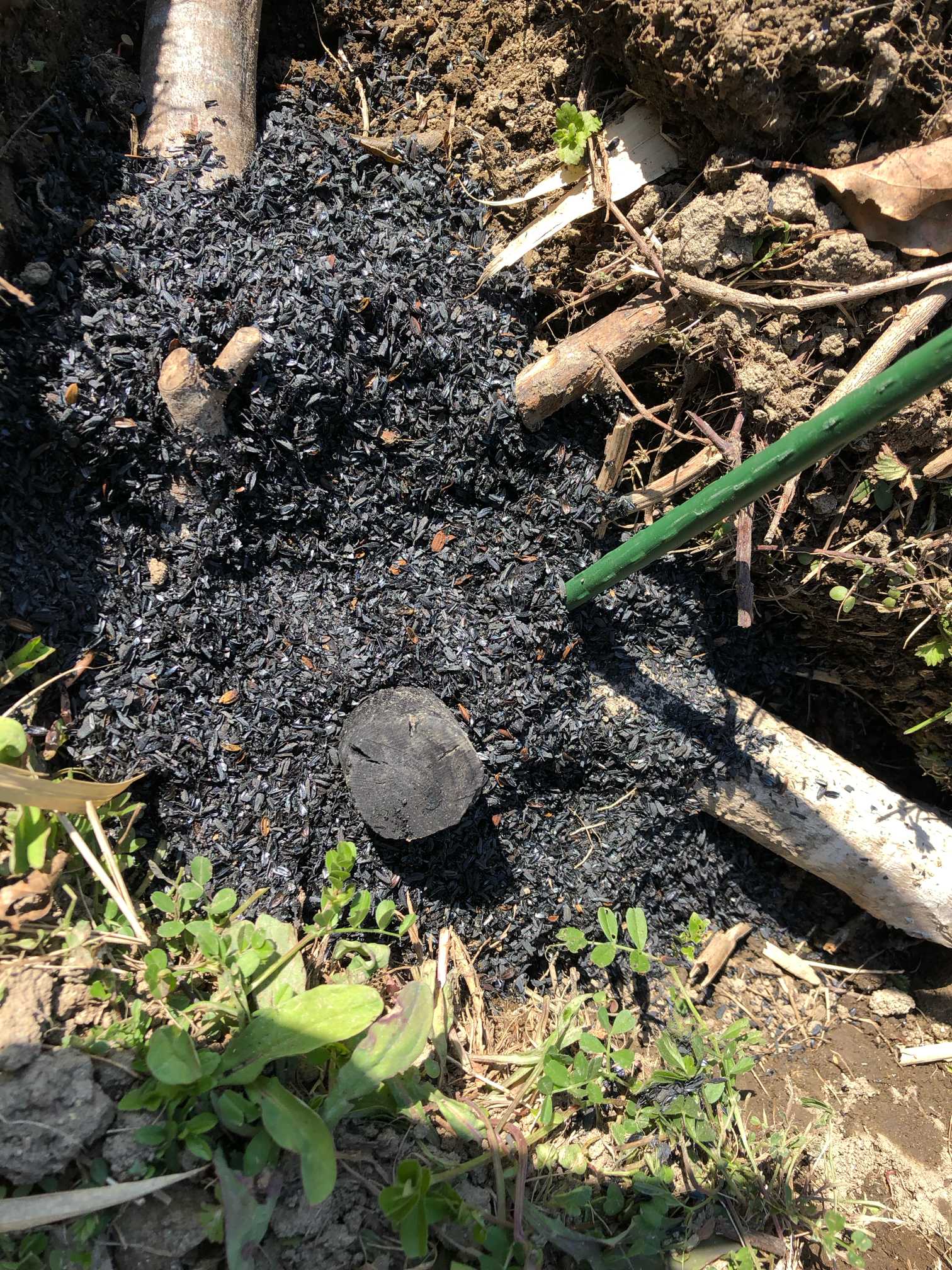 圃場を整えるため、ポイント毎に備長炭や籾殻くんたんを埋めています。