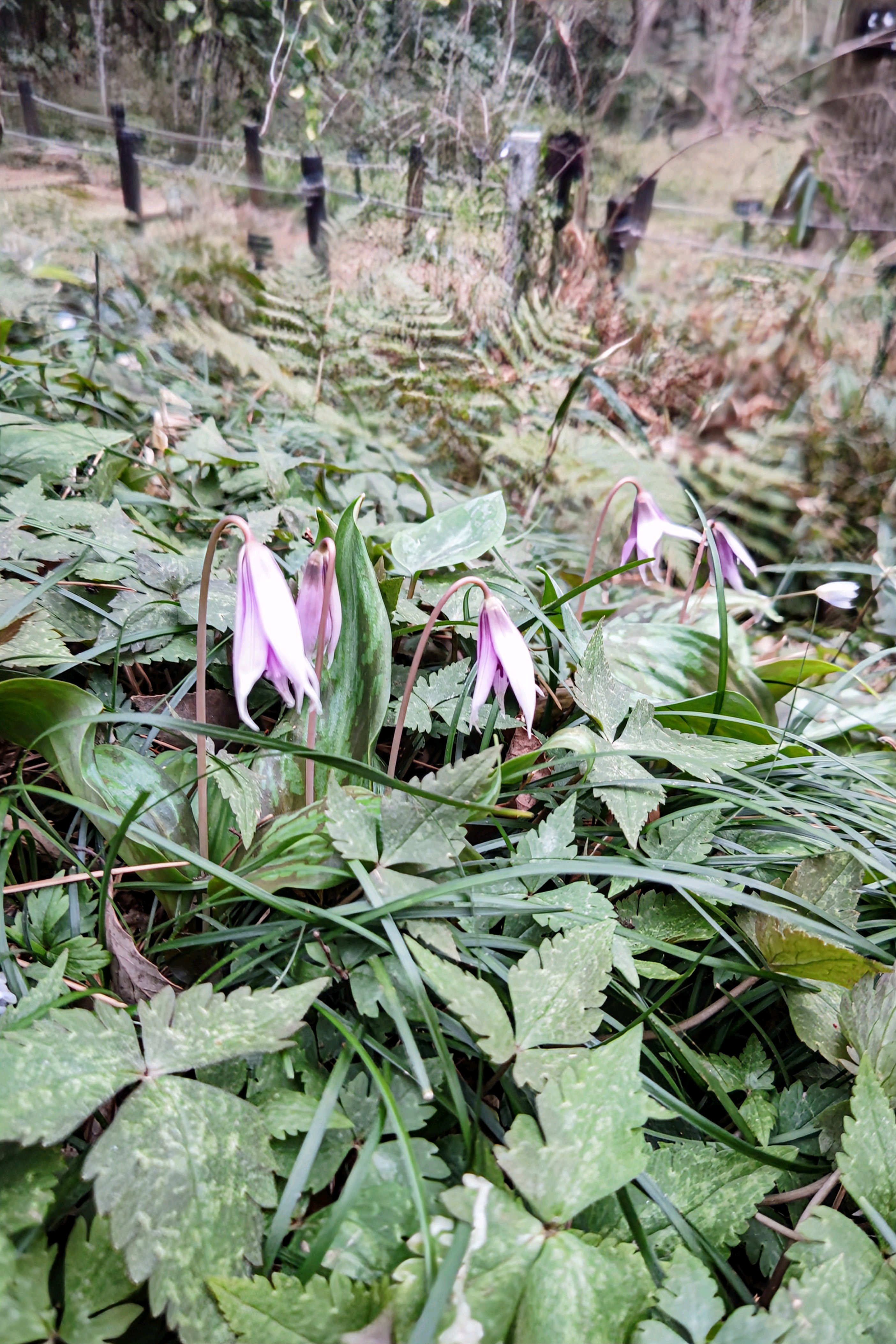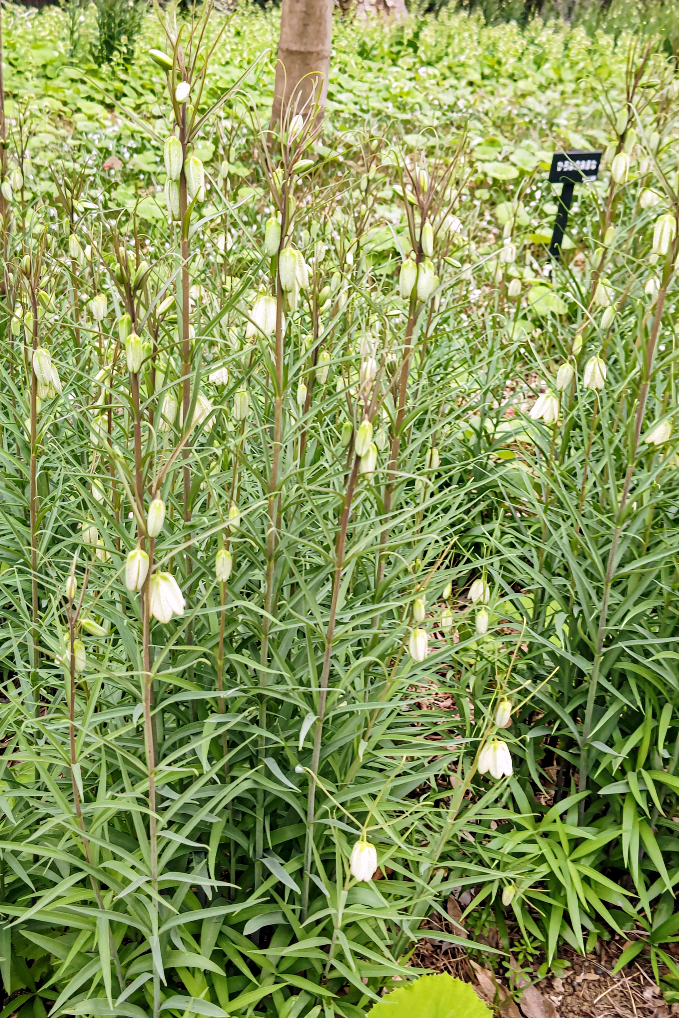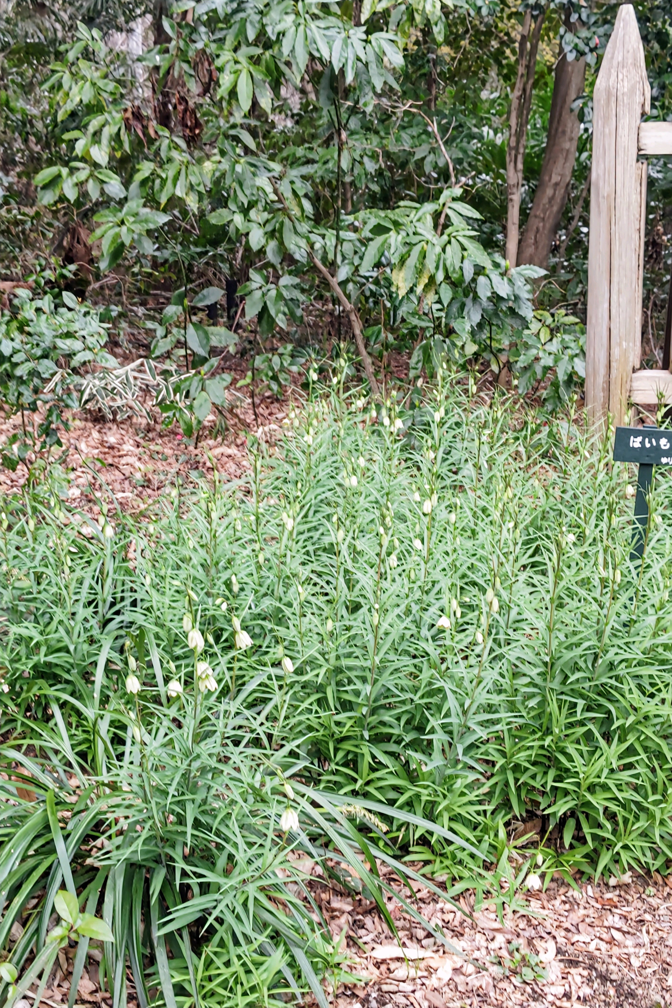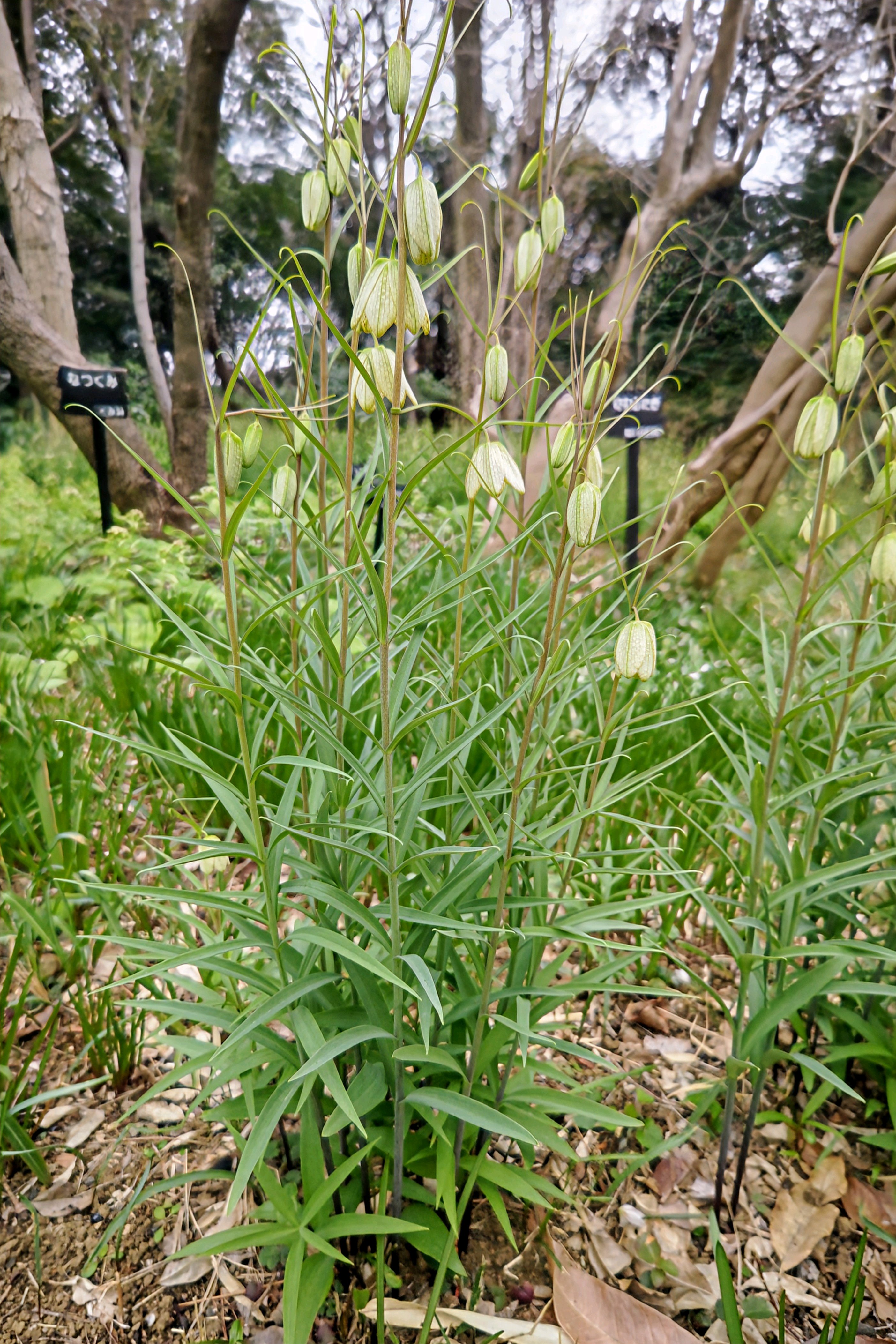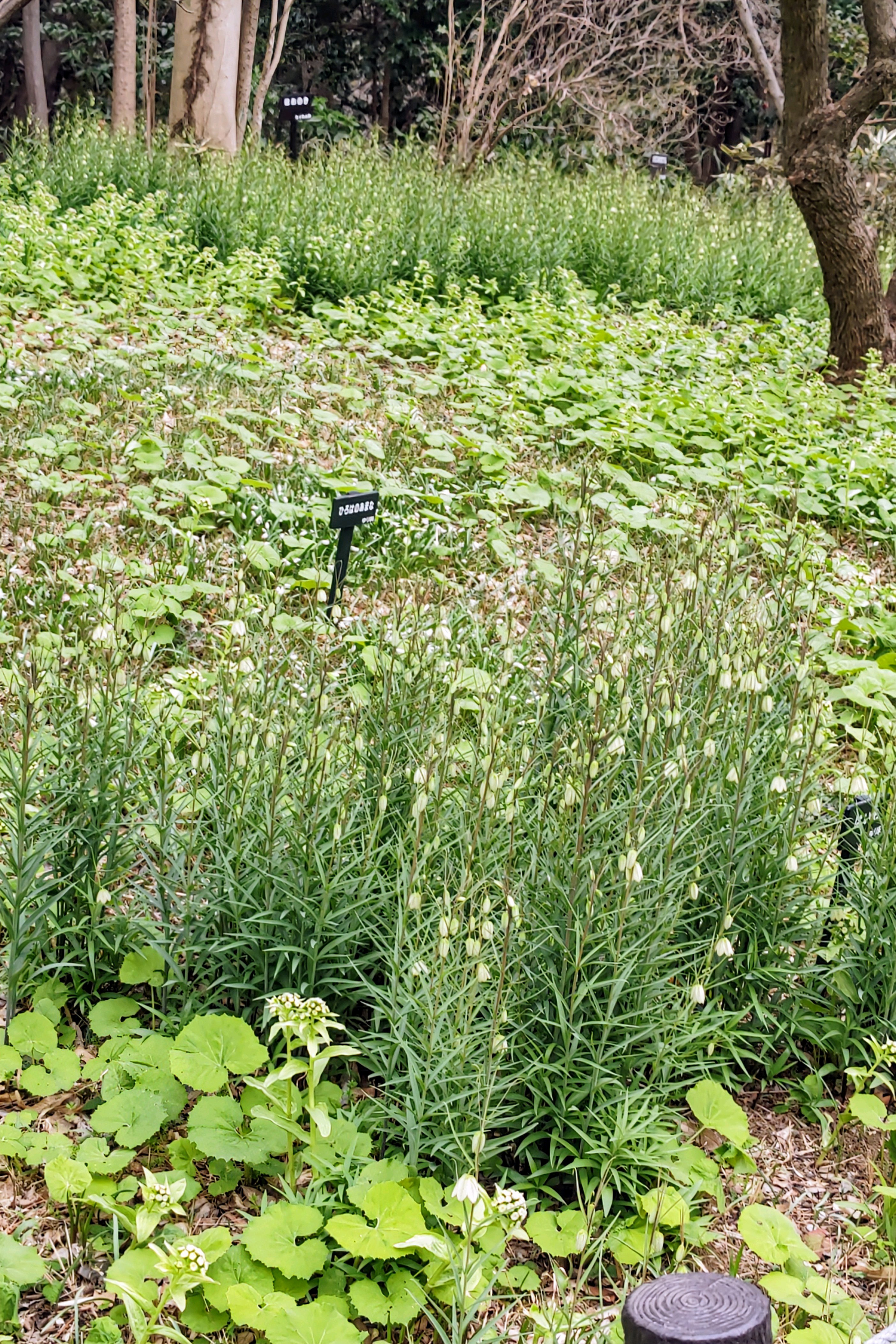 入ってすぐの路傍植物園に脚を進めるとすぐにバイモユリの群生。
