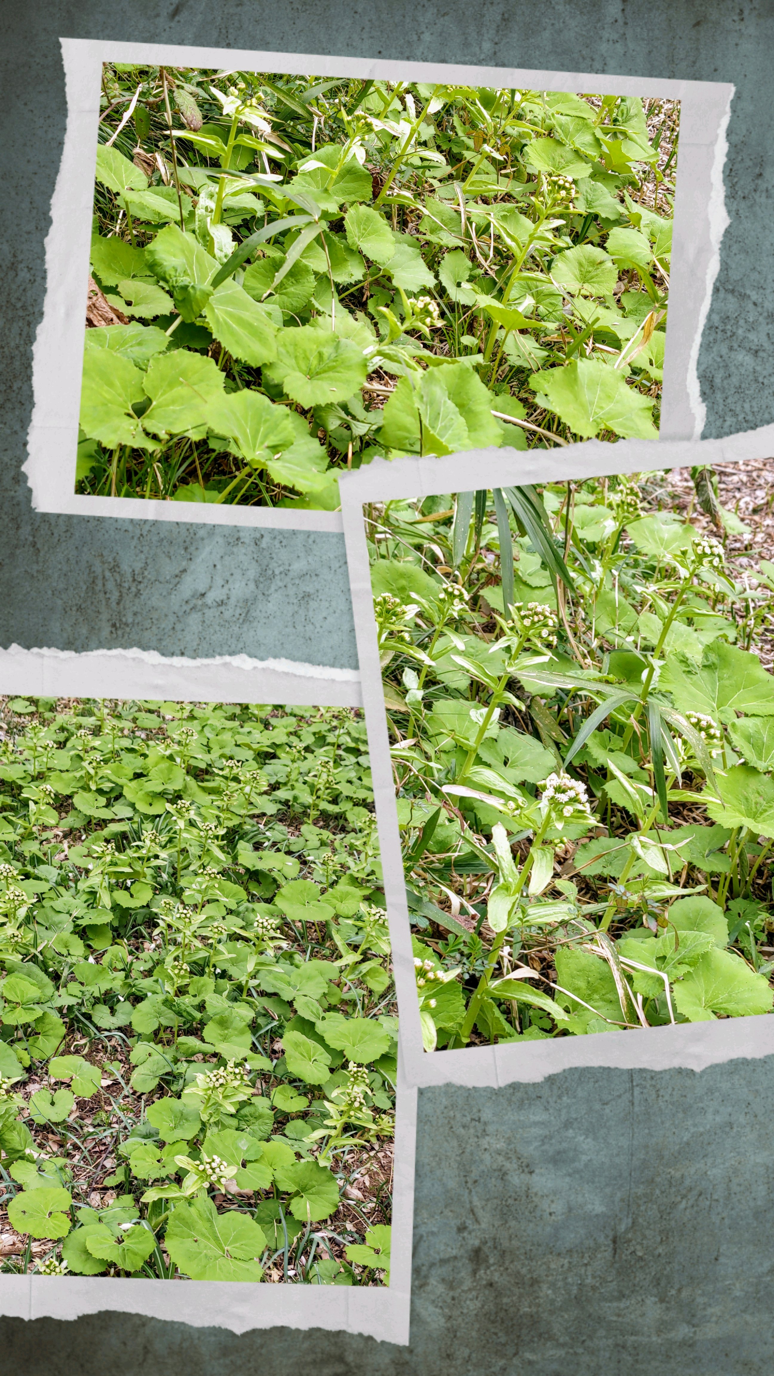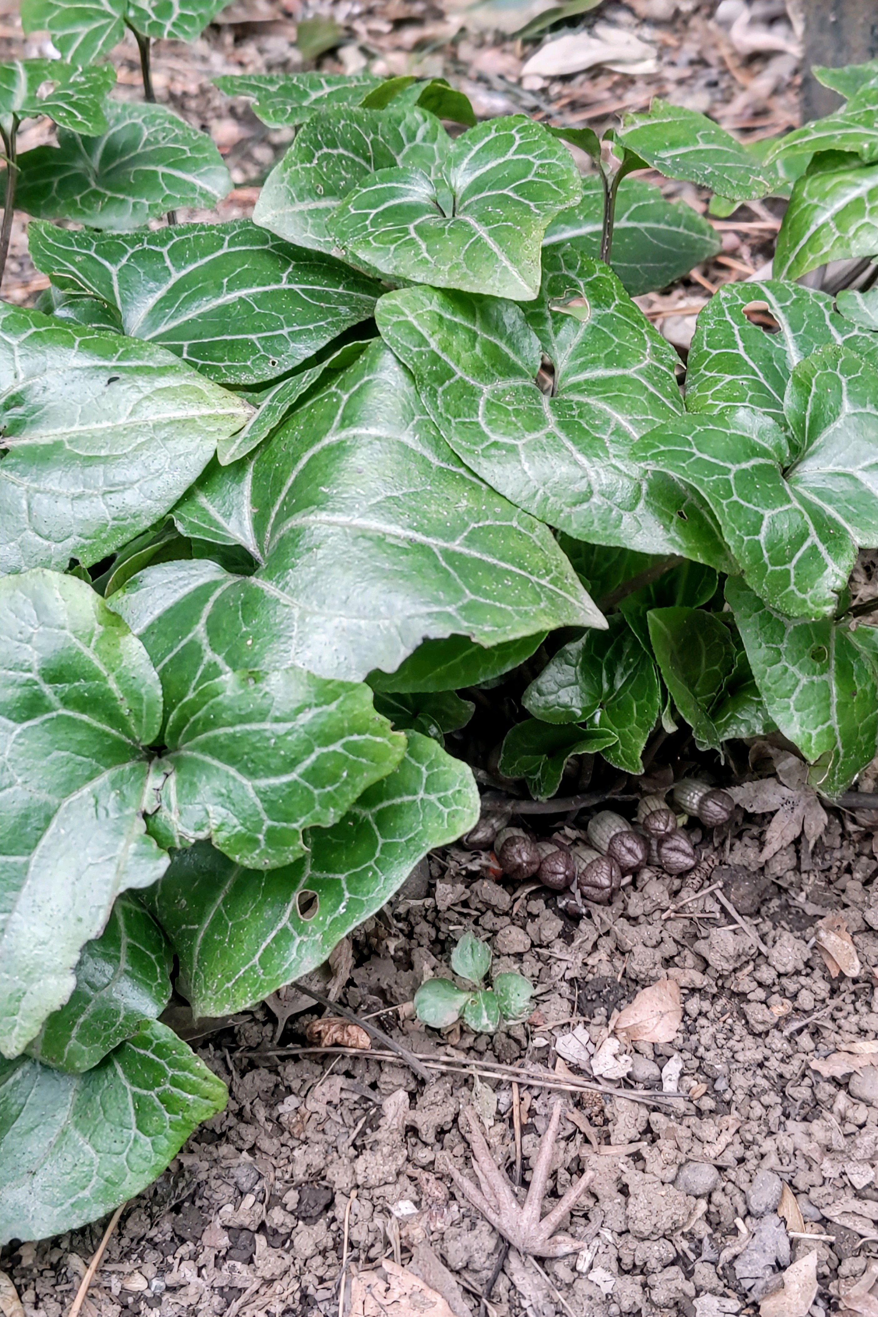 特徴的なカタクリの葉のしたに、ユキワリイチゲの葉。