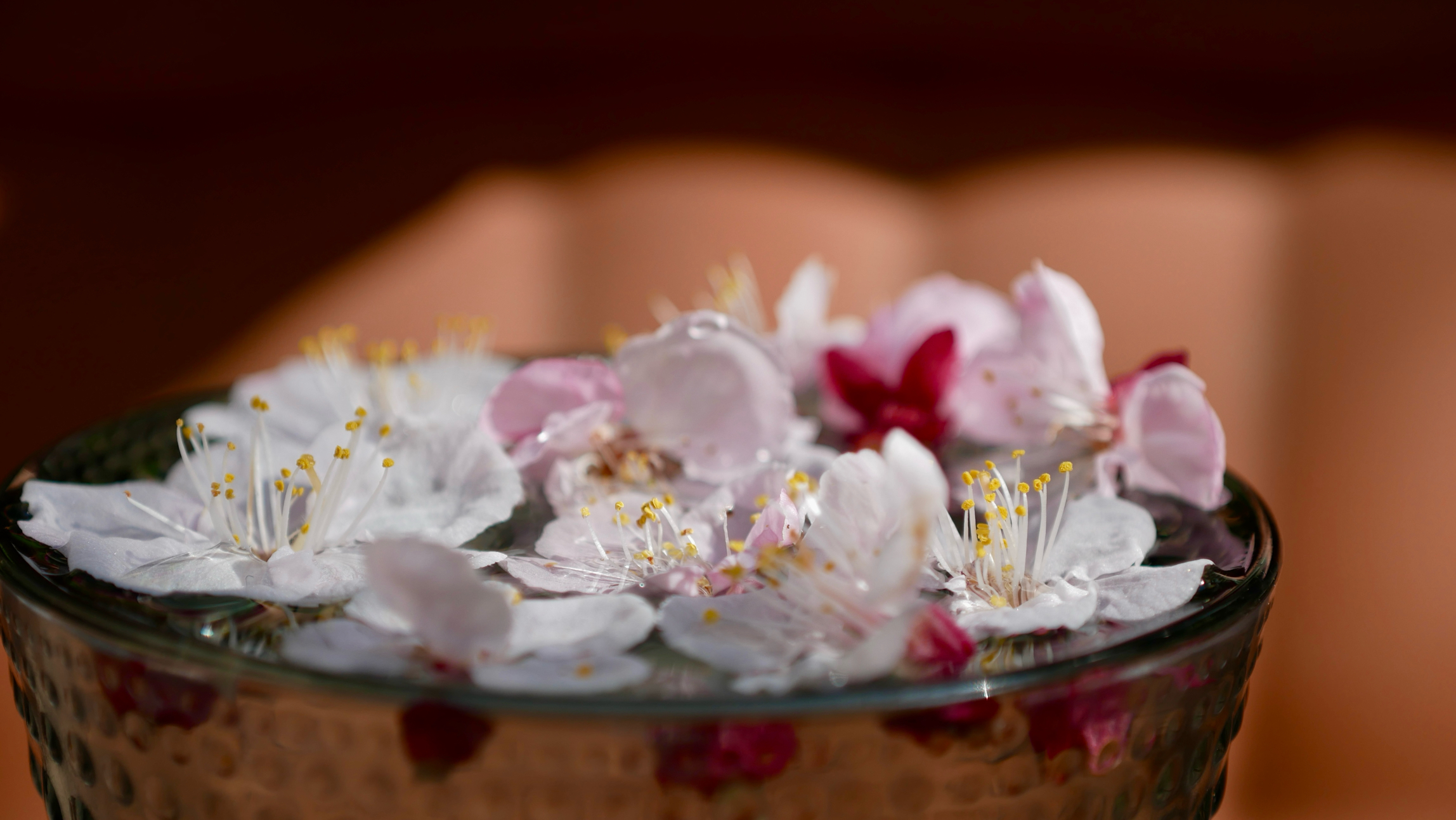 落ちたての花を使って、フローティングフラワーにしてみました。