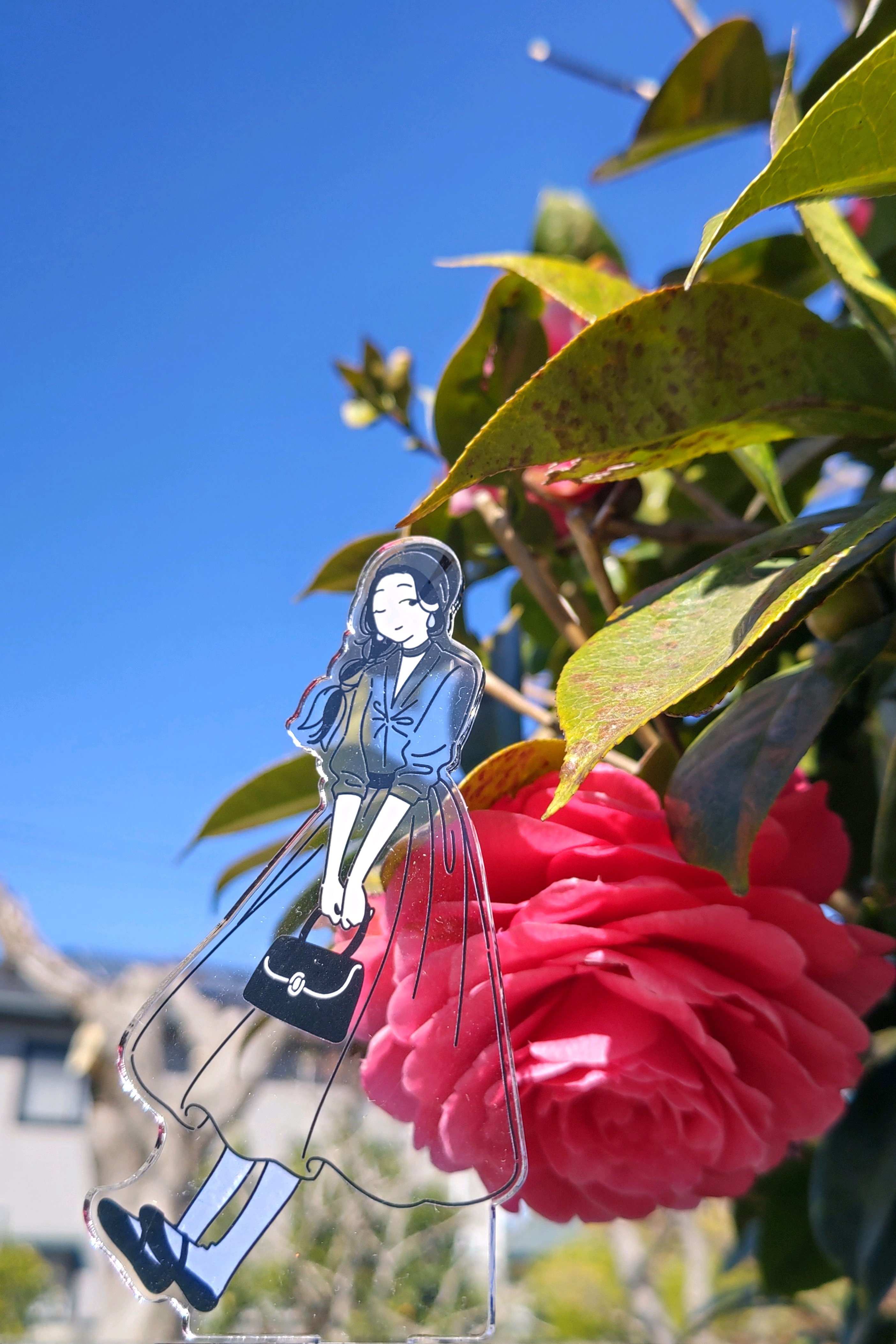 赤い椿のプリントのスカートがお気に入り❤️💚