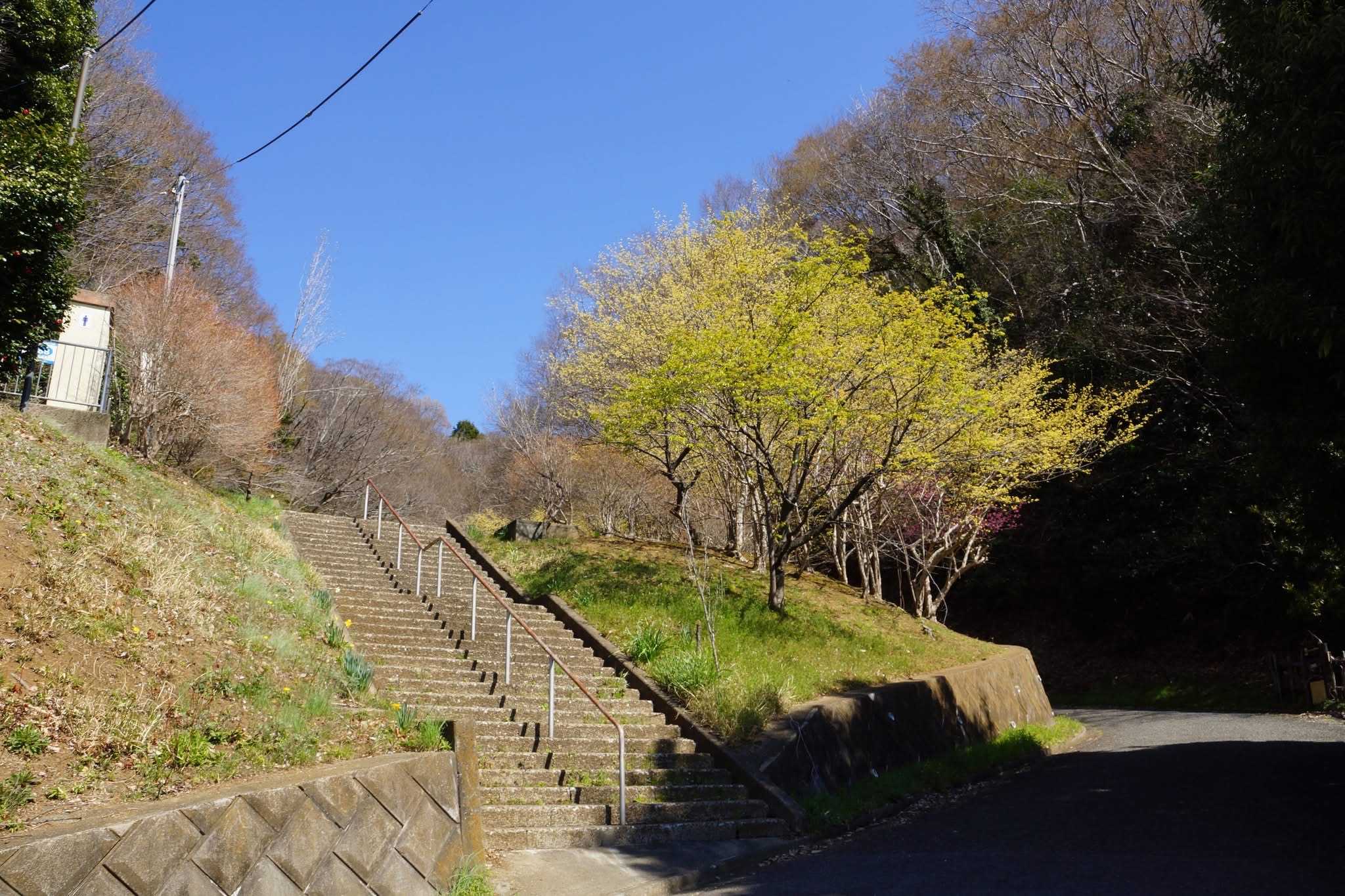 階段の奥にある駐車場に車を停めて、一旦入口まで下りてきました。