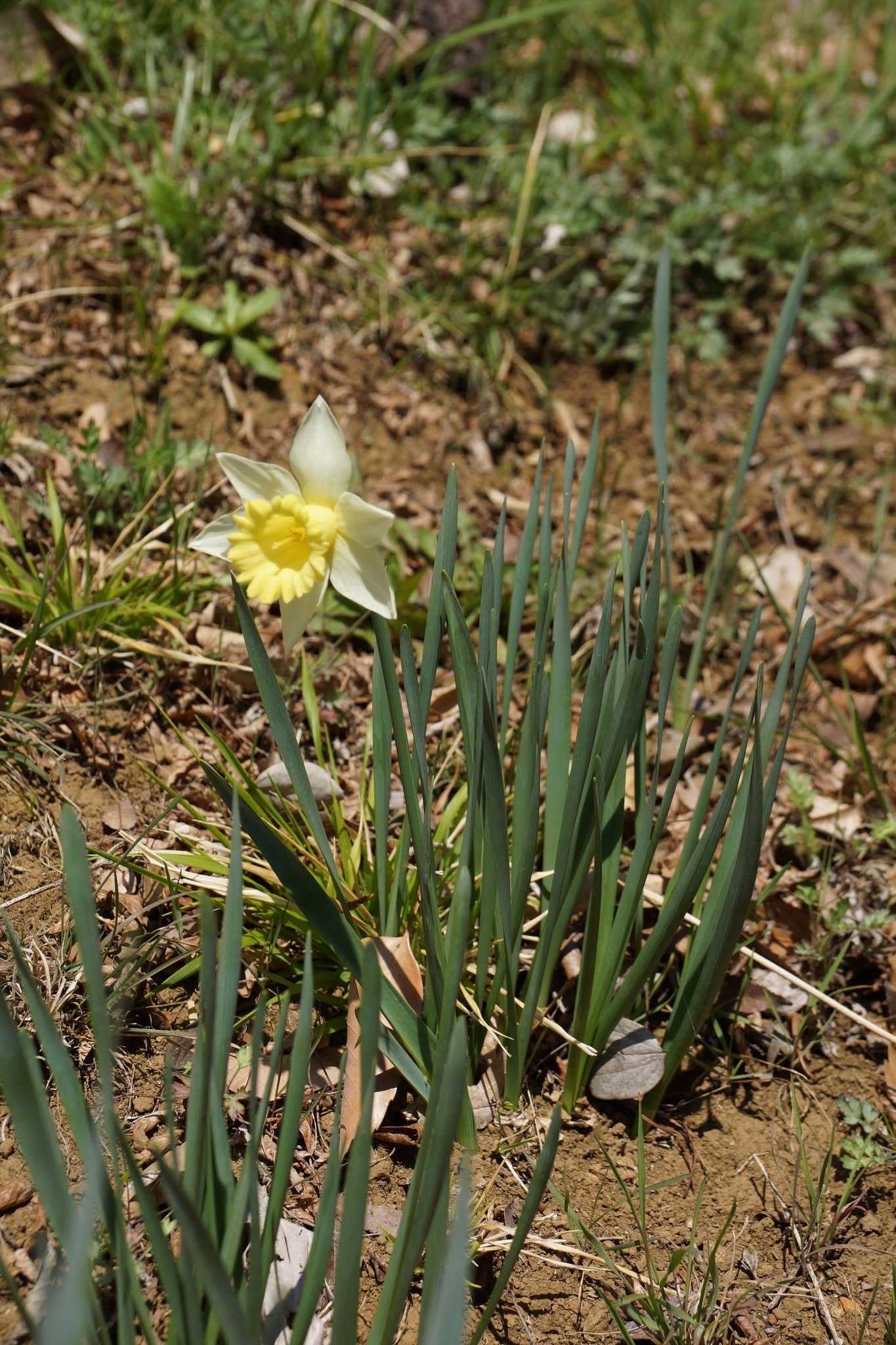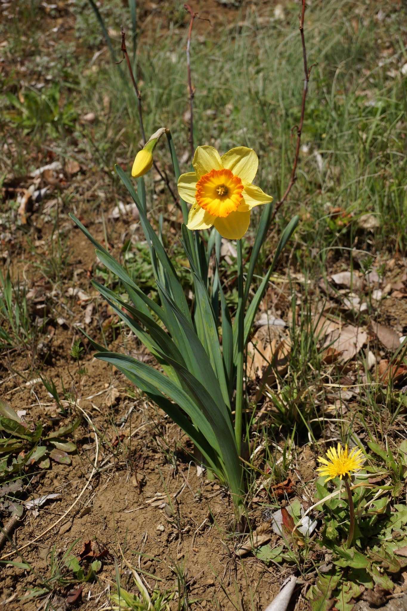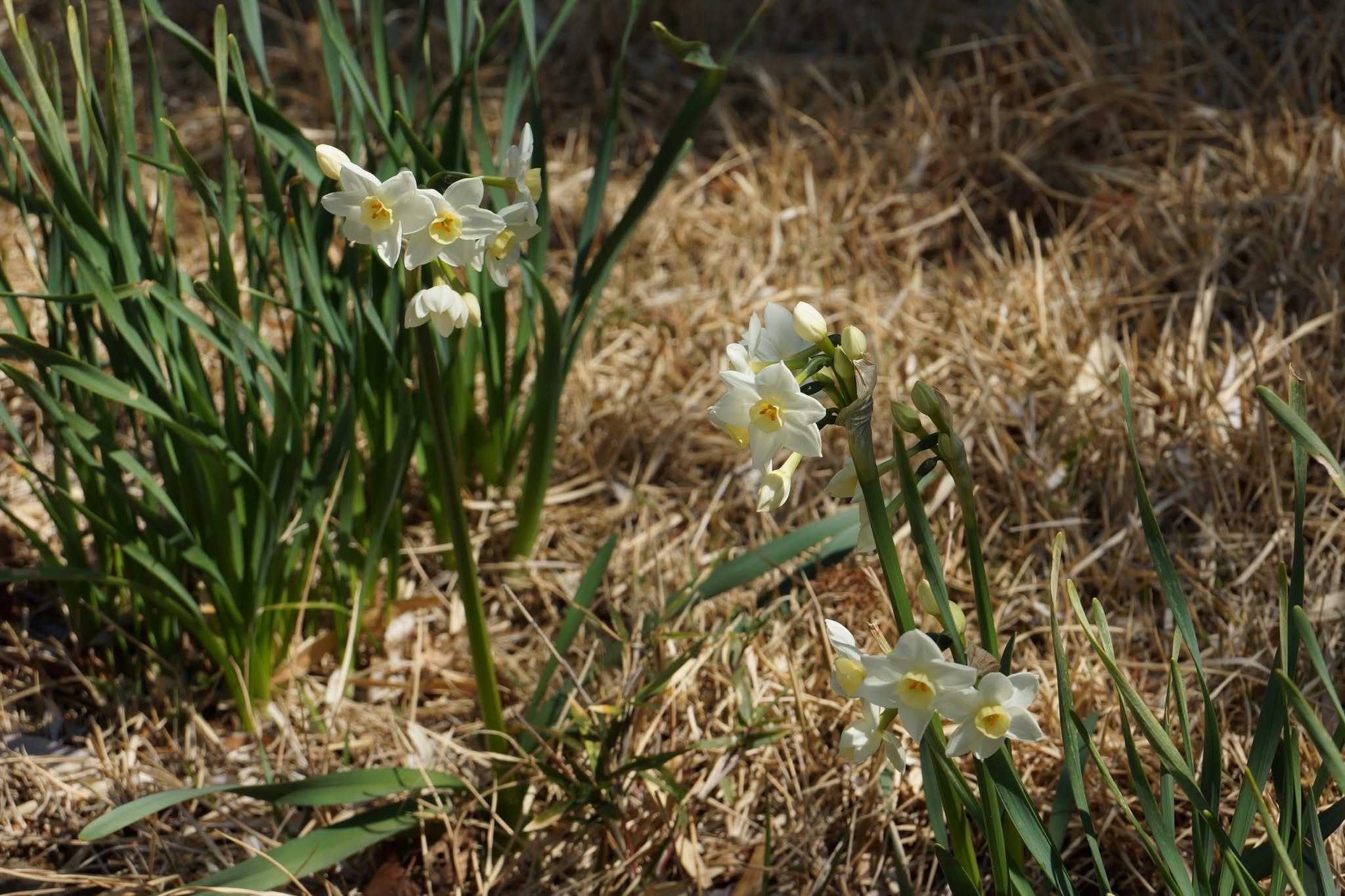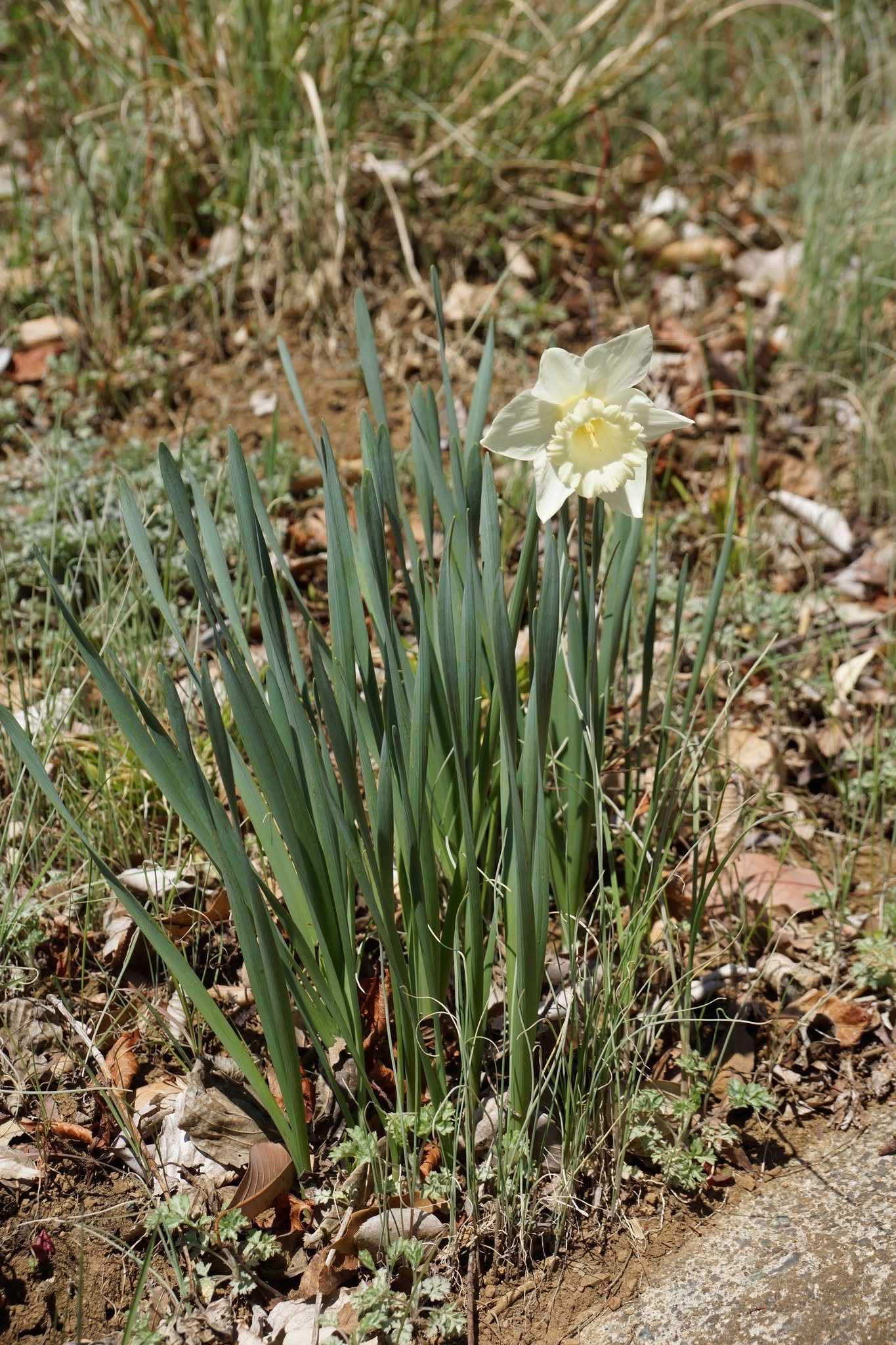 階段の両サイドで、所々にラッパスイセンが咲いていました。