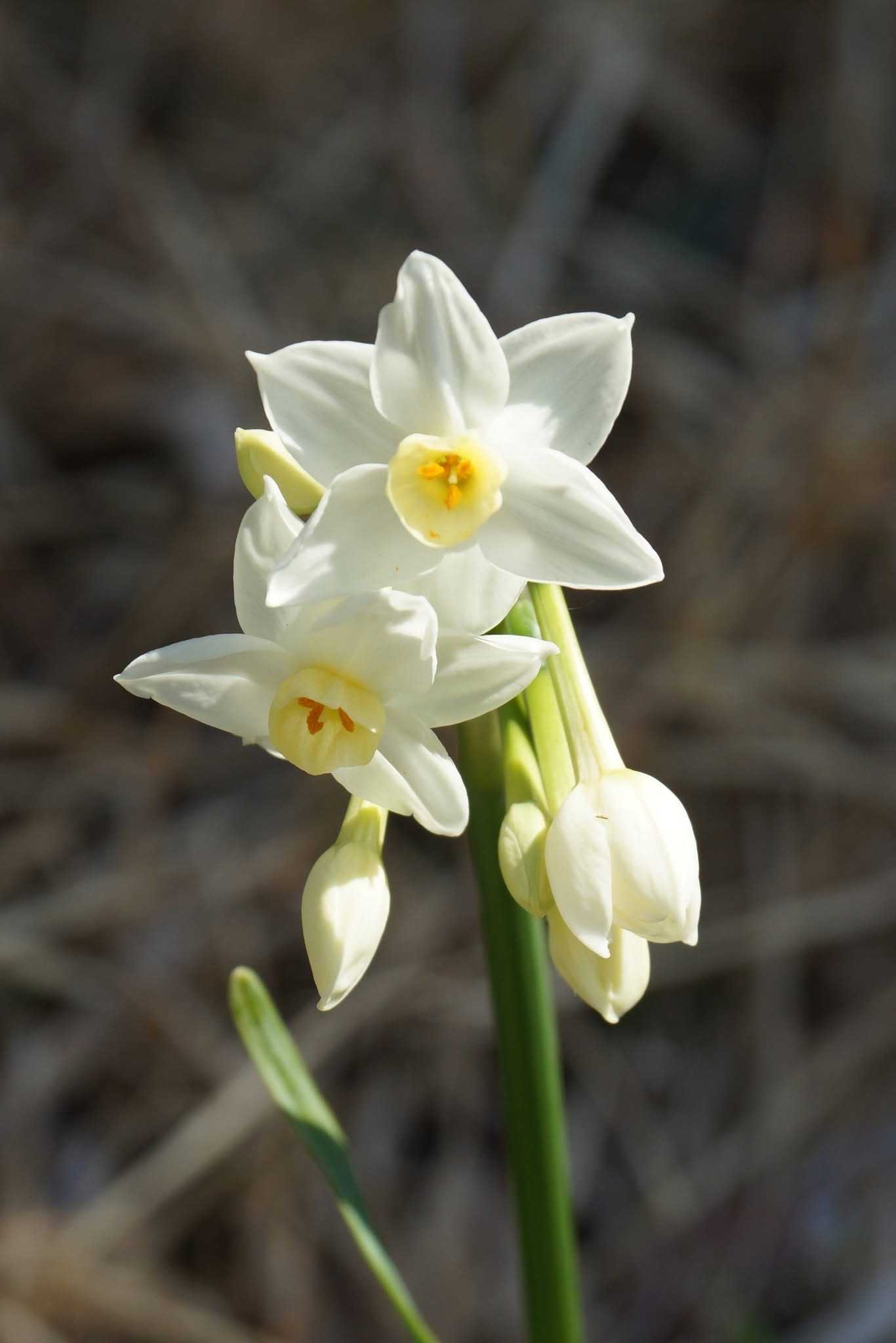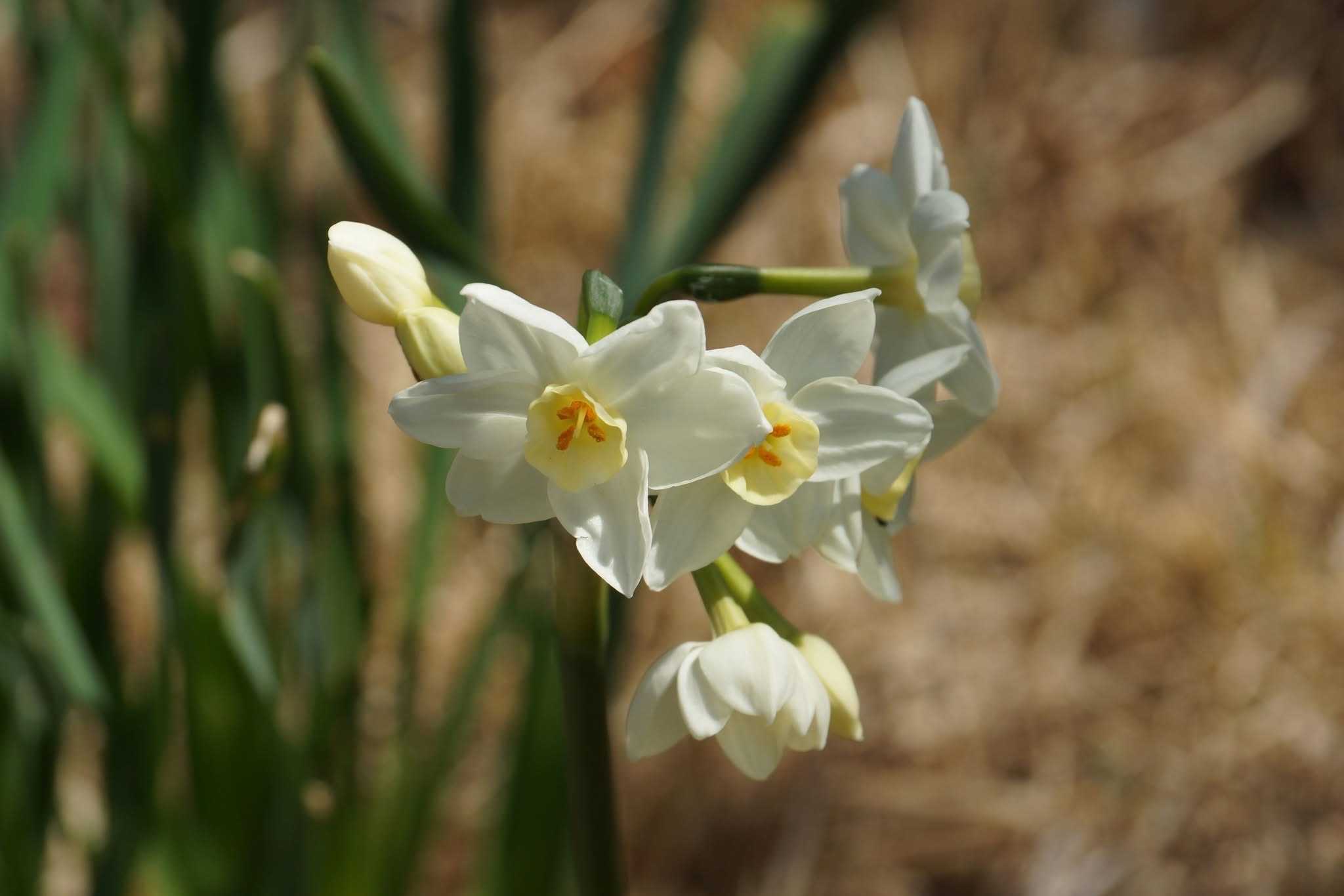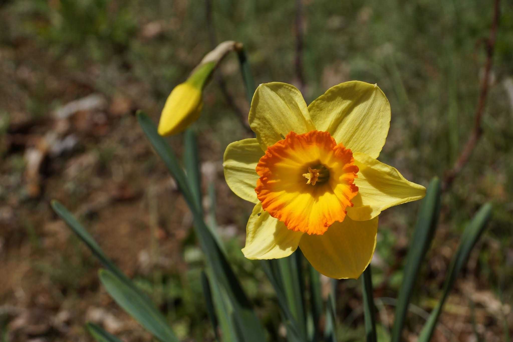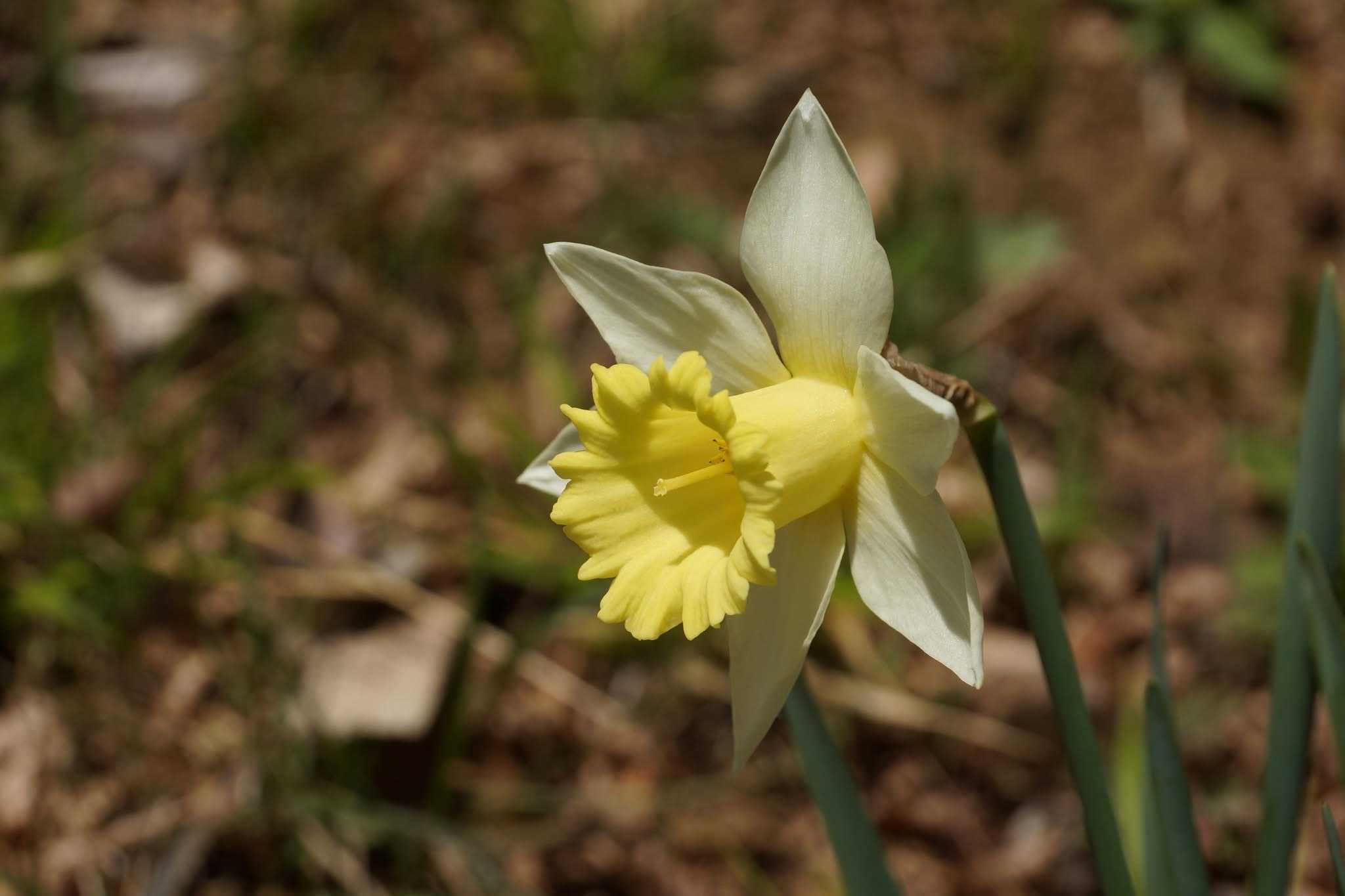 階段の両サイドで、所々にラッパスイセンが咲いていました。