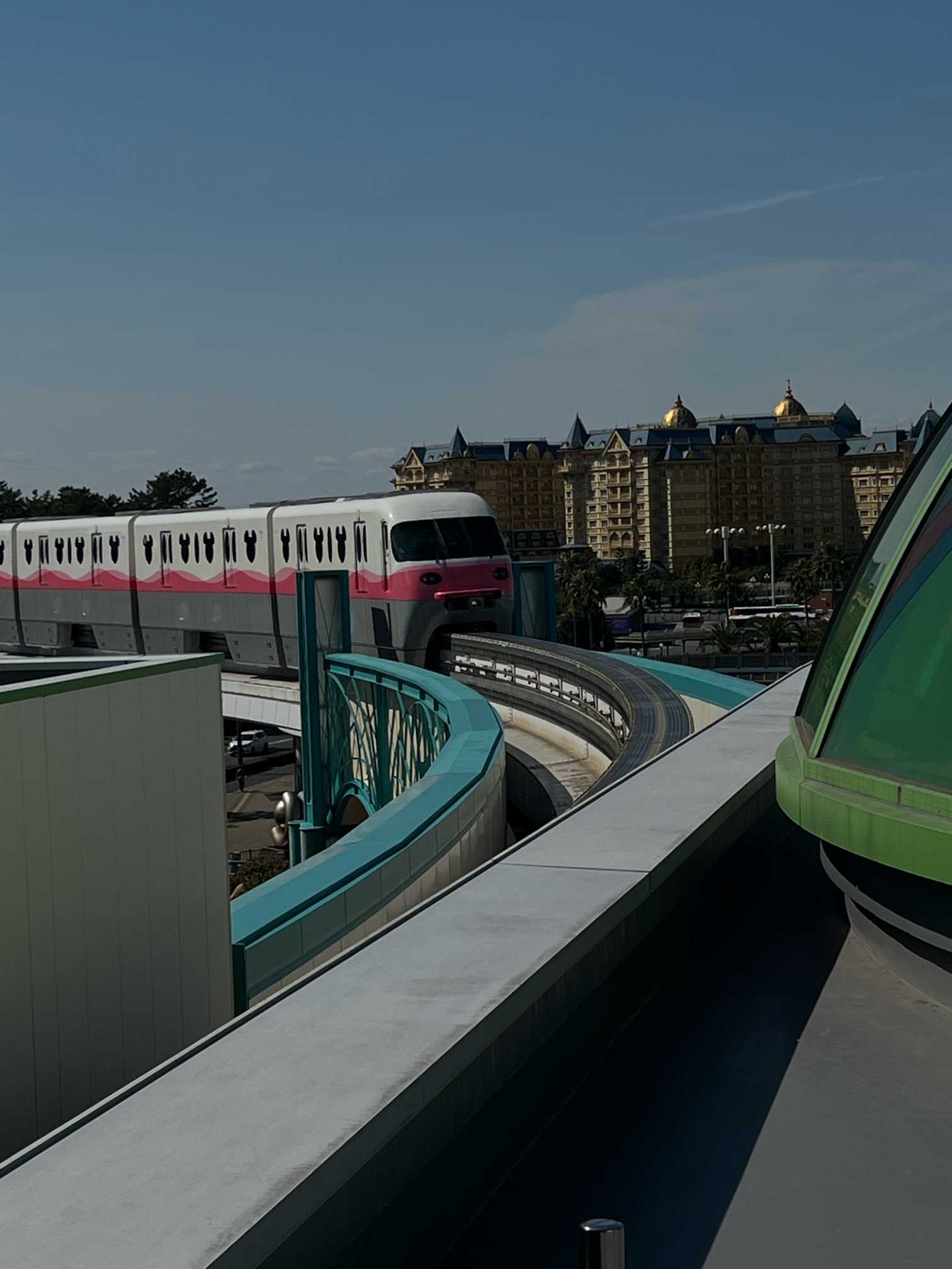 ディズニーランドの外回りを一周できるモノレールに乗って今夜泊まるホテルへ移動