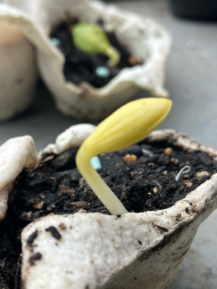 これは無事に🌱発芽🌱かな😊四つのうち二つだけだけど無事に発芽してくれそうです。ナメクジにやられないことを祈るばかりです🥰