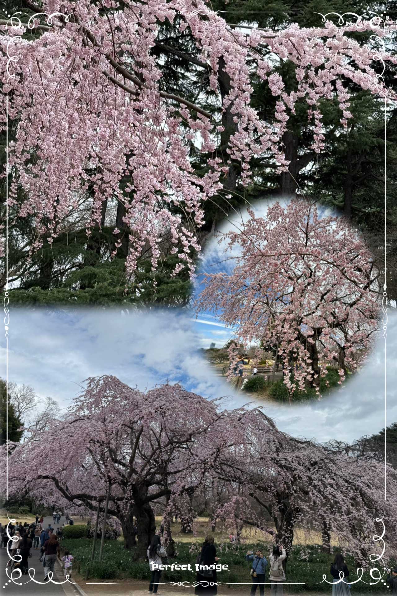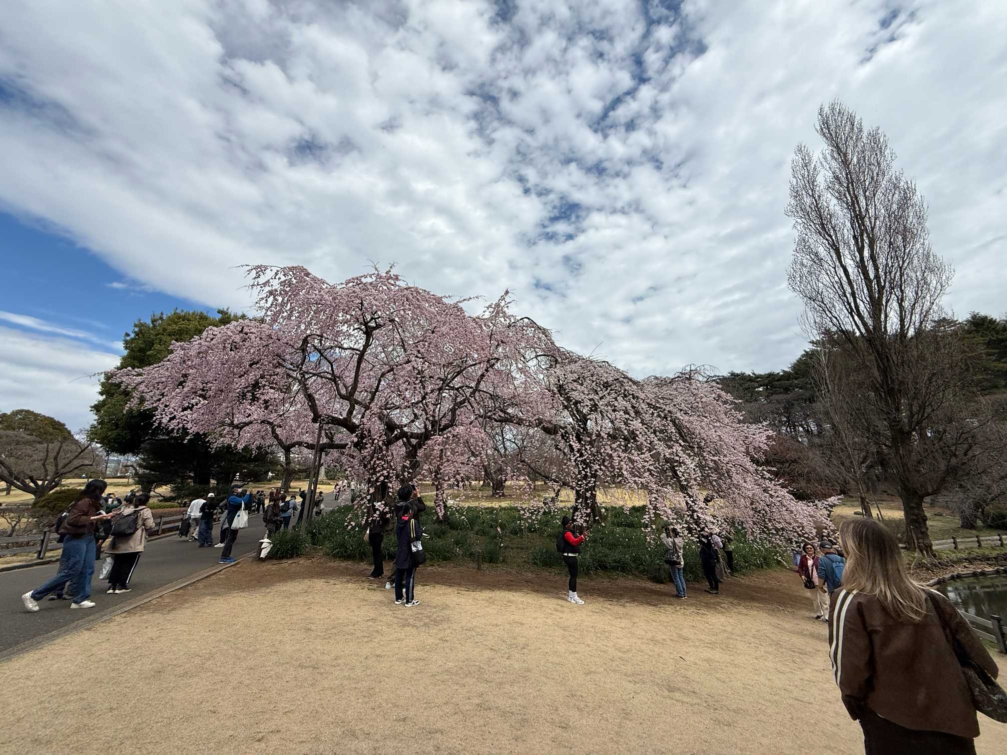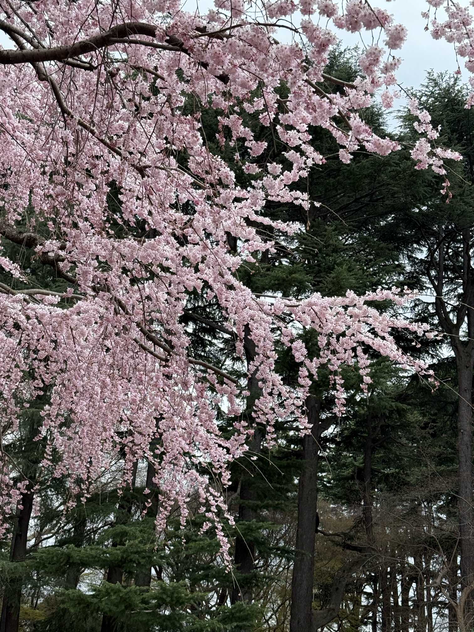 御苑の枝垂れ桜🌸咲いてるかな〜と気になり お昼からふらっと行きました。満開にびっくり‼️