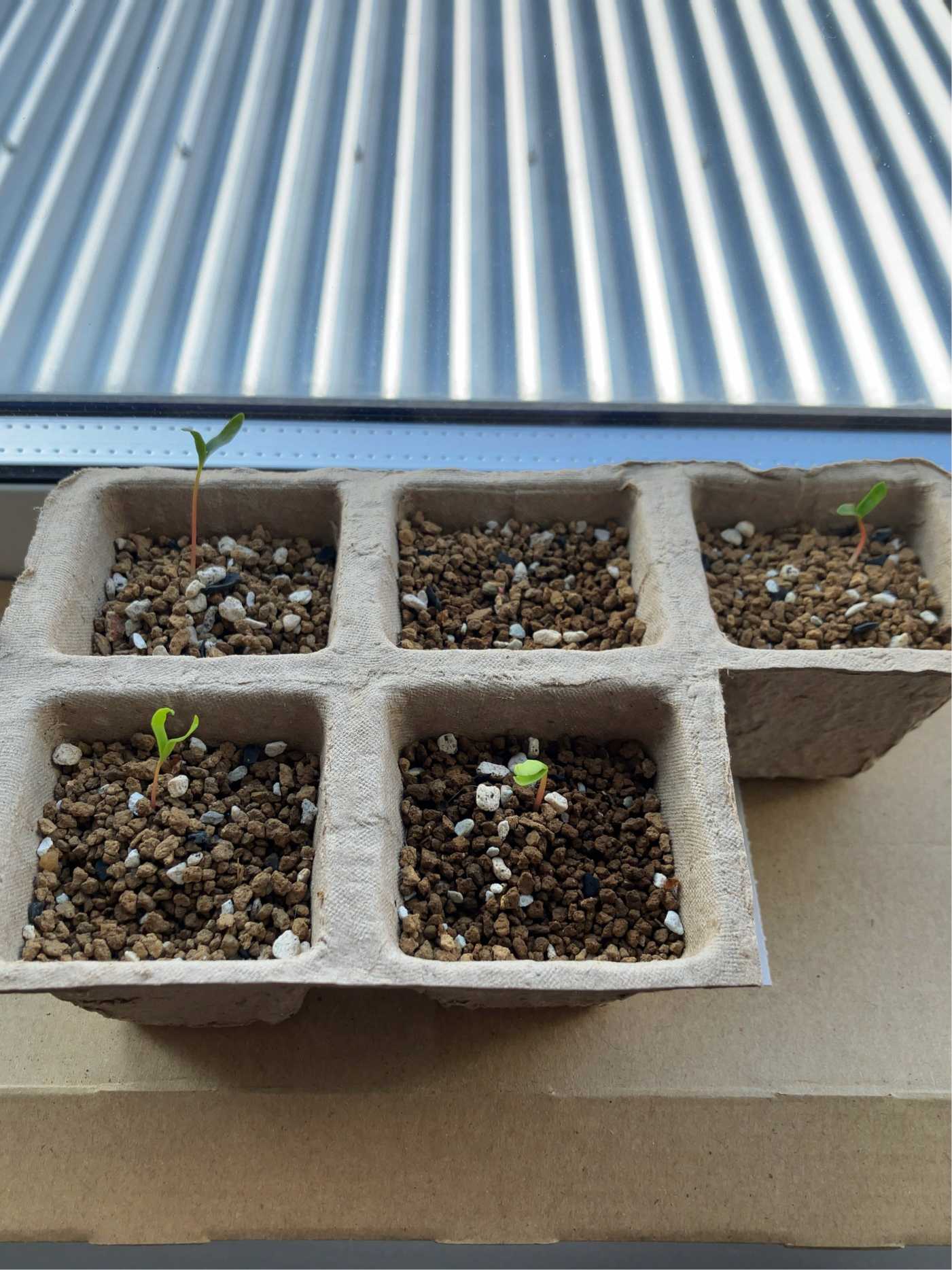 最後の種も殻から出てきた。成長の早いやつは本葉が触角みたい。