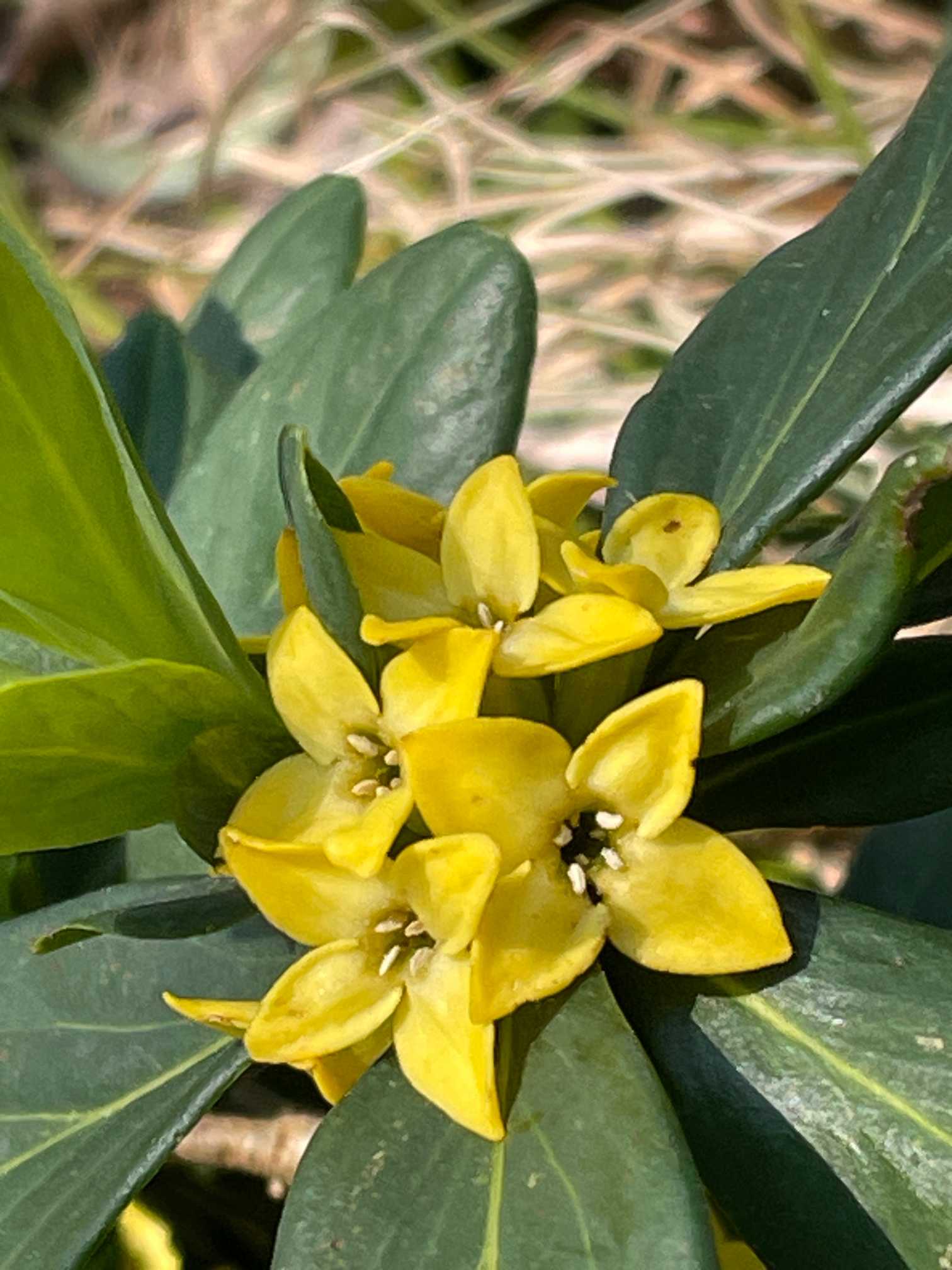 ナニワズ(難波津)。園芸店で売られている、黄花沈丁花はコノ娘なのだろうか⁉️。いつも不思議に思います。