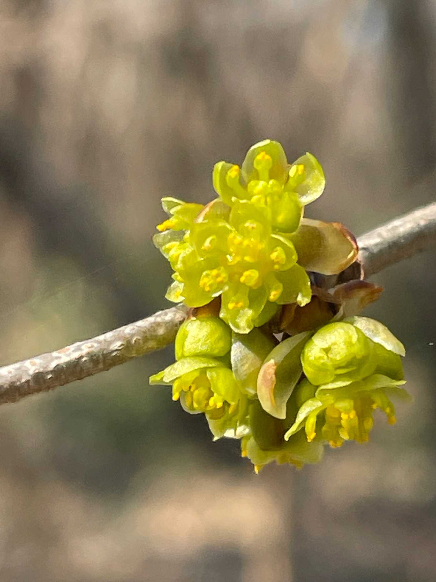 尾根に取り付くと、マンサク(満作)が見頃。春蘭を目当てに来ると、終盤なのにネ。