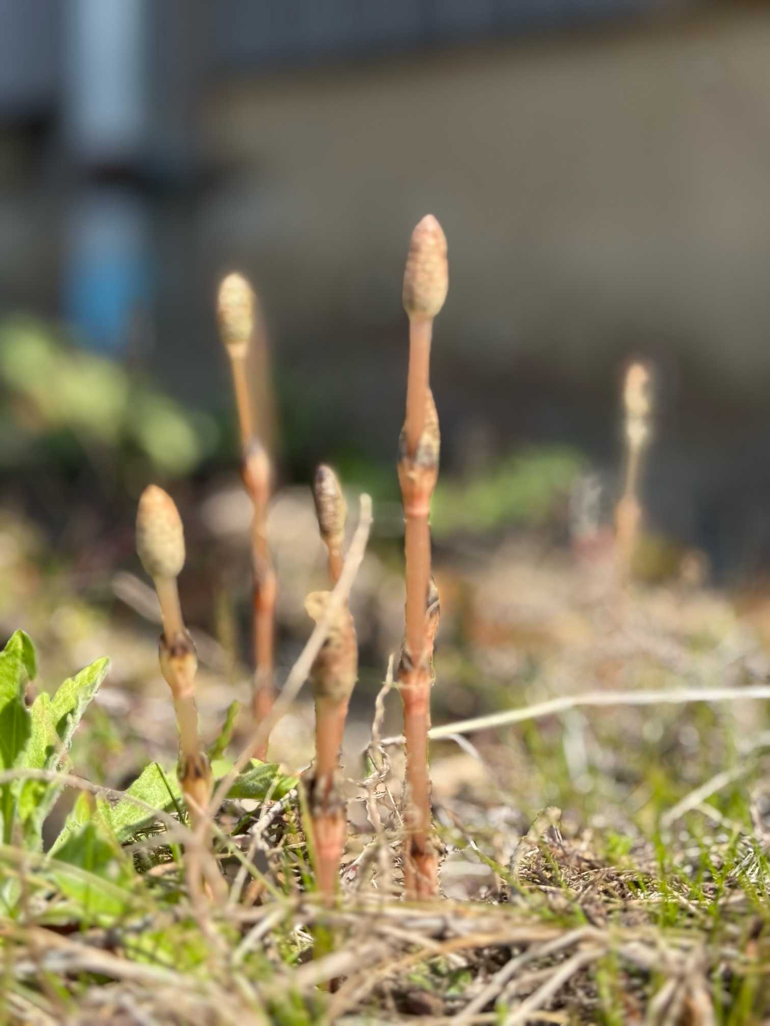 つくしが生えてます。まだ胞子を撒いてない。この季節に来ないとなんだなぁ