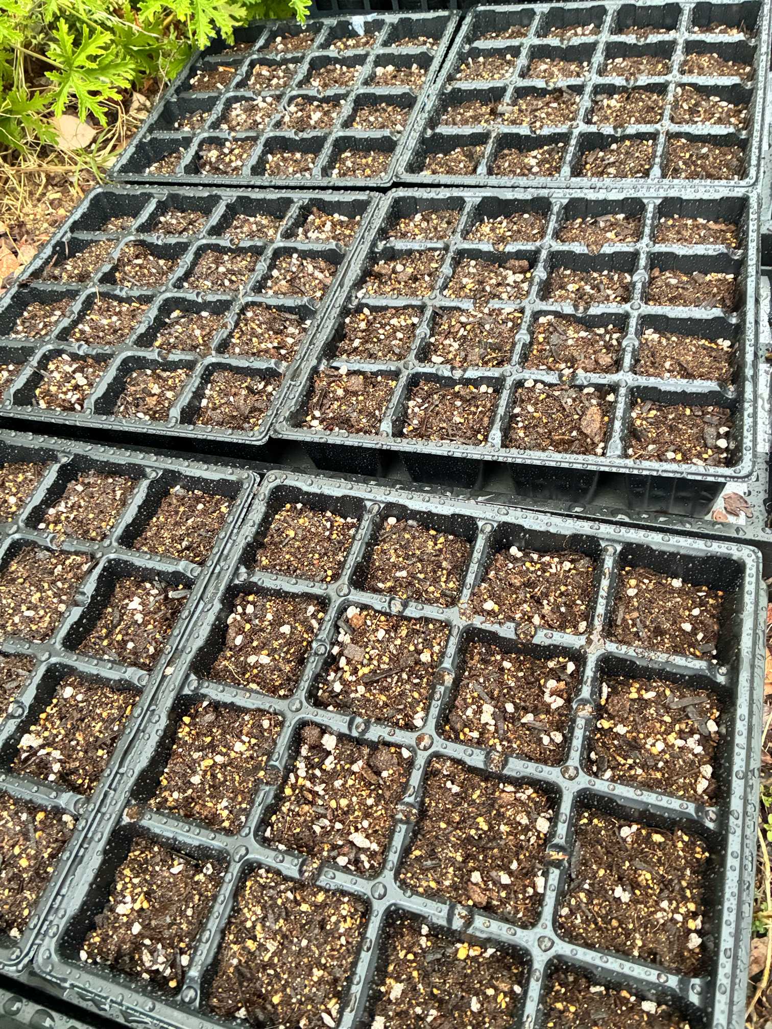 自分でも成功する自信はあまりありませんでしたが、とりあえずやってみようと思って防水テープを育苗箱の穴🕳️の部分に貼っていきました