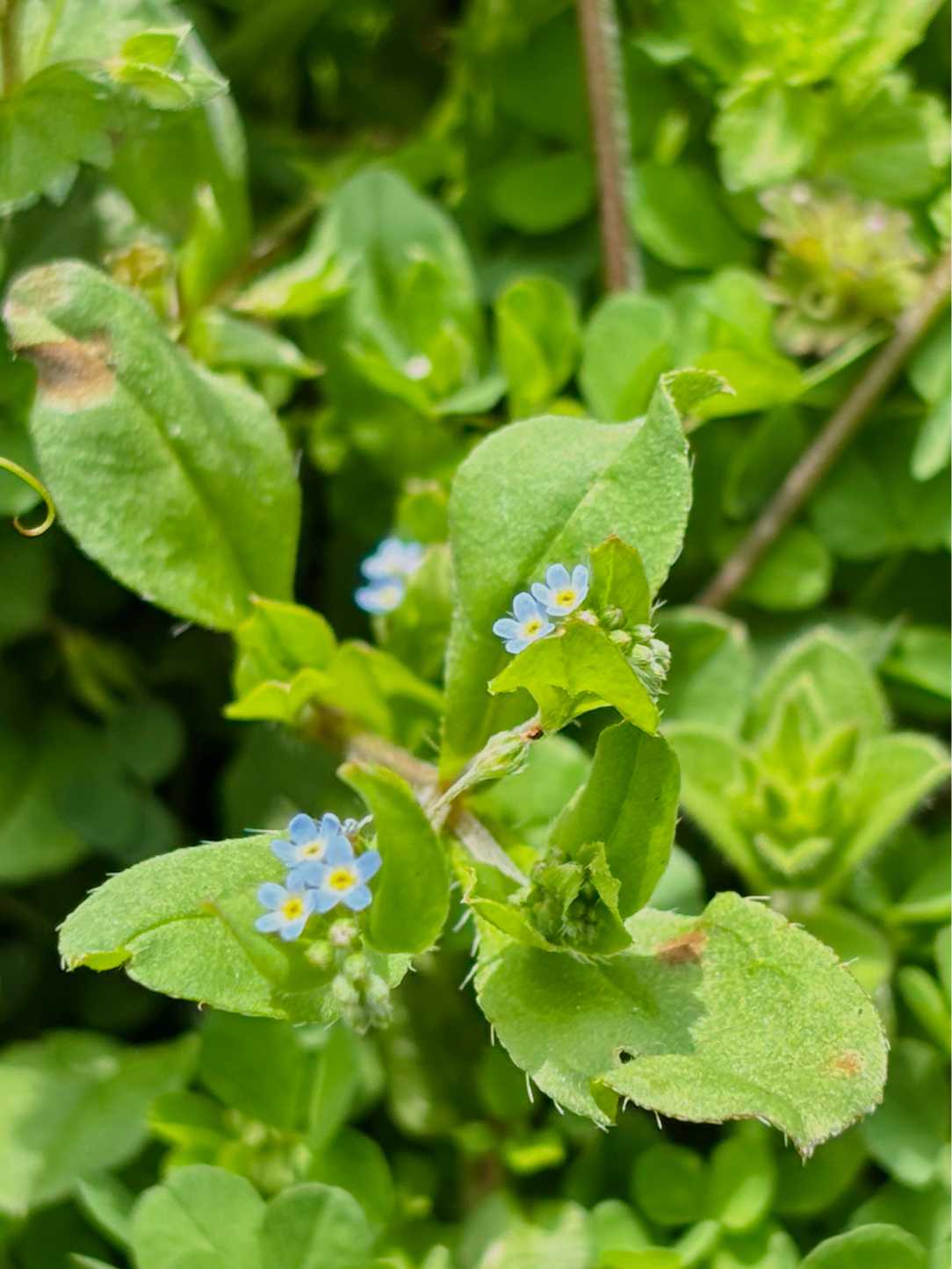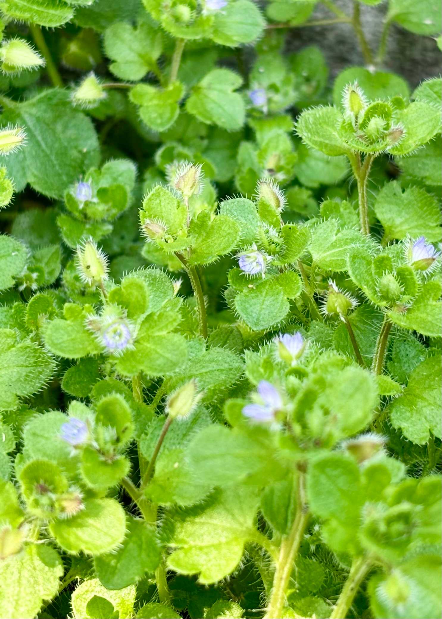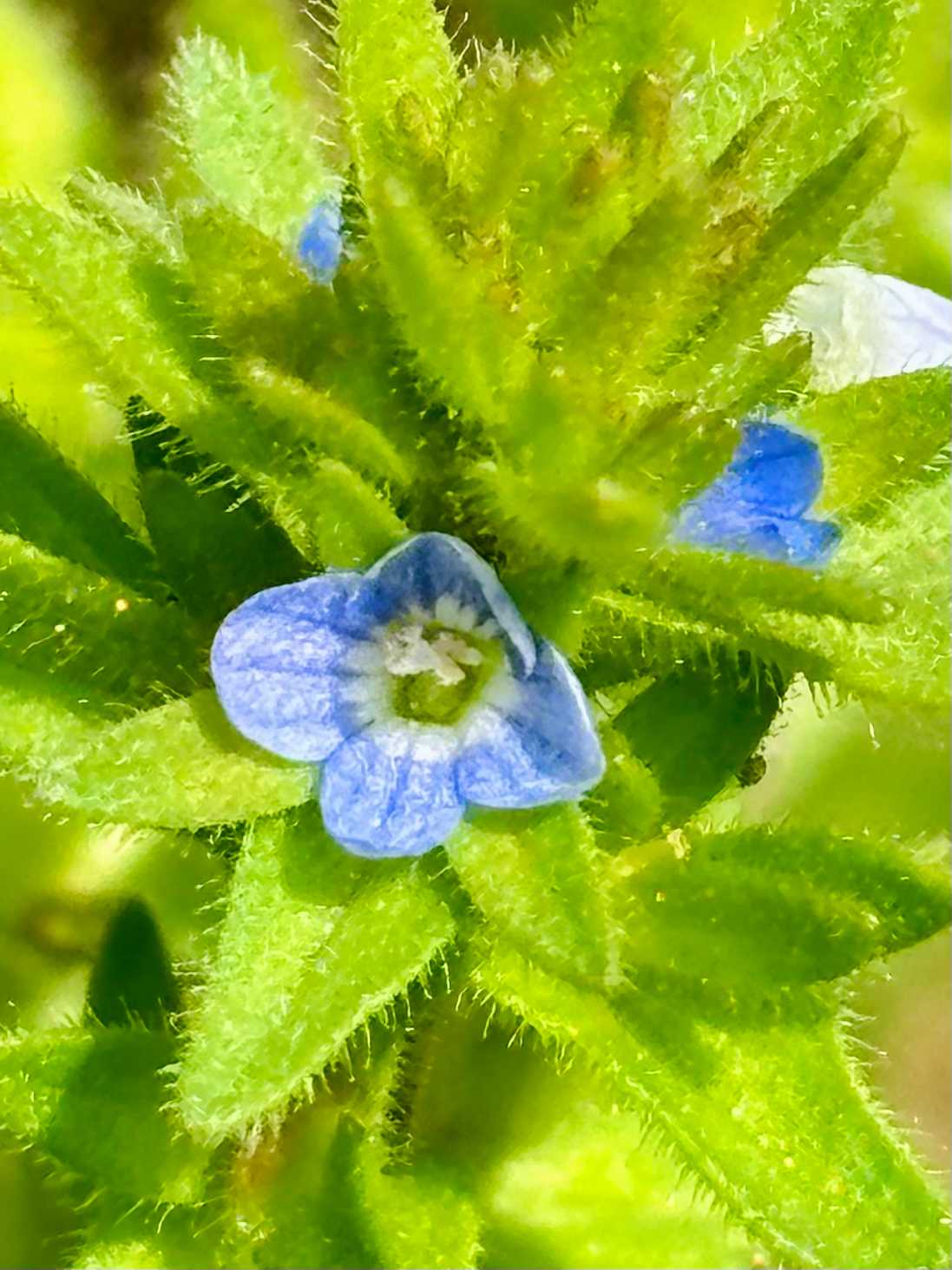 花の直径は約5mm。花冠は4裂し、淡青紫色~青紫色、イヌノフグリに似ています