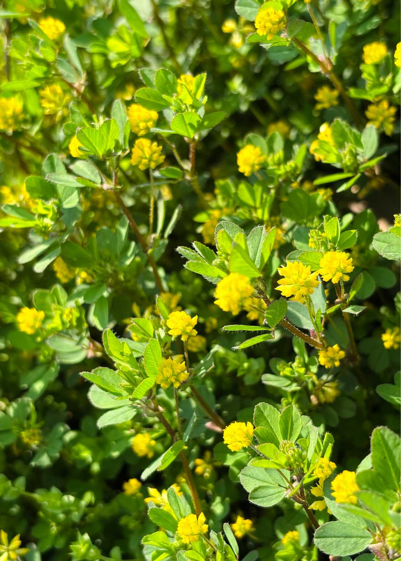 シロツメクサに似ているが全体に小さい☘コゴメツメクサ(小米詰草)、キバナツメクサ(黄花詰草)ともいう。