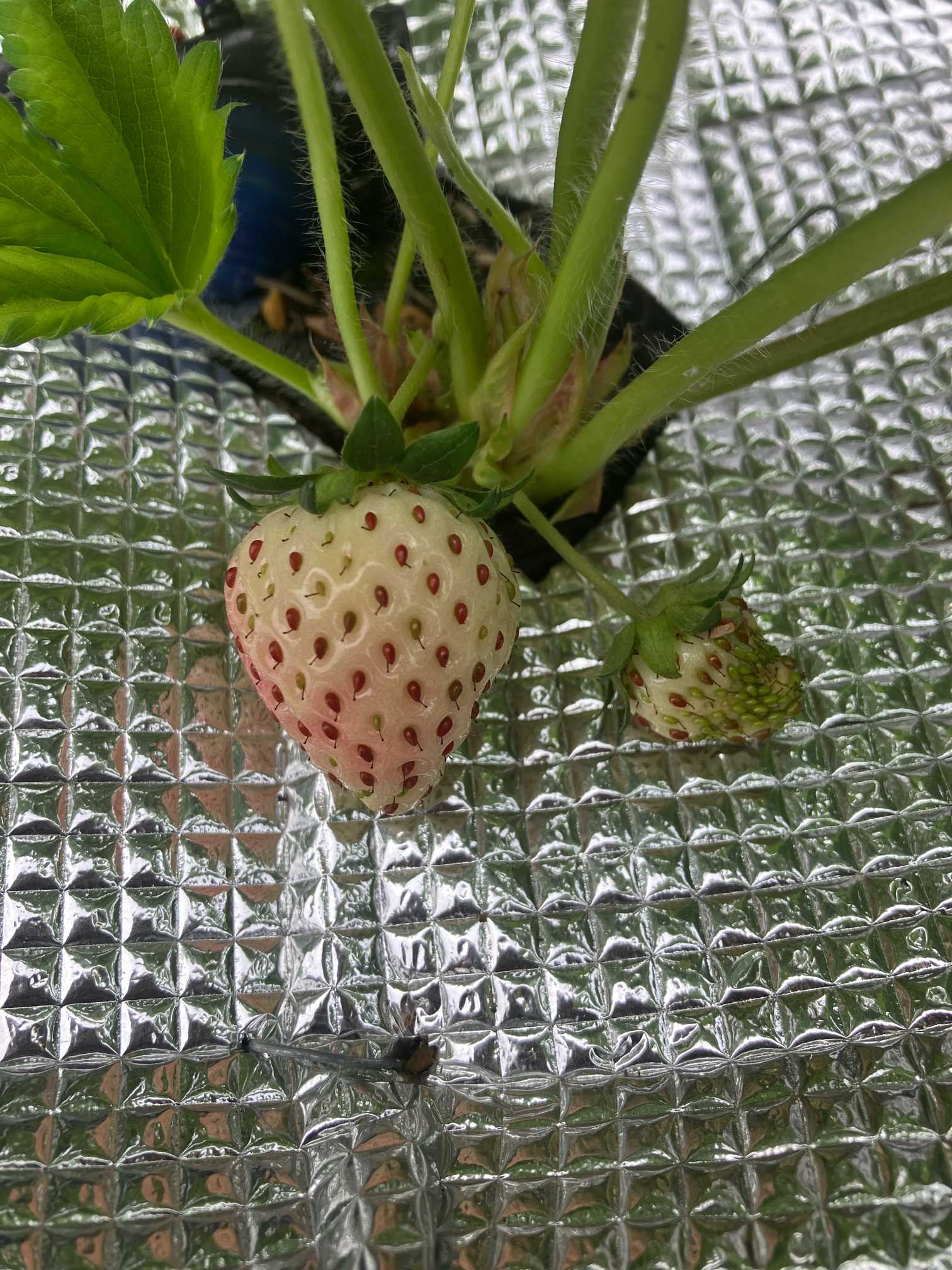 去年埋めたとちおとめのこどもが!!種は赤くなったのに白いです。
