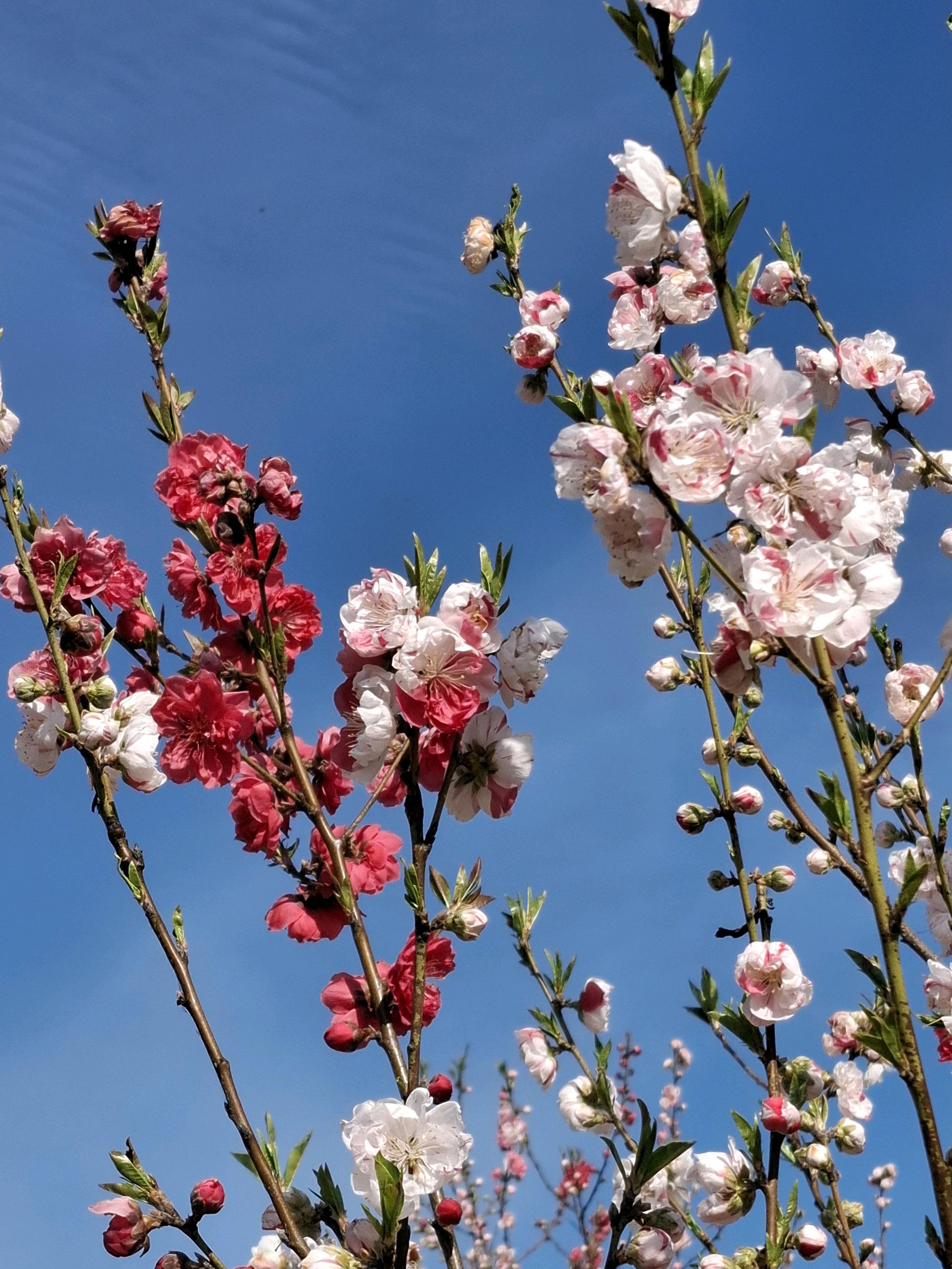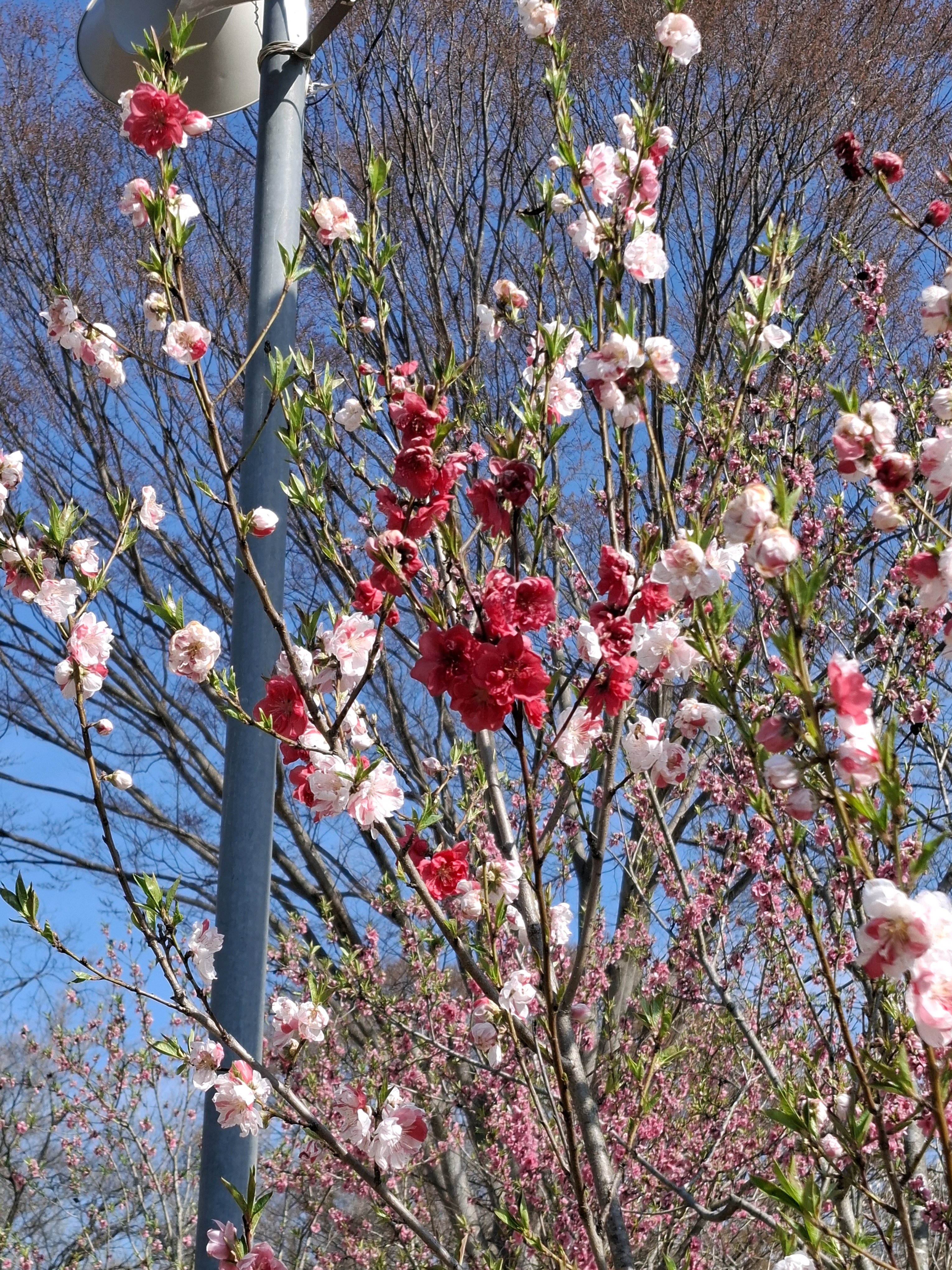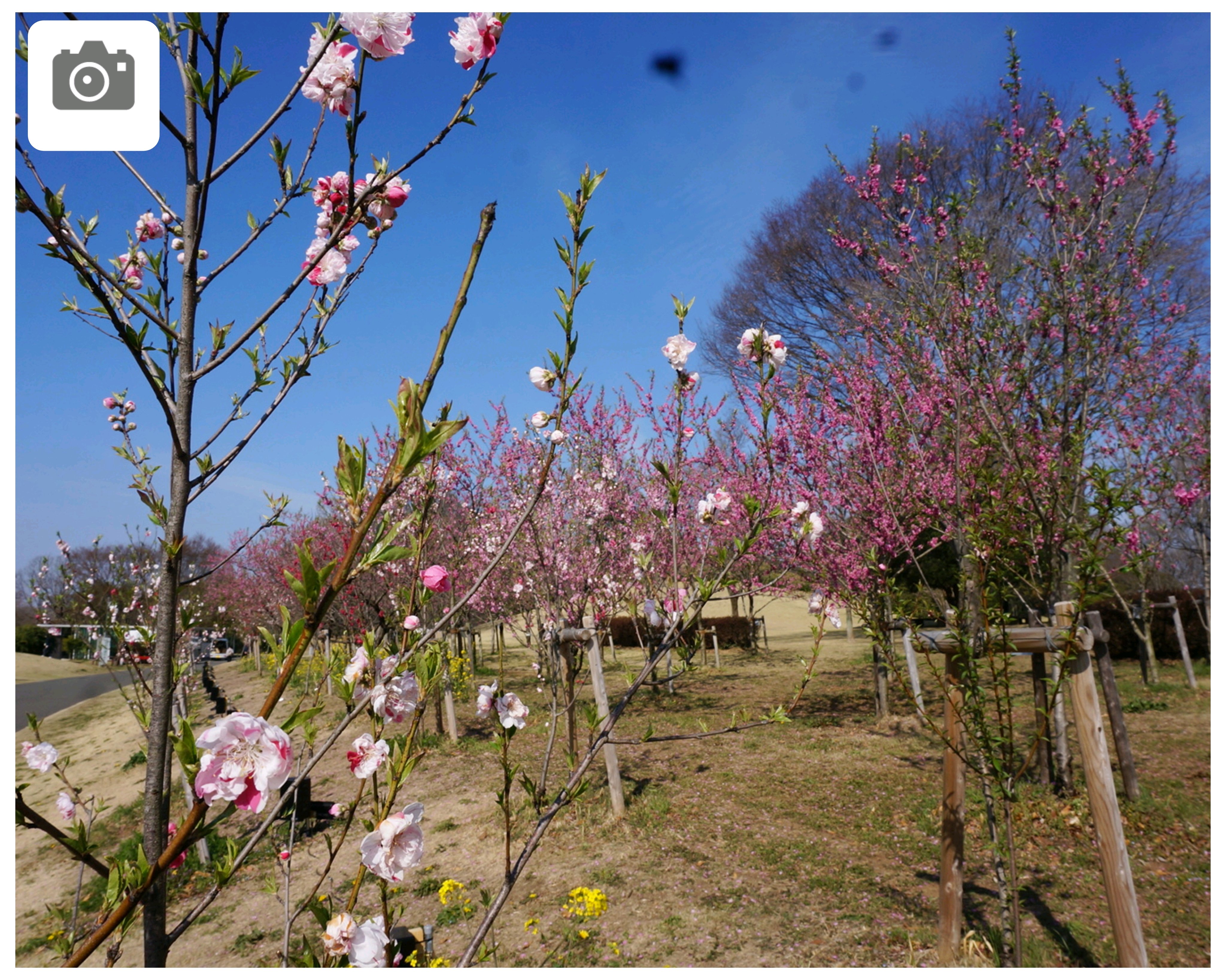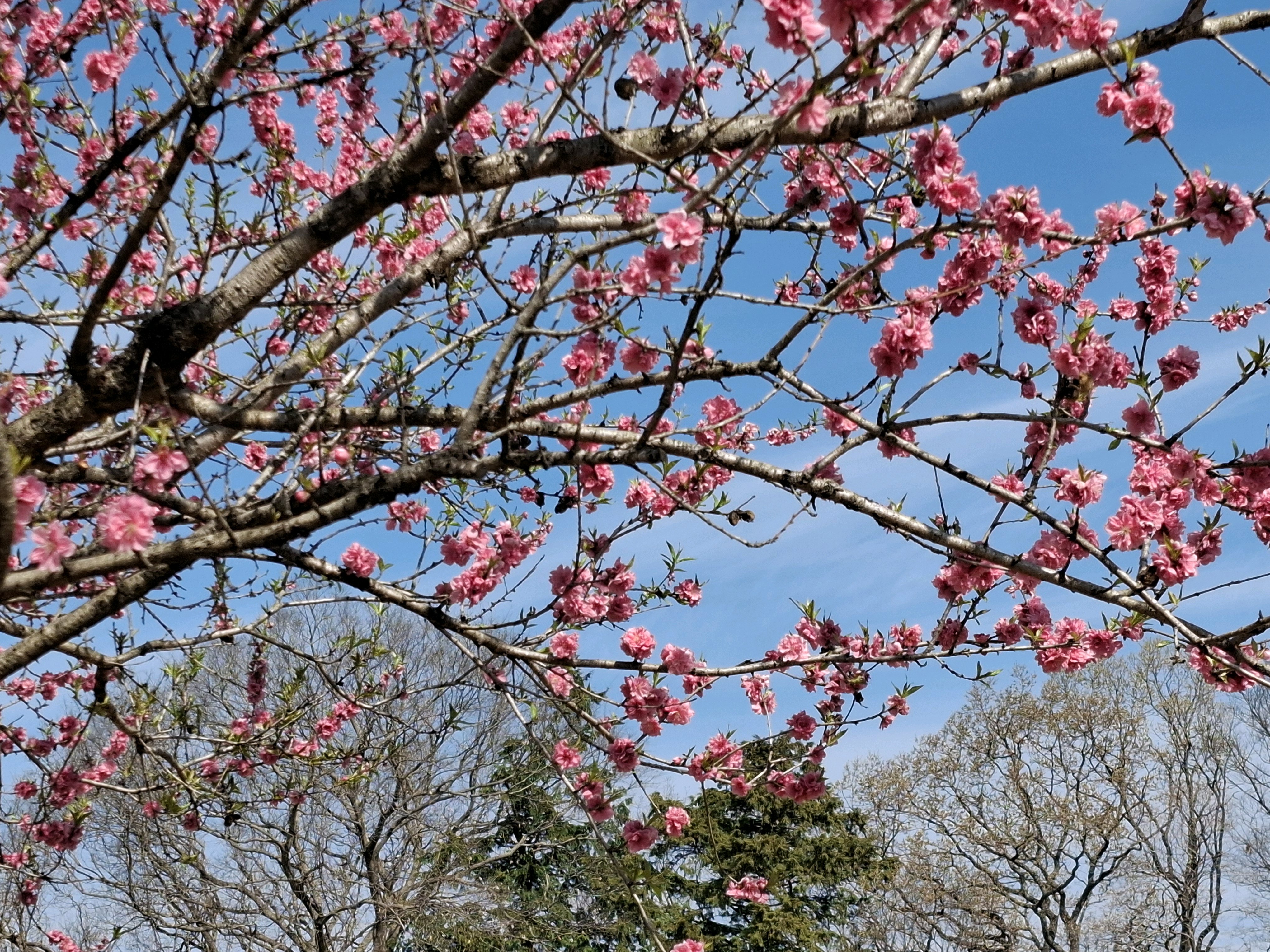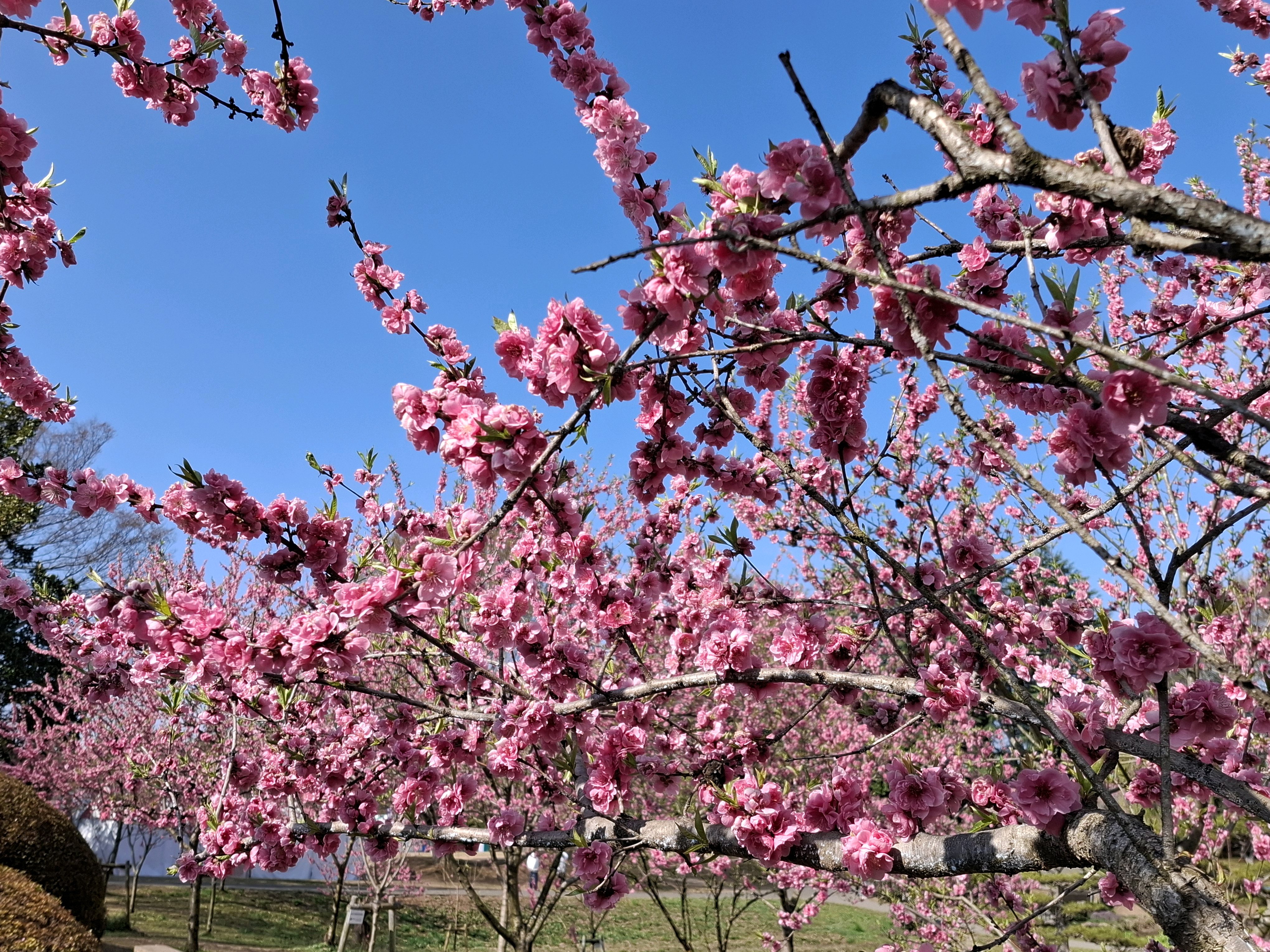 桃に菜の花、美しい✨。花の色も絞りや濃いピンク~白っぽいものまで色々あって綺麗😍