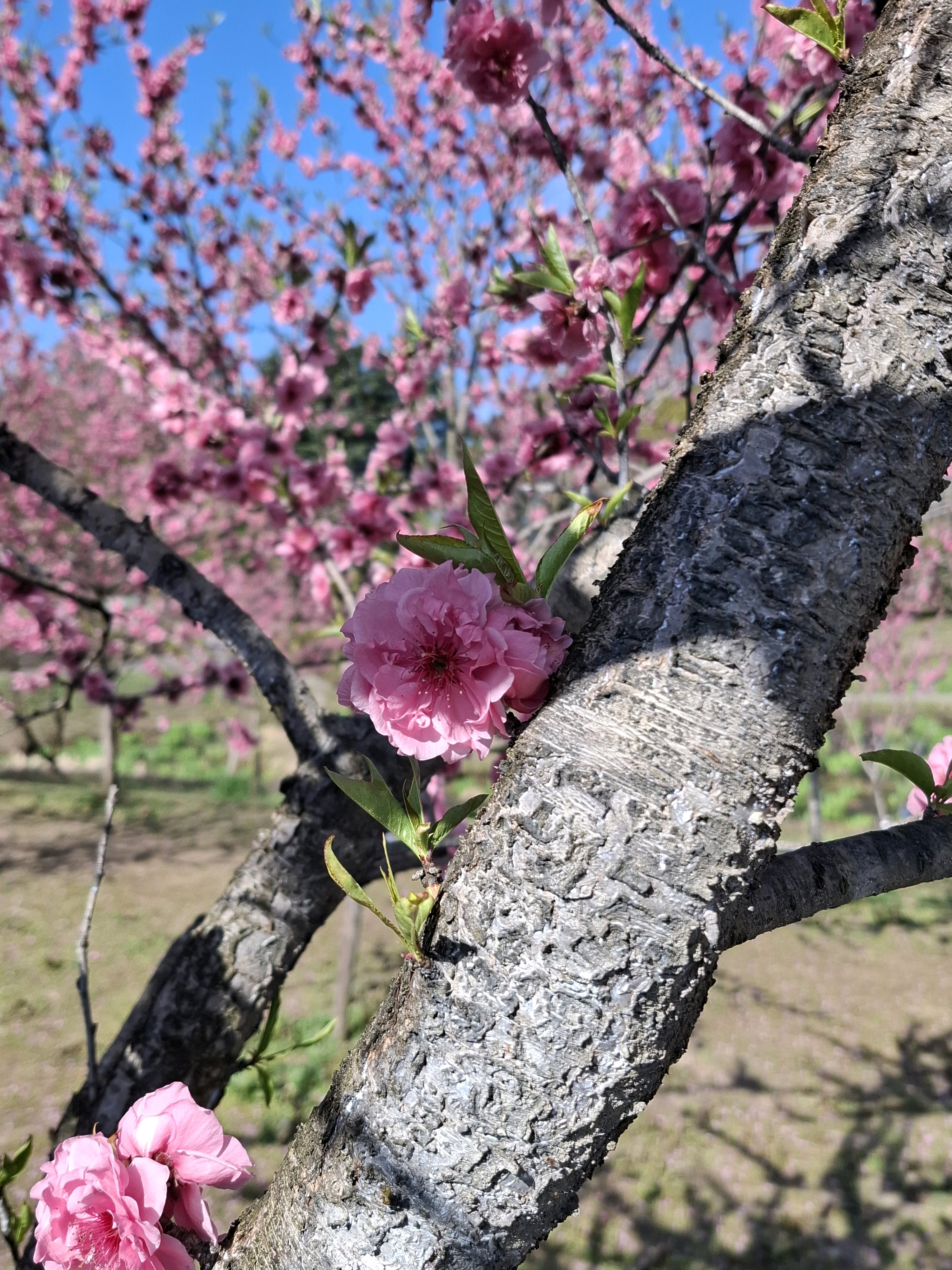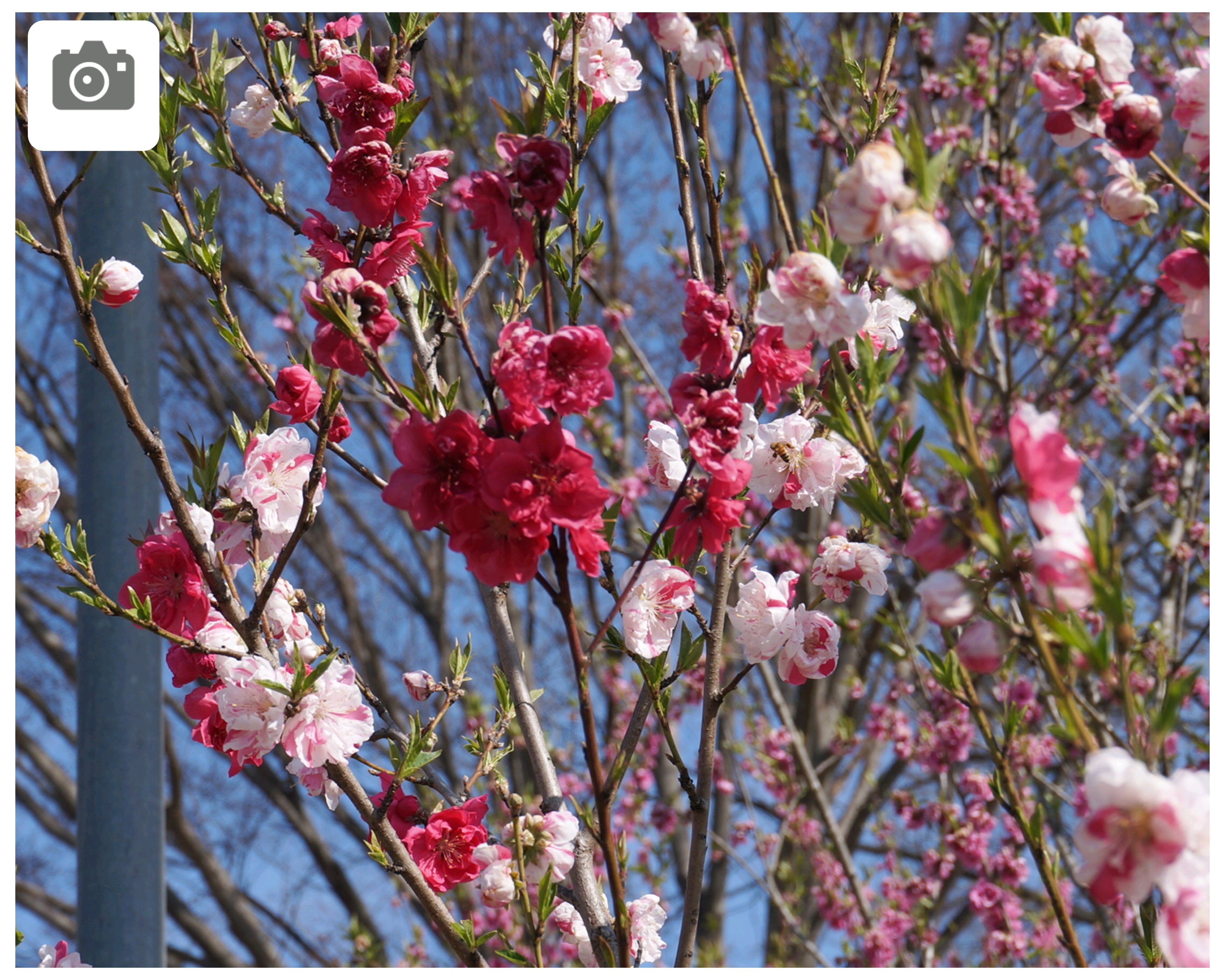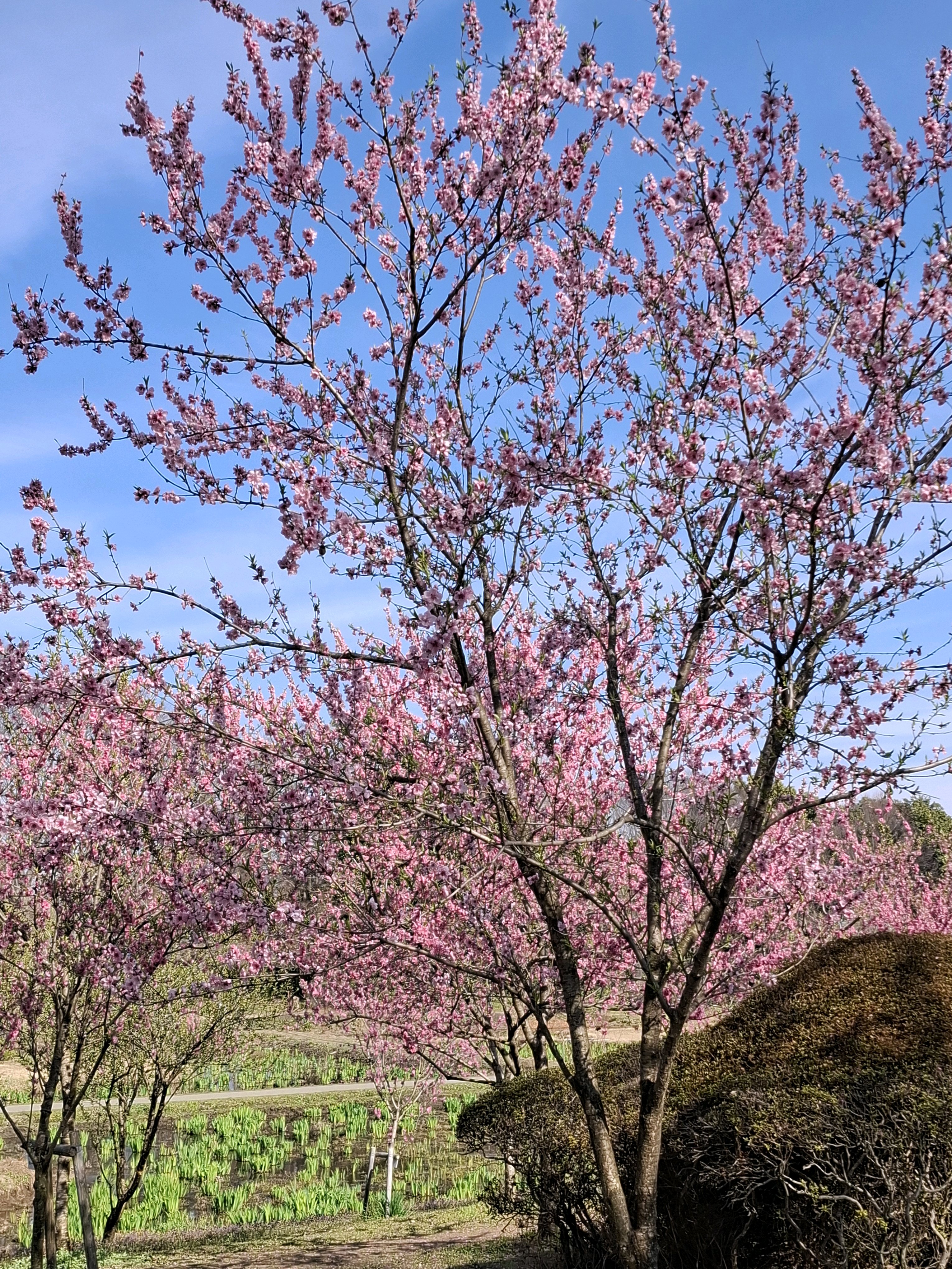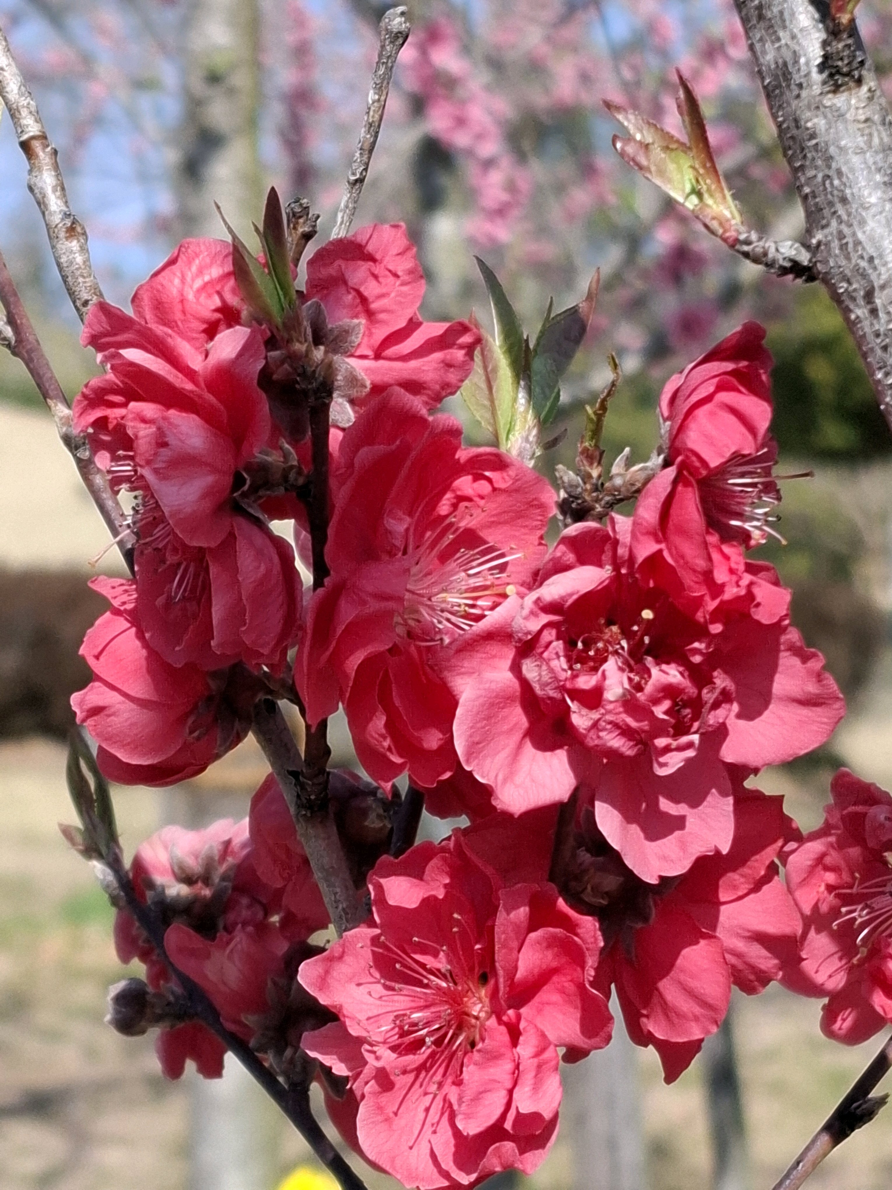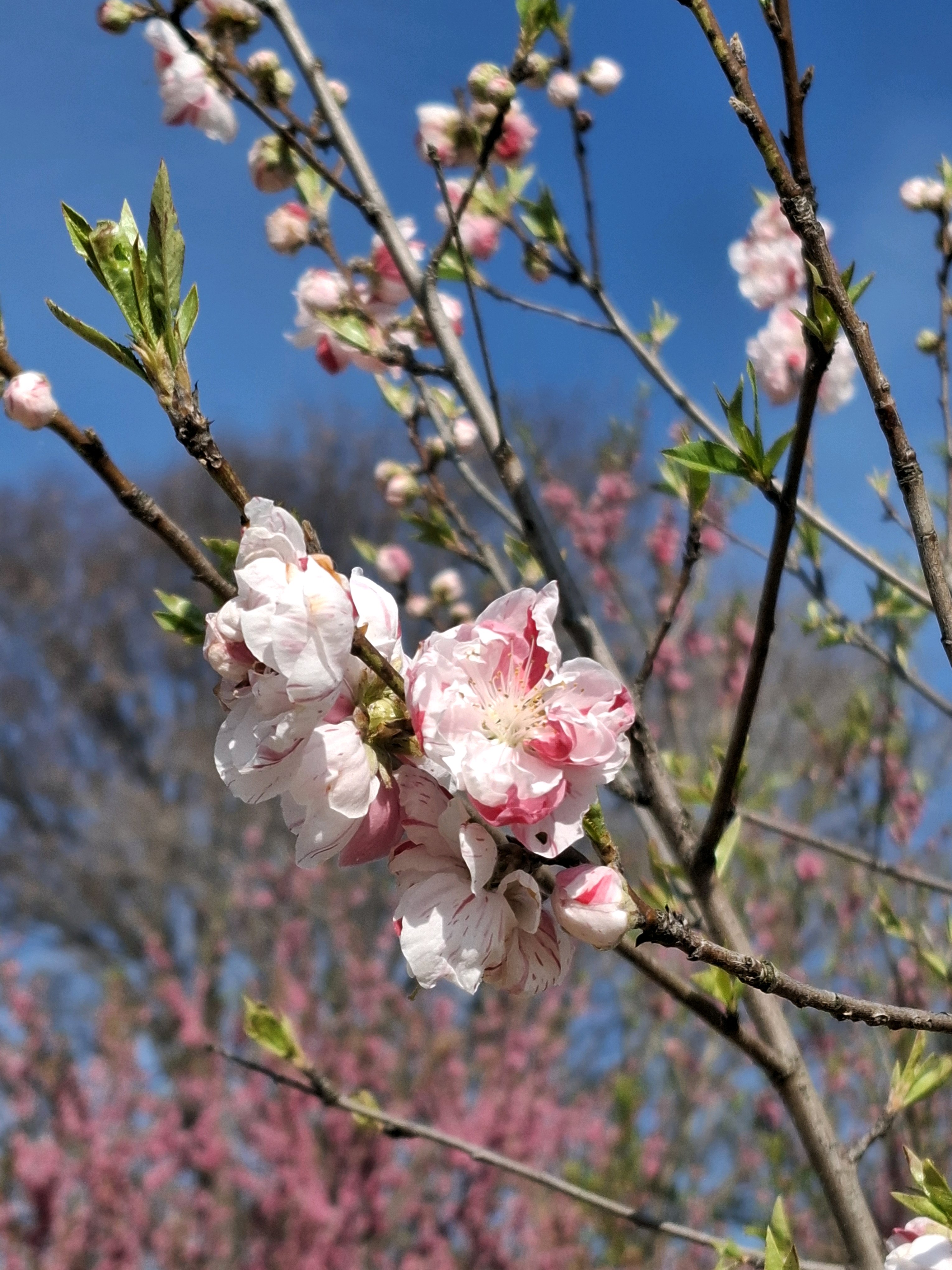 桃に菜の花、美しい✨。花の色も絞りや濃いピンク~白っぽいものまで色々あって綺麗😍