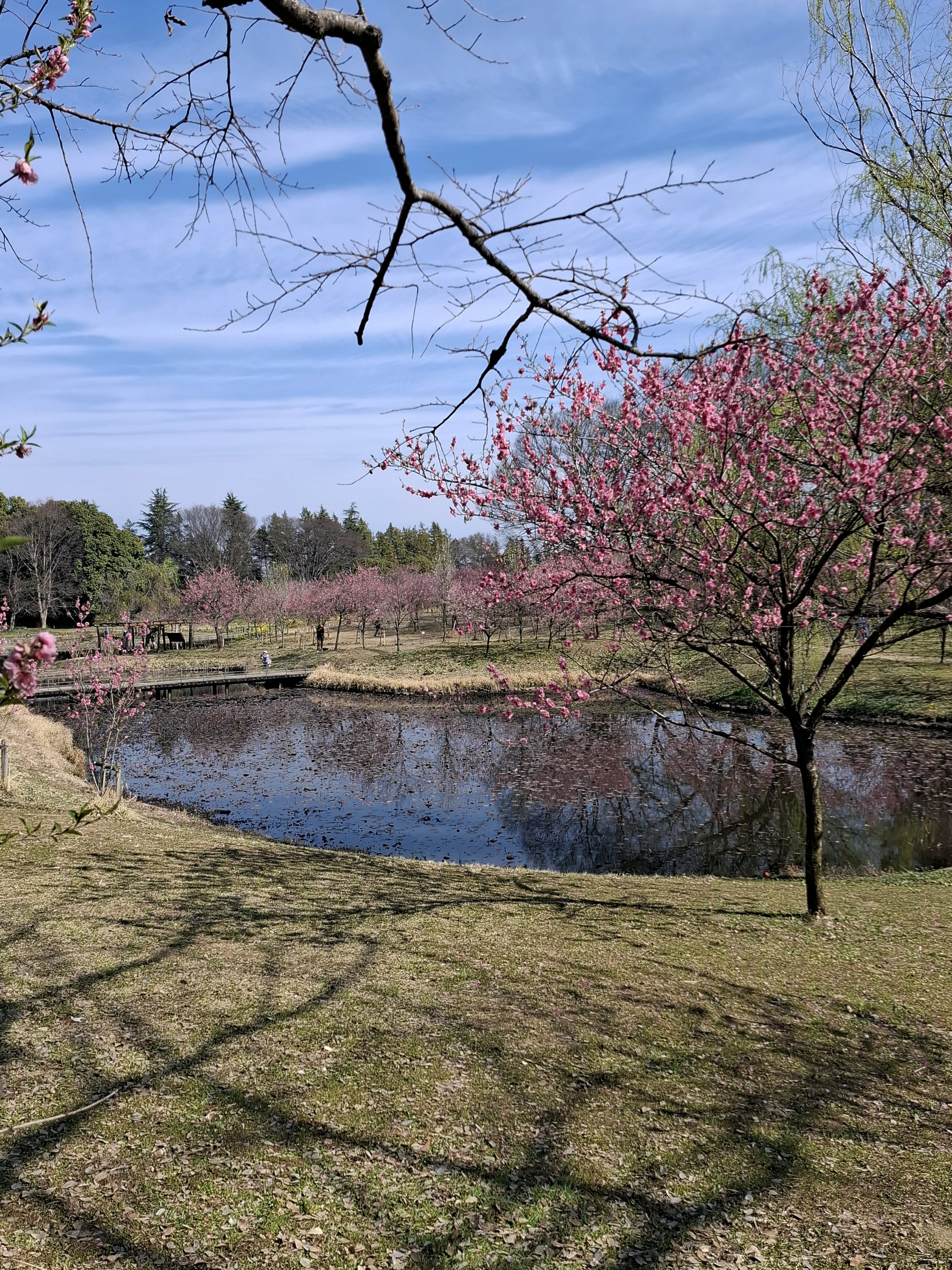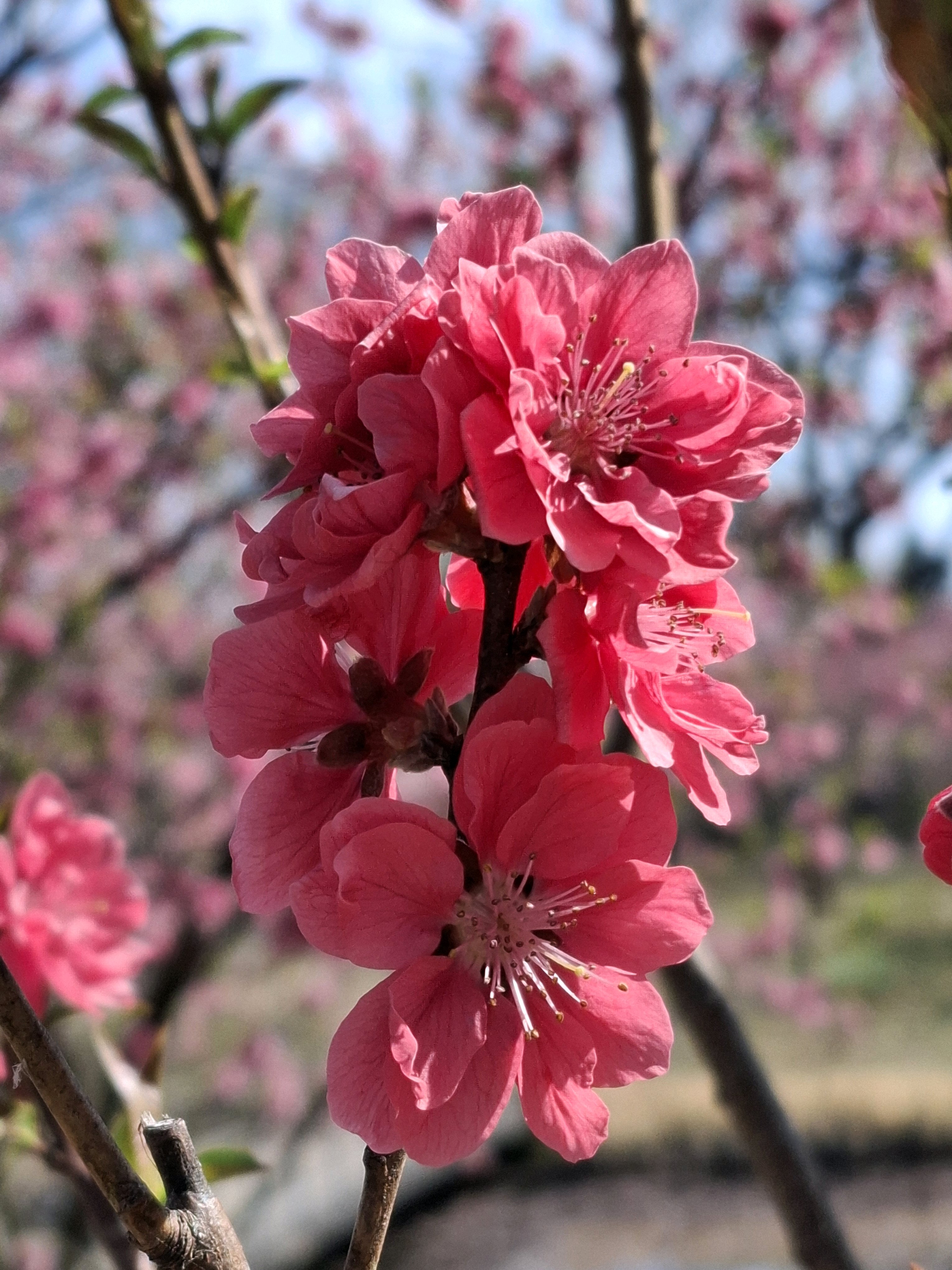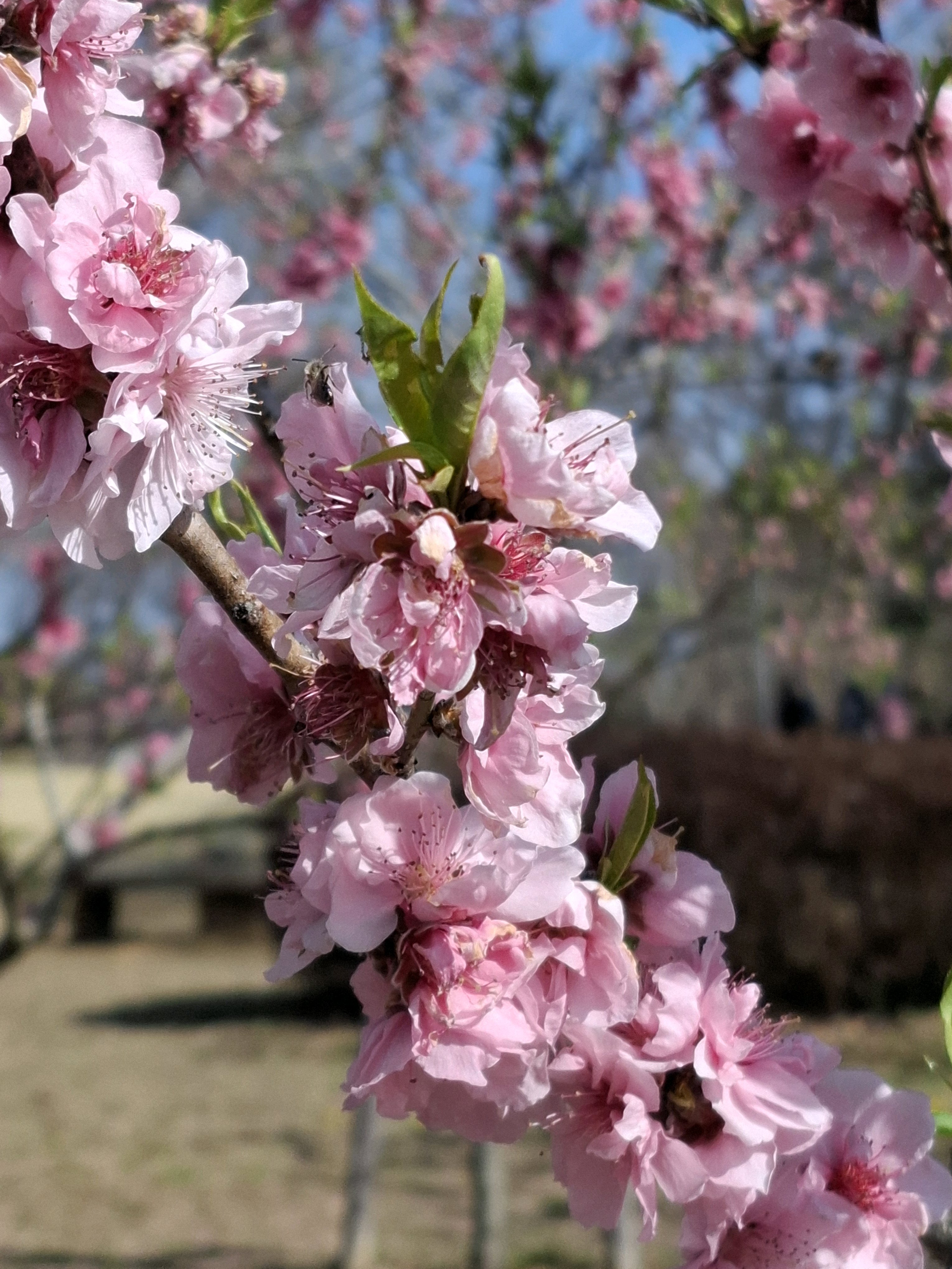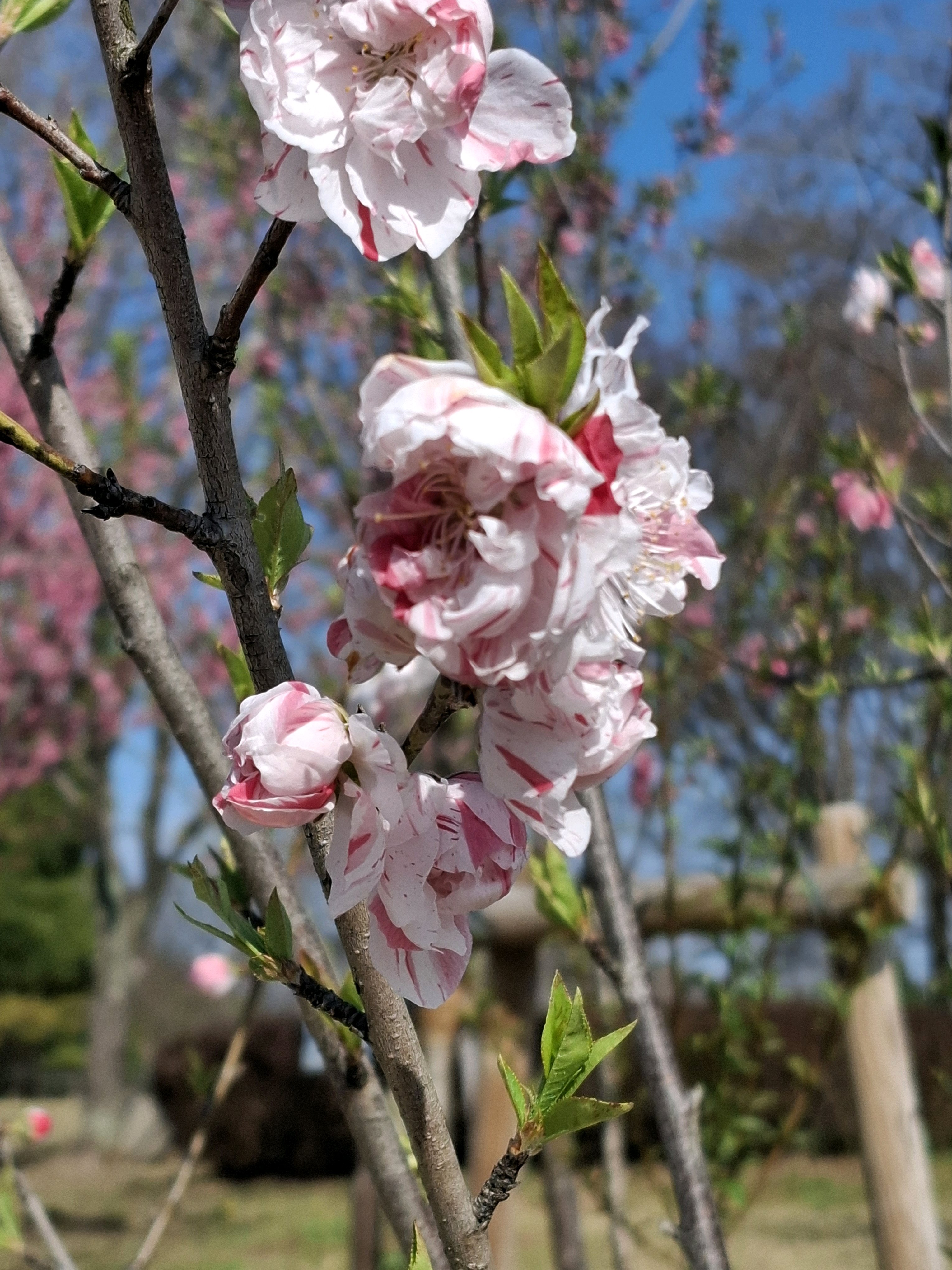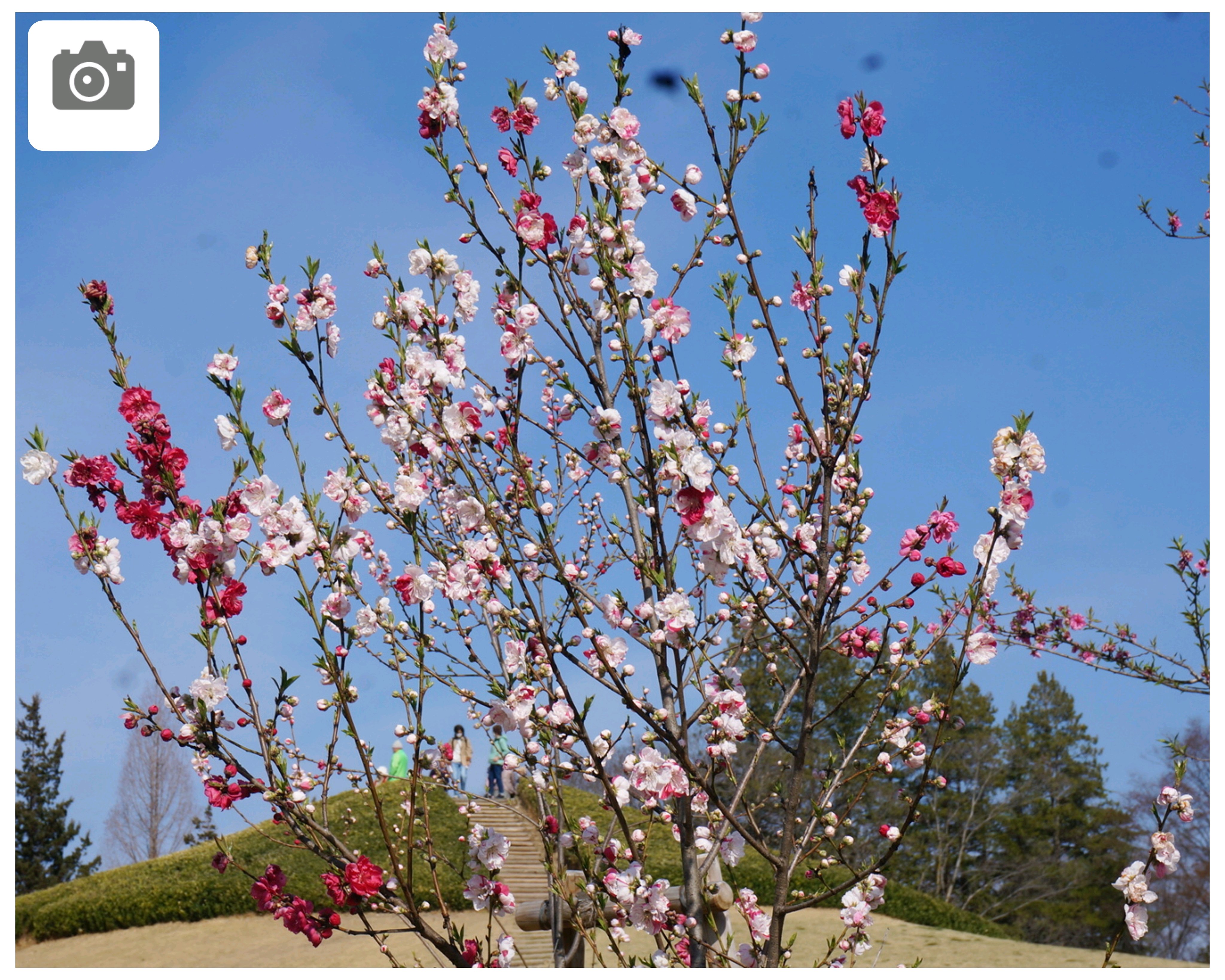 桃に菜の花、美しい✨。花の色も絞りや濃いピンク~白っぽいものまで色々あって綺麗😍