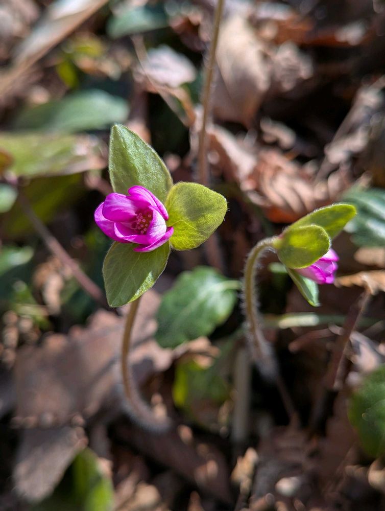 カタクリも咲き始めていました🩷💜可愛い形のお花は見当たらなくて〜残念ですが今年最初のカタクリです🤭