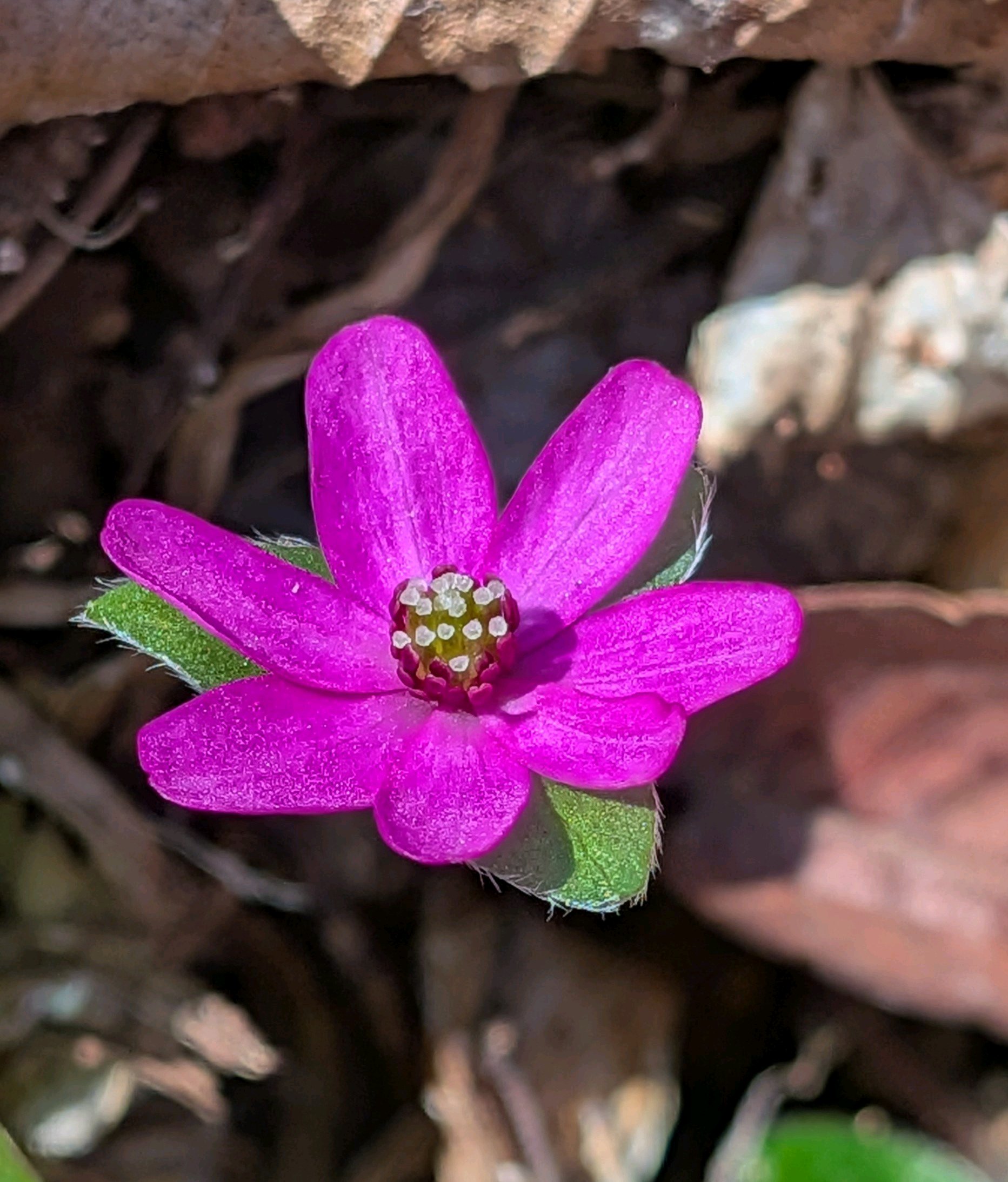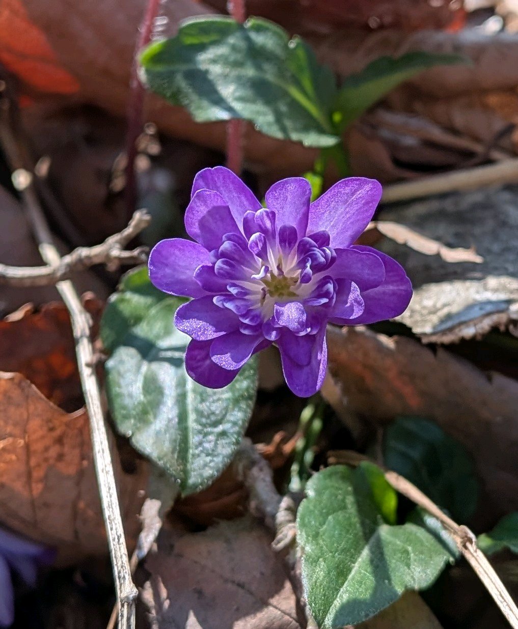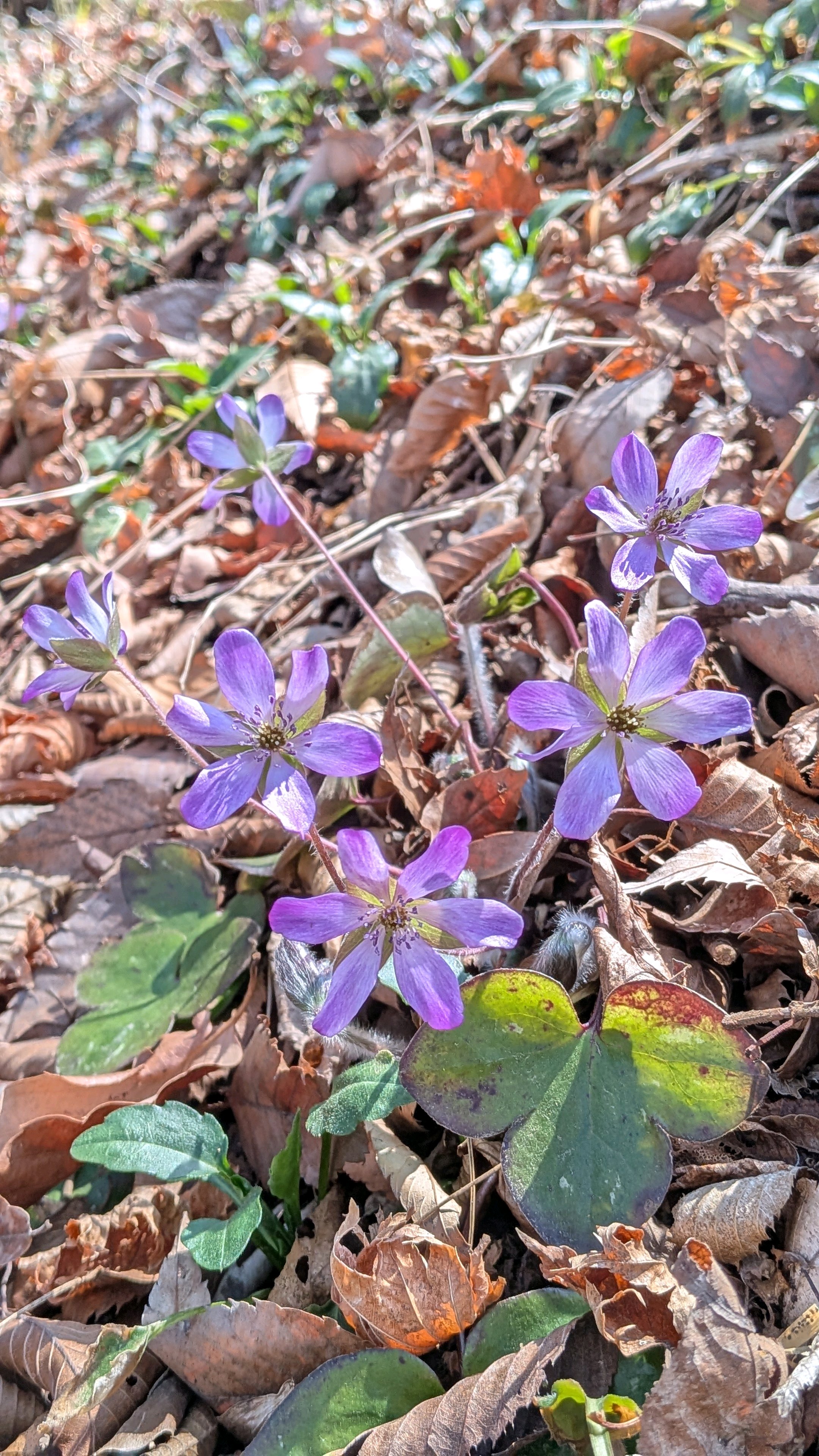 雪割草(ユキワリソウ)が顔を出していました(*˘︶˘*).。*♡