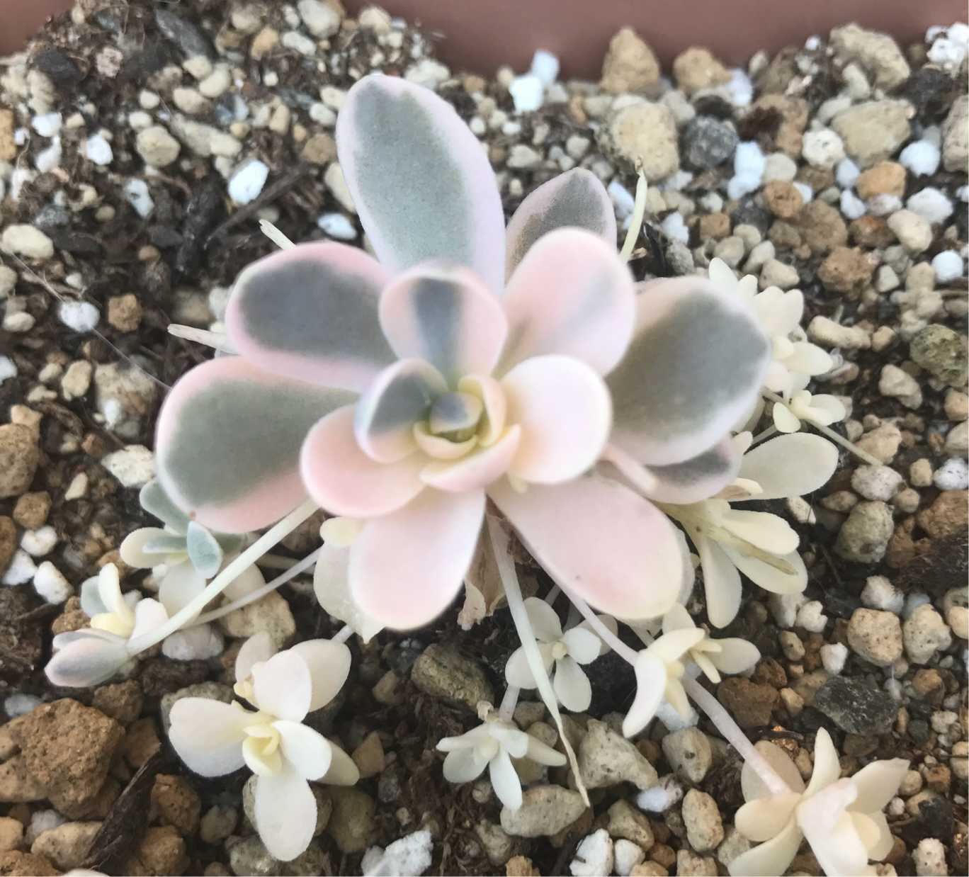 オロスタキス(子持ち蓮華)の斑入り系統の一つで、