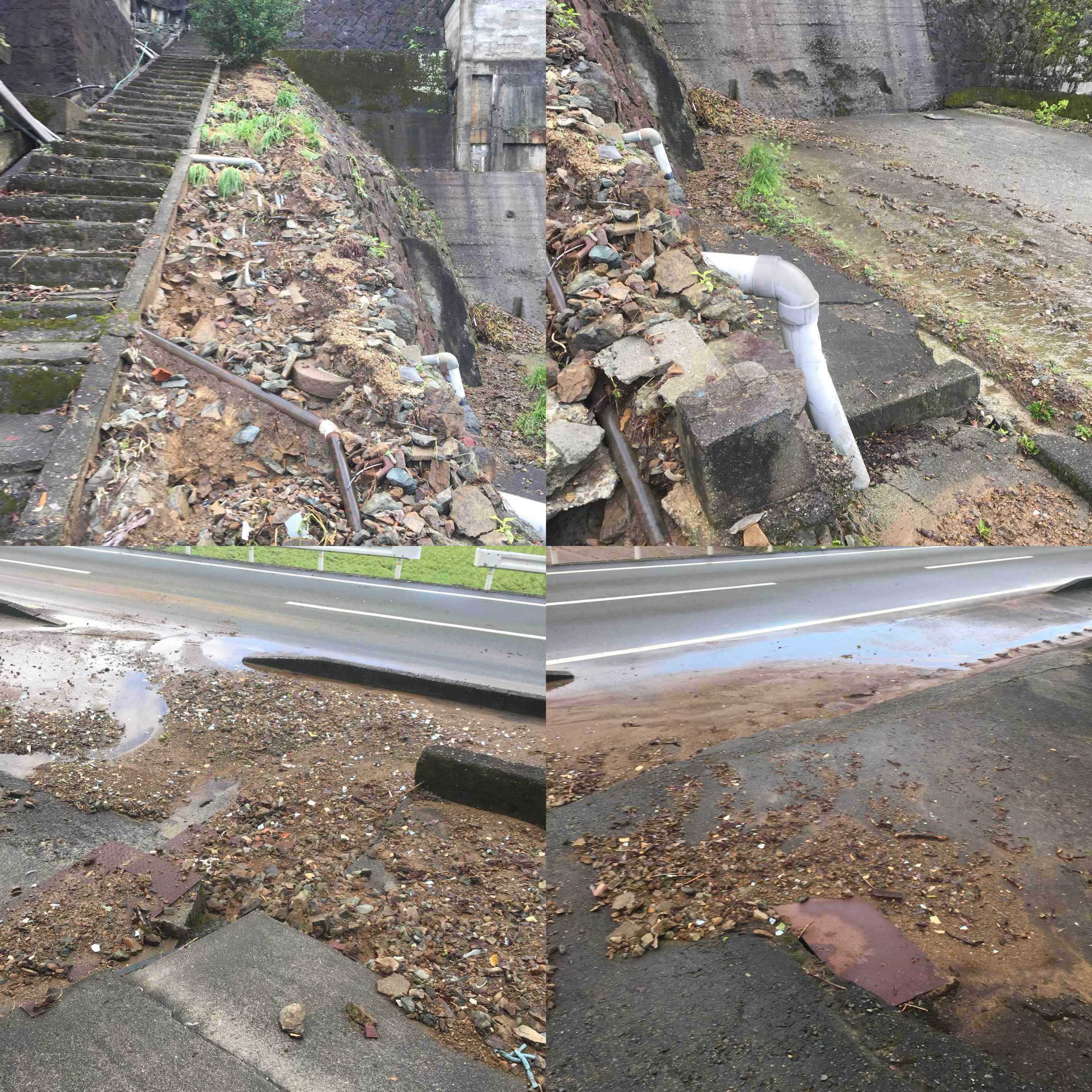 大雨で山から水が流れ込み