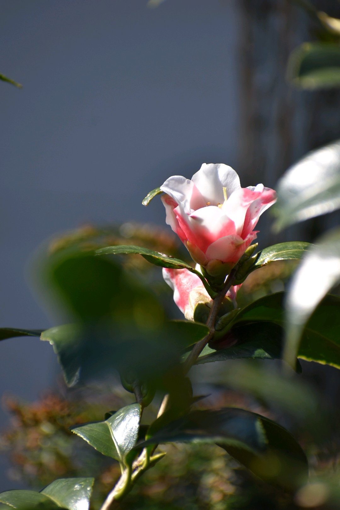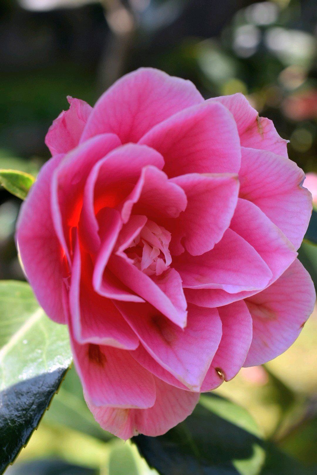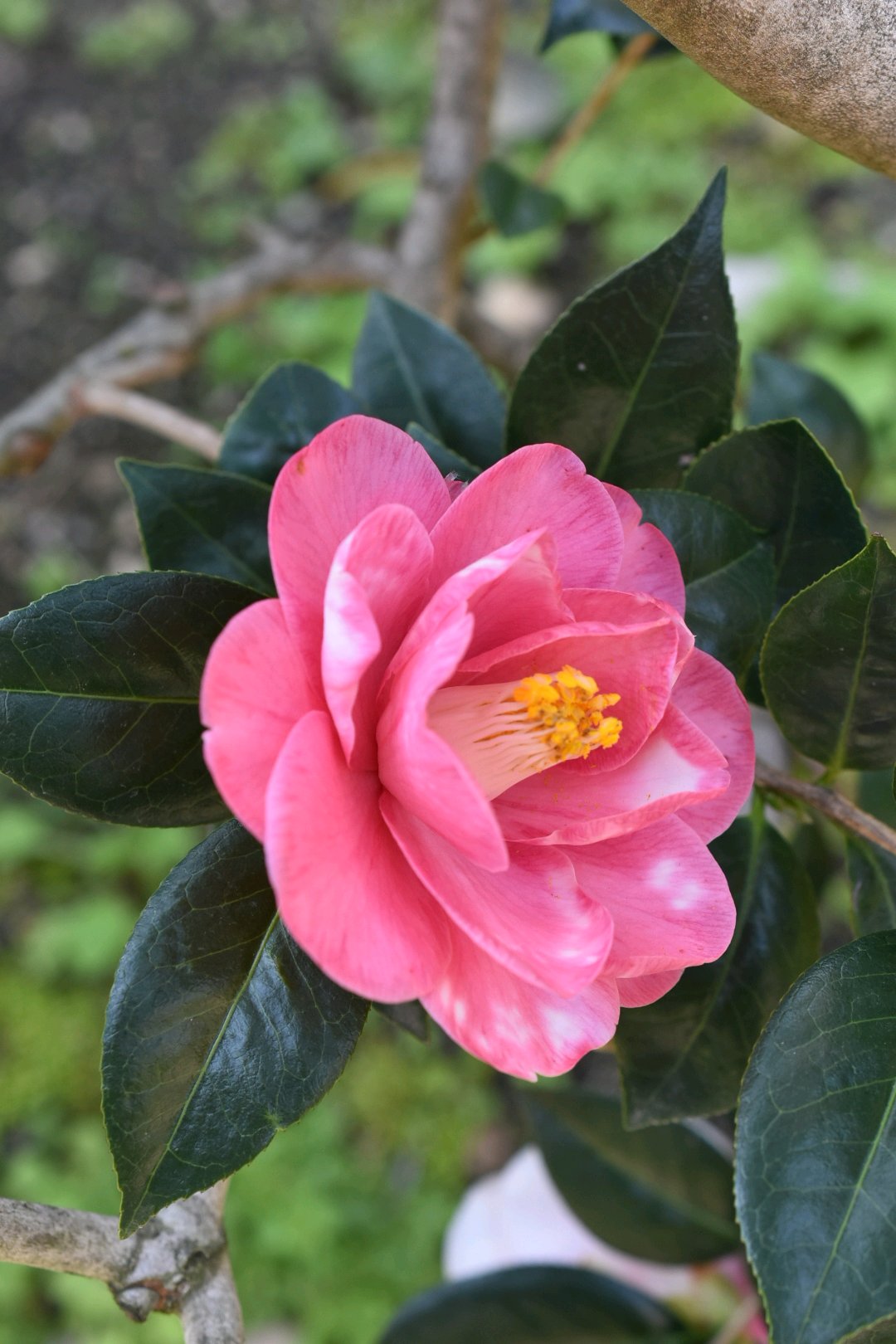 ピンクの斑入り椿‼️