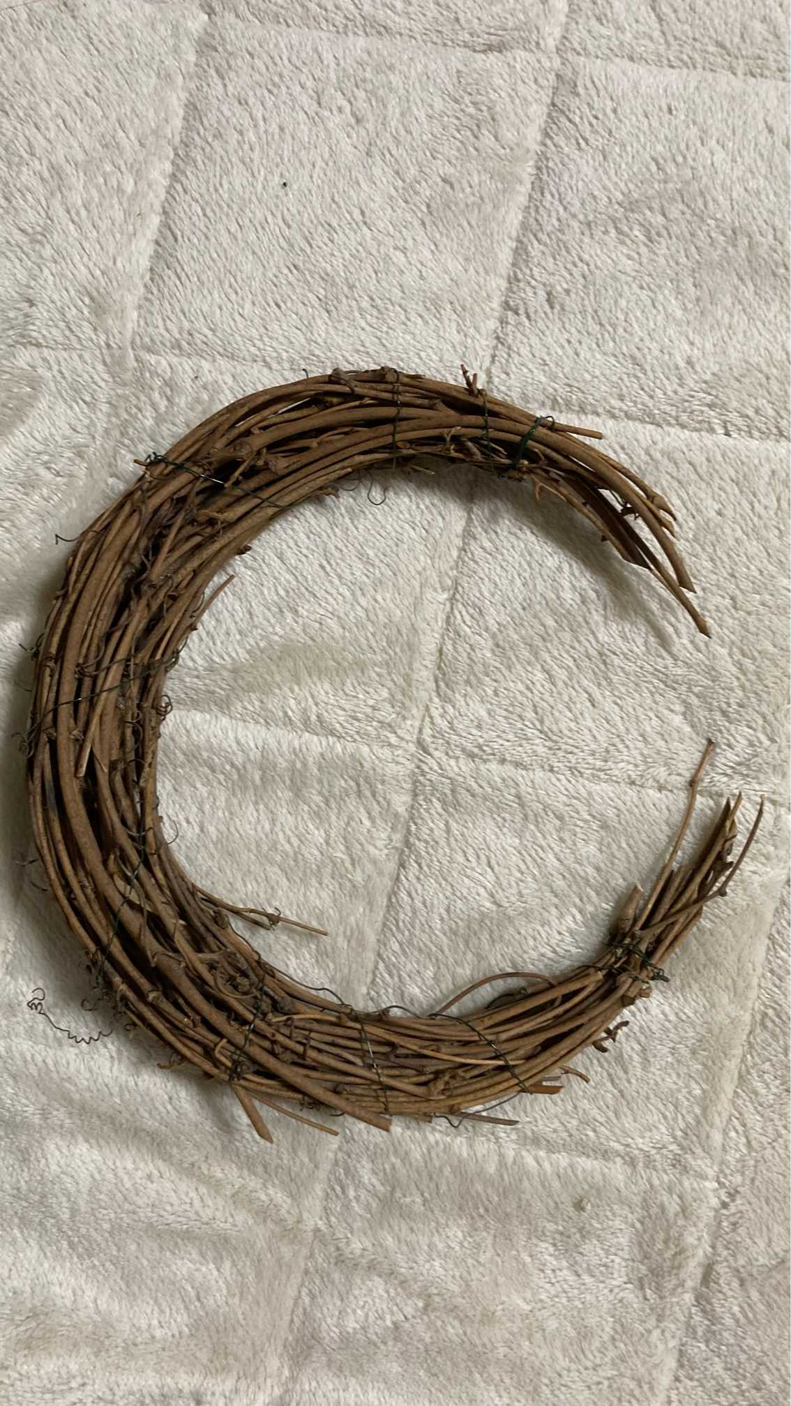 20センチのリース土台をバラして三日月に成形します。