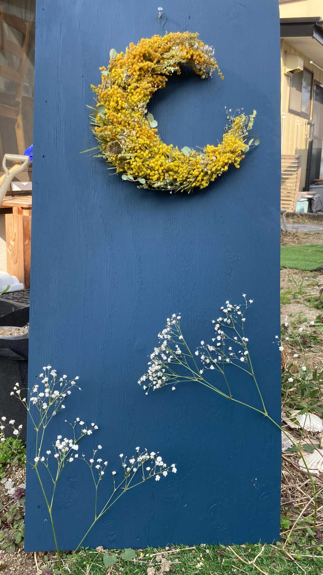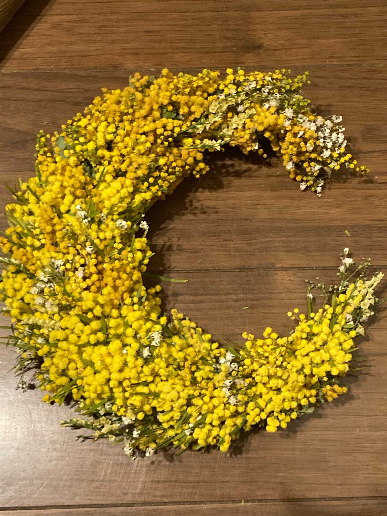 ミモザの三日月リースの動画を見て、作りたい気持ちが爆発!次に作る時に見返せるように覚書として