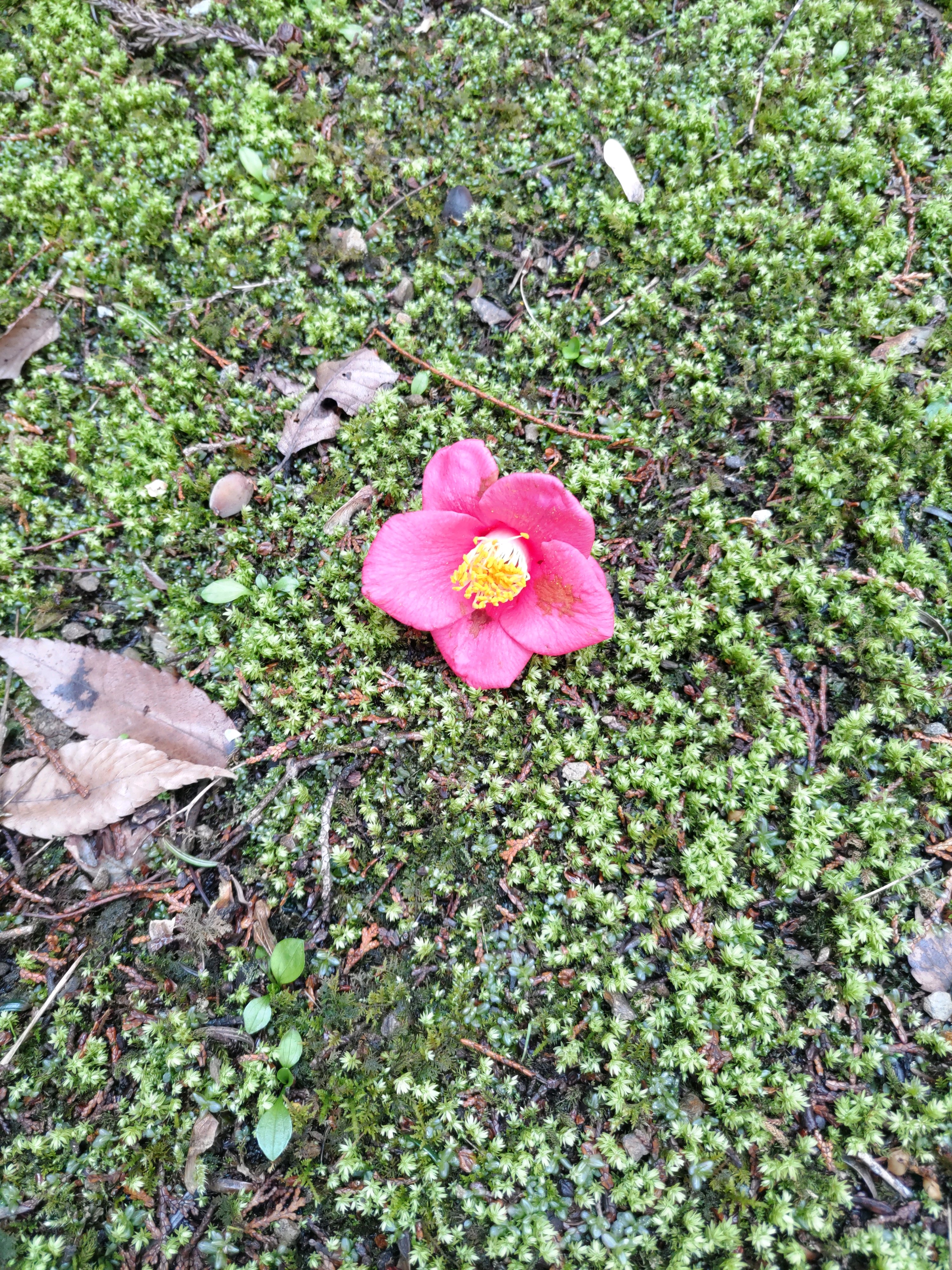 💚苔に落ちたツバキさん(∩︎´∀︎`)∩︎スンバラスィコントラスト♪
