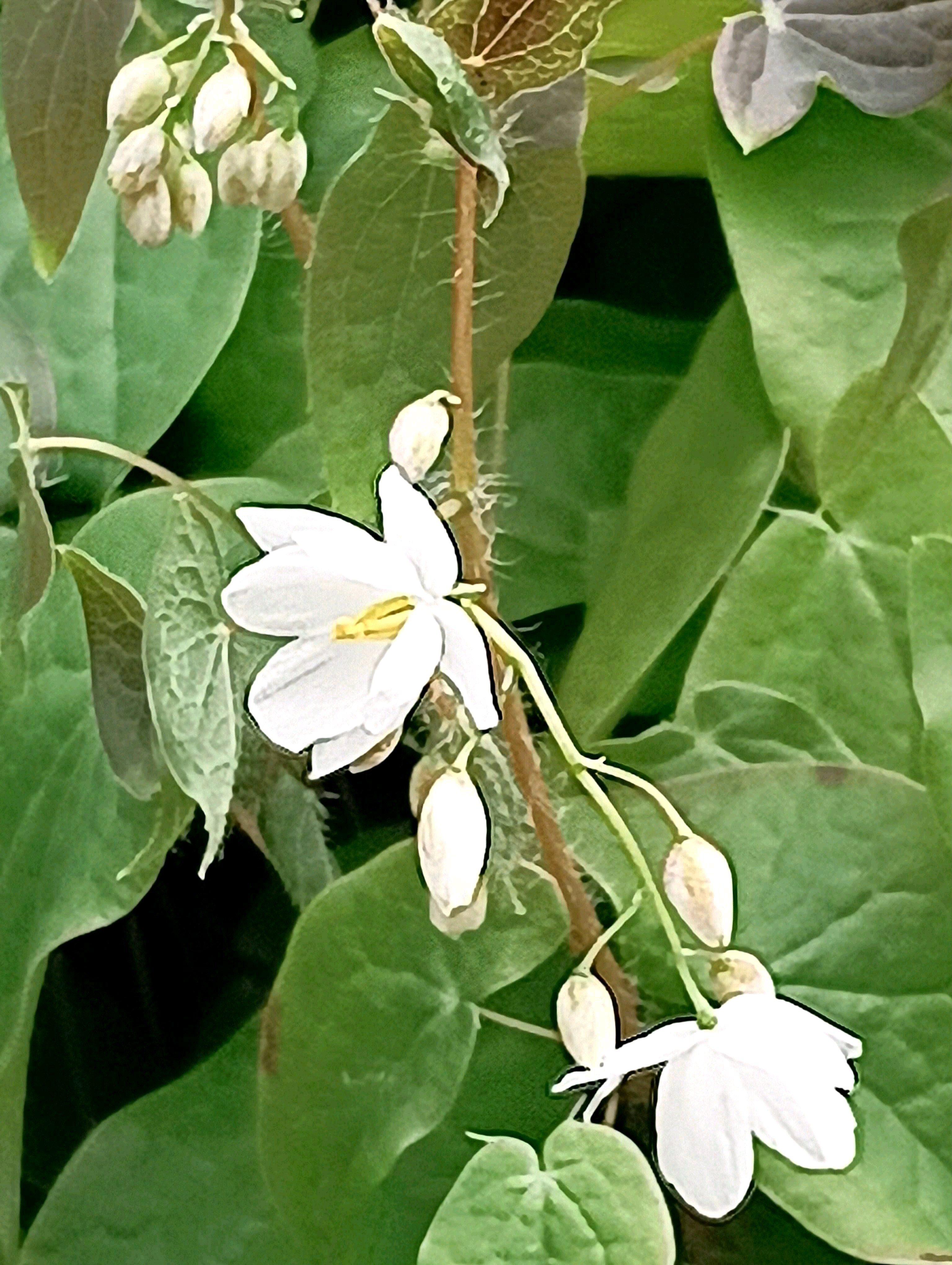 中国地方から四国、九州にかけて分布。花弁に距がなく、梅のような白い花を咲かせる。