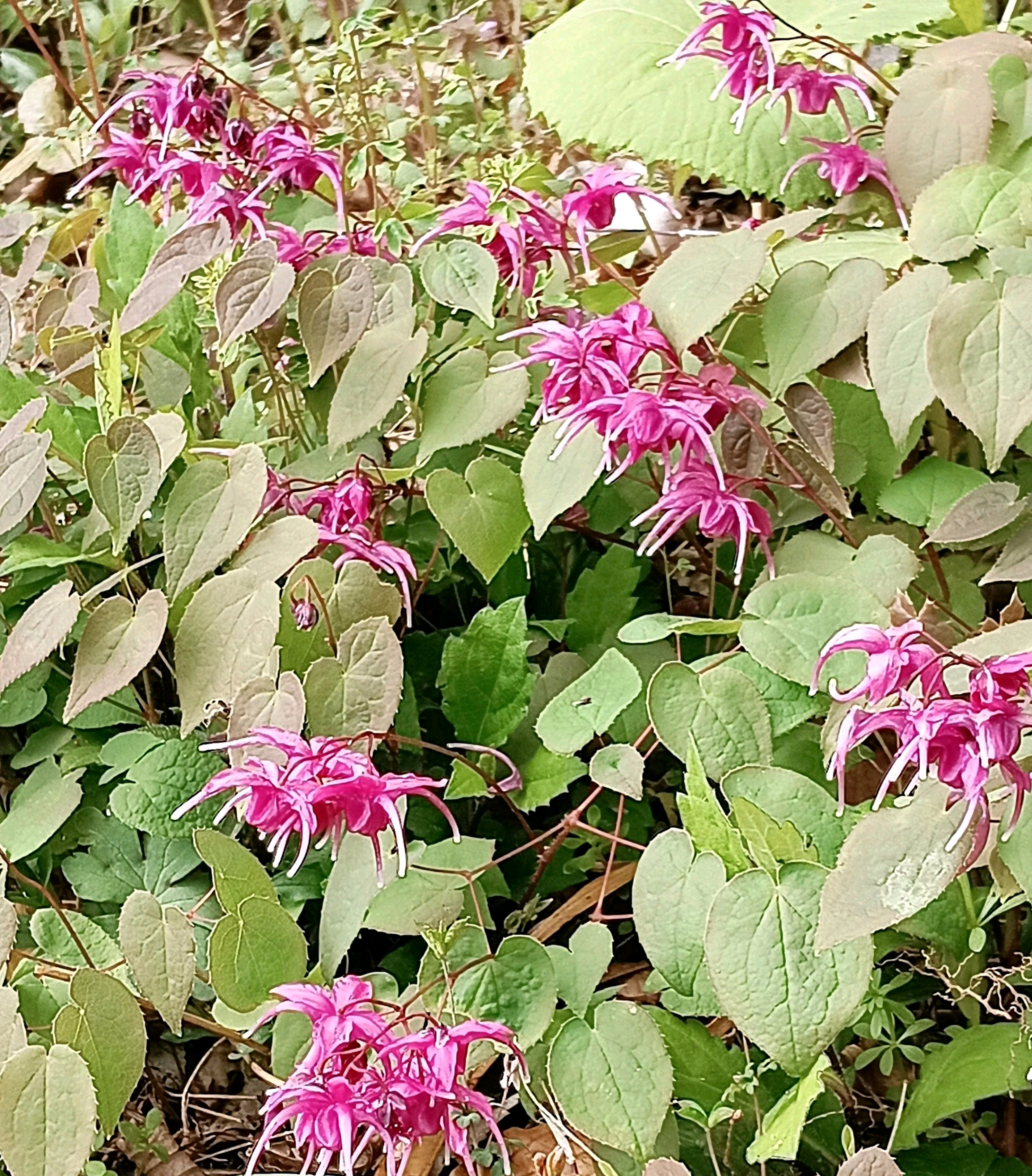 イカリソウは、漢字で「錨草」と書き、花の形が和船の錨に似ていることに由来する。花期は春(4 - 5月ごろ)40 cmほどの花茎の先に4 - 7個の吊り下がった花が下向きに咲きます。