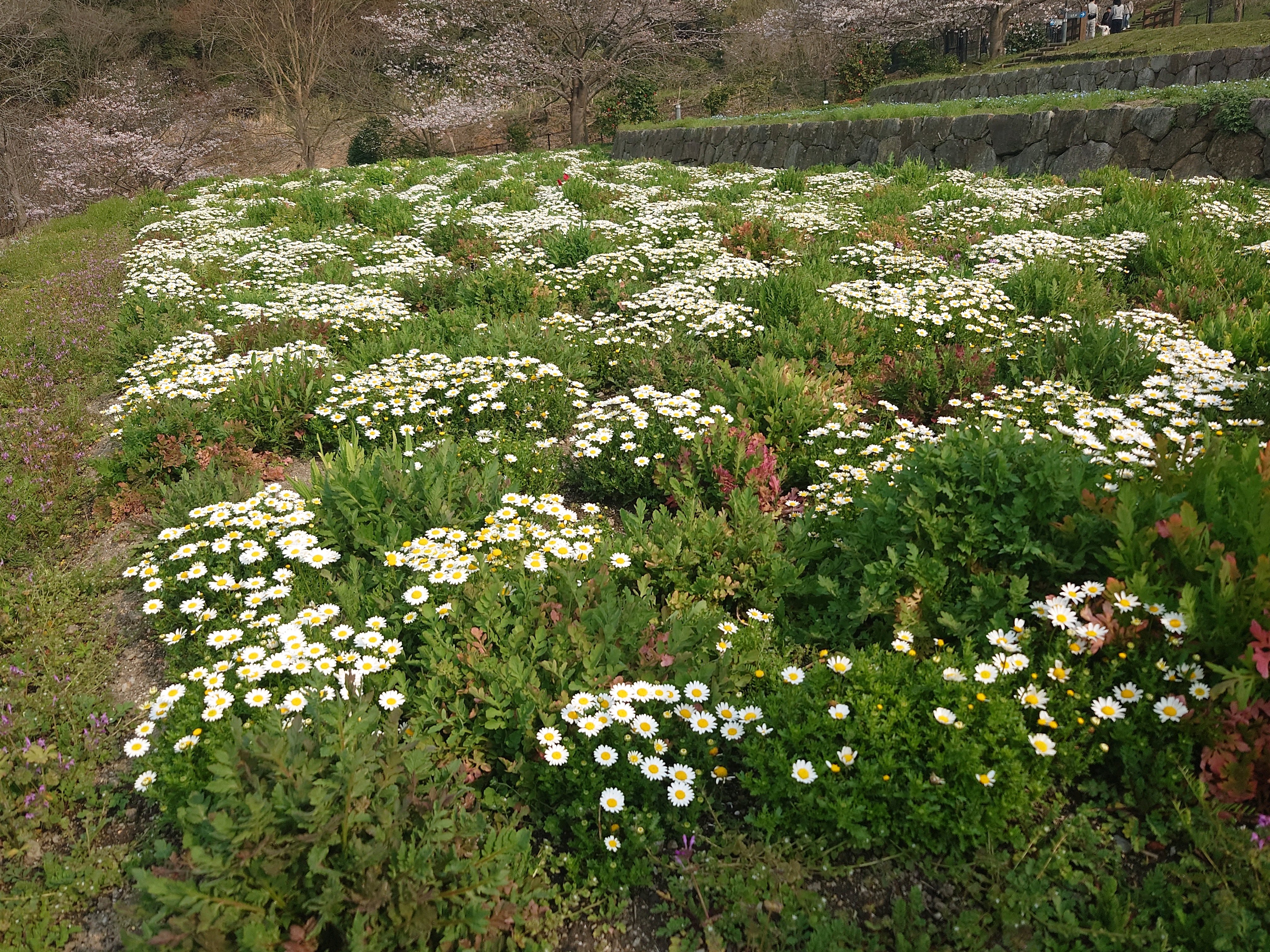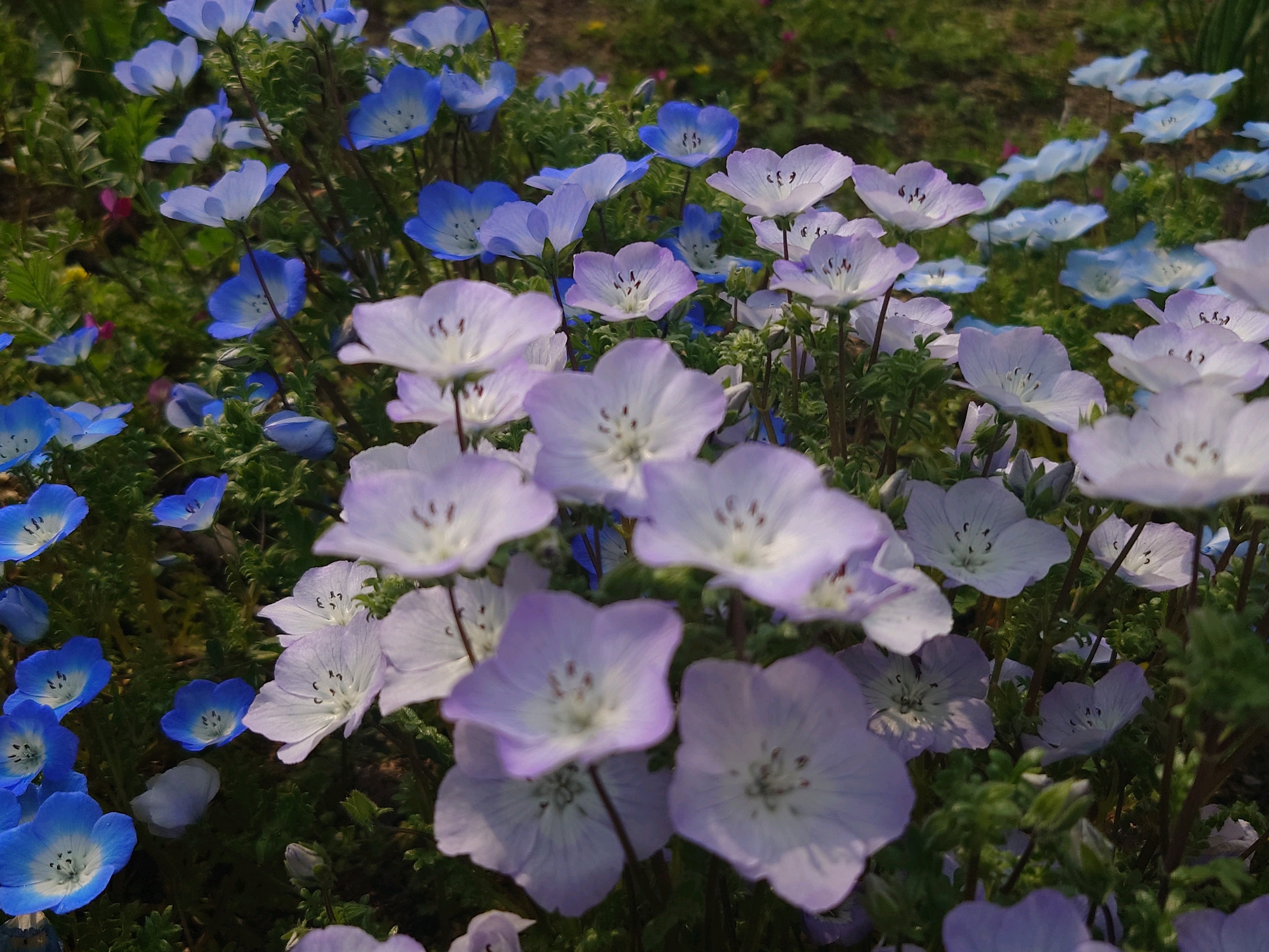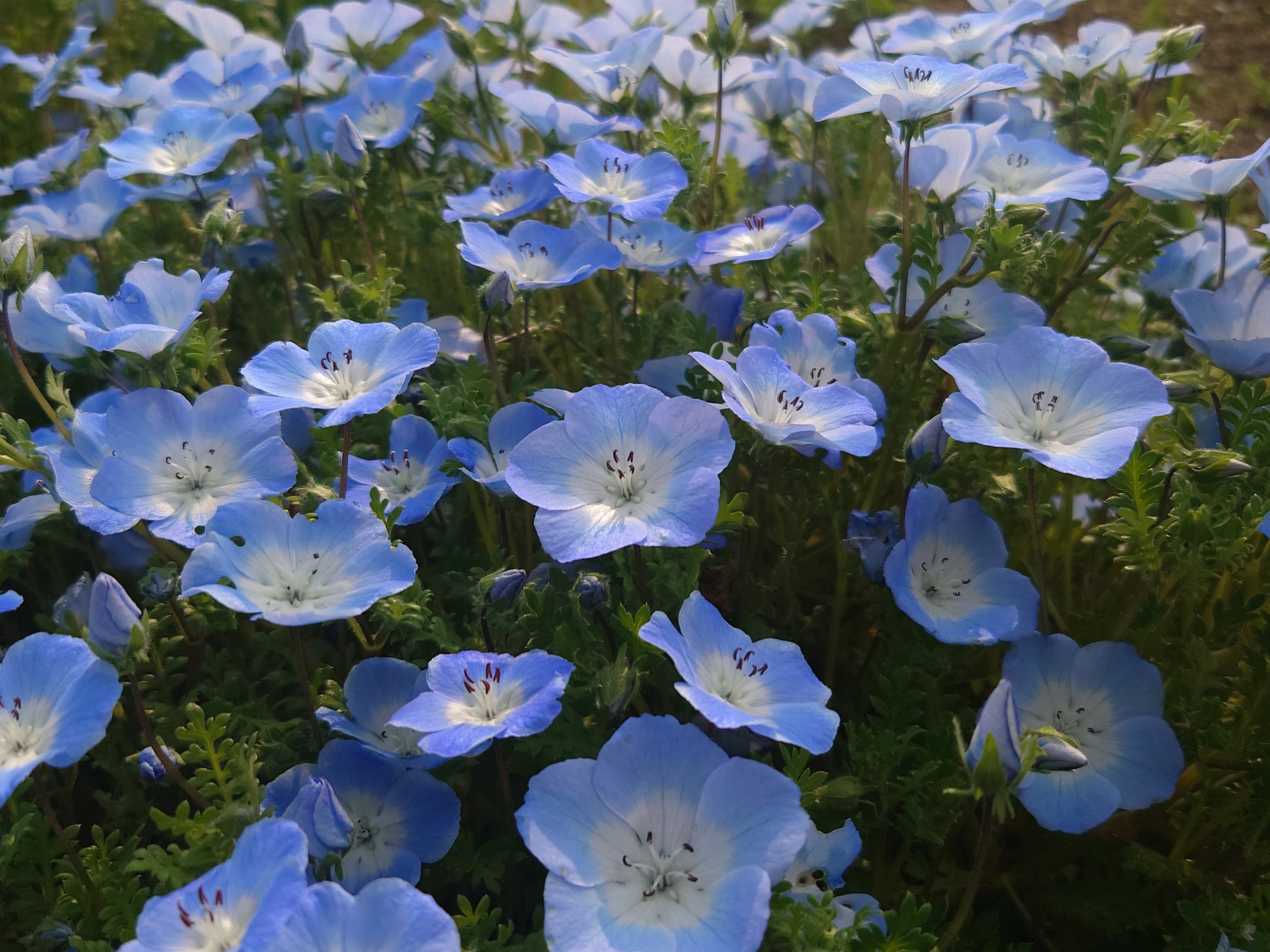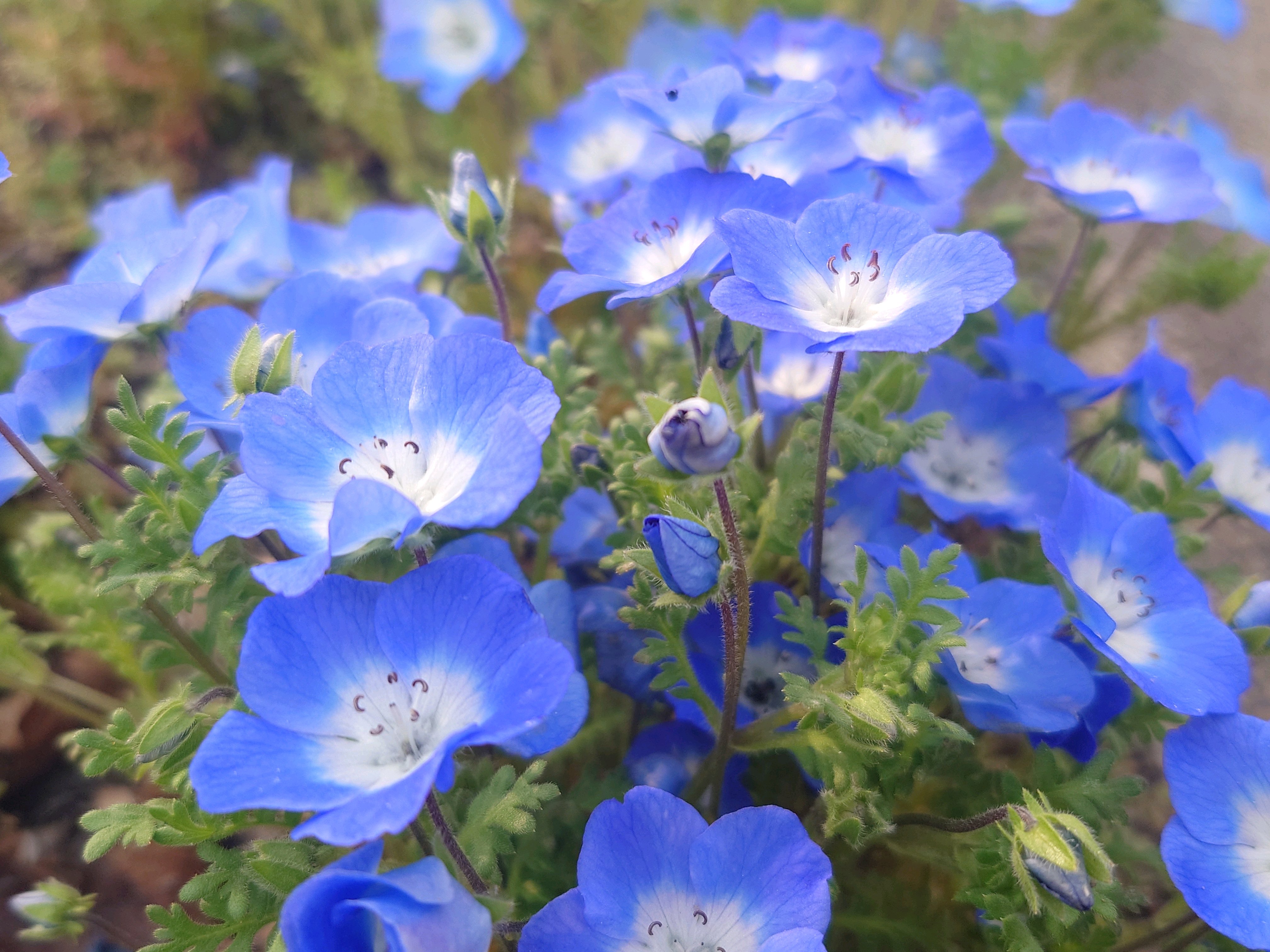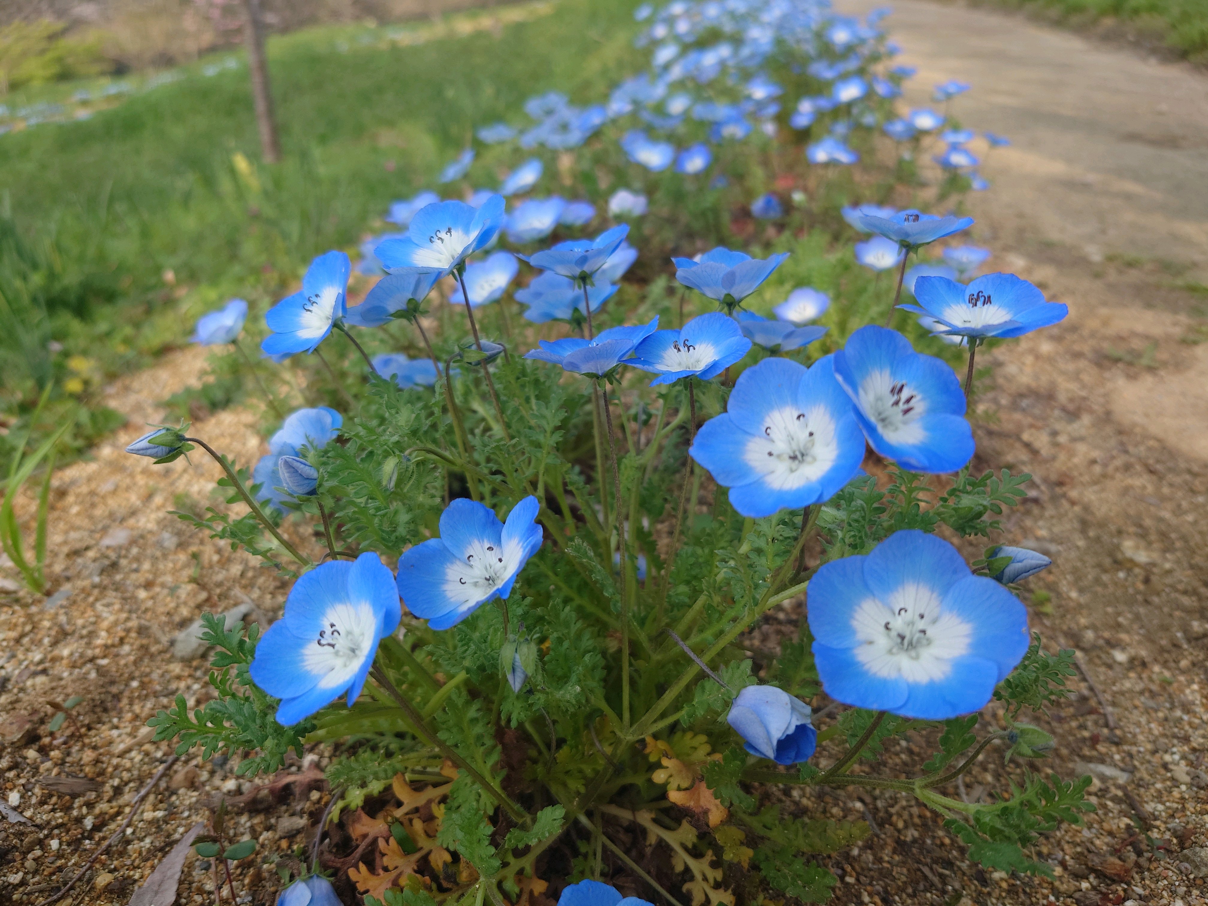 ネモフィラ畑の方はまだチラホラだったけど、歩道の端に植えられるネモフィラが満開で可愛かった🩵