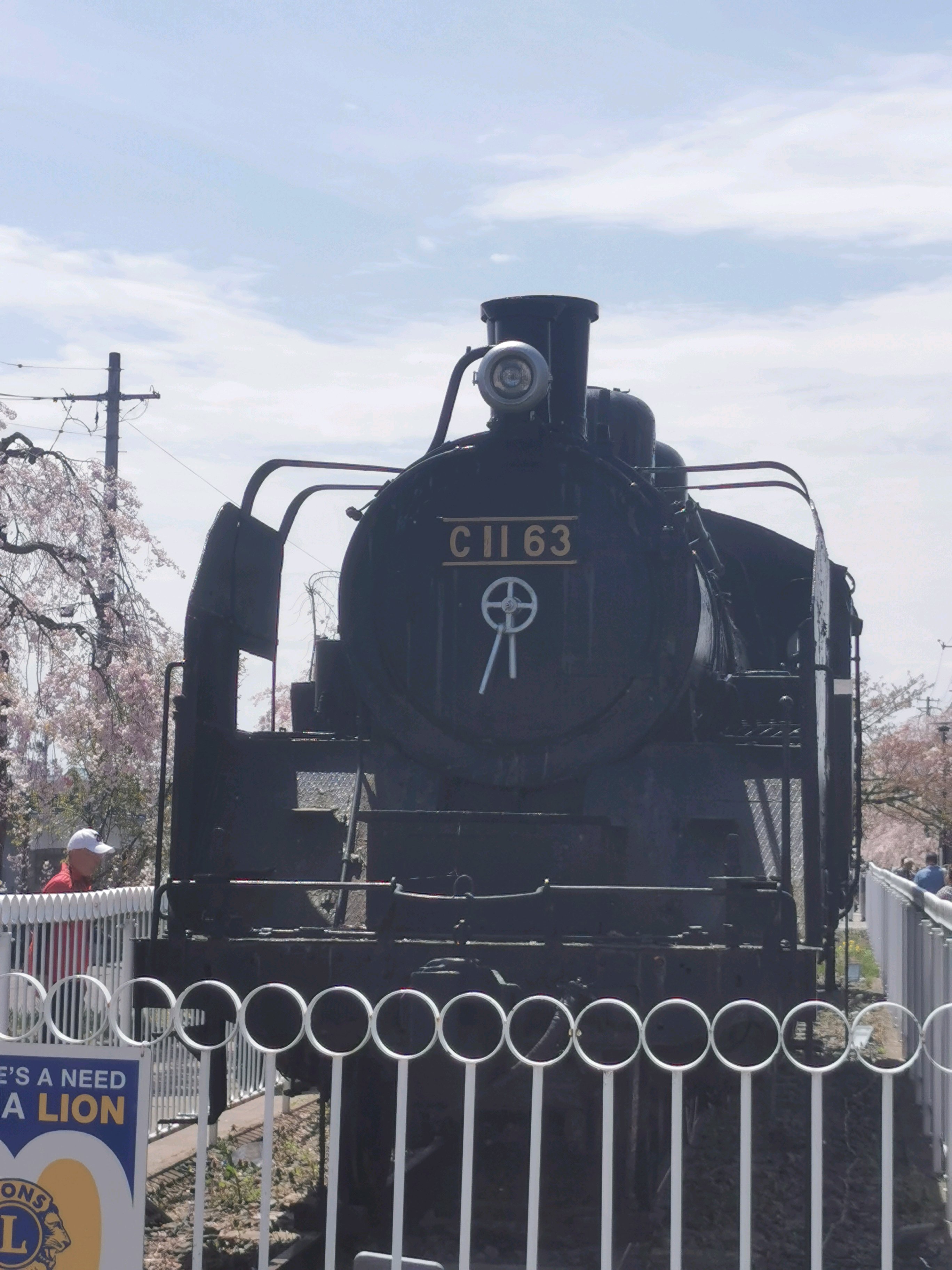 約3kmの並木道の中程にSLが構えていました。ここで記念写真を撮る人が多いです。私もハイ、チーズ!